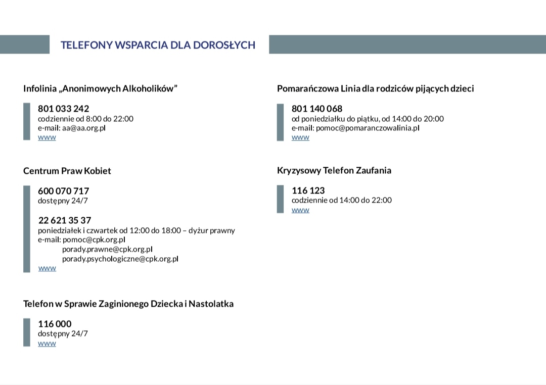 | Procedury odbioru dziecka ze szkoły. |