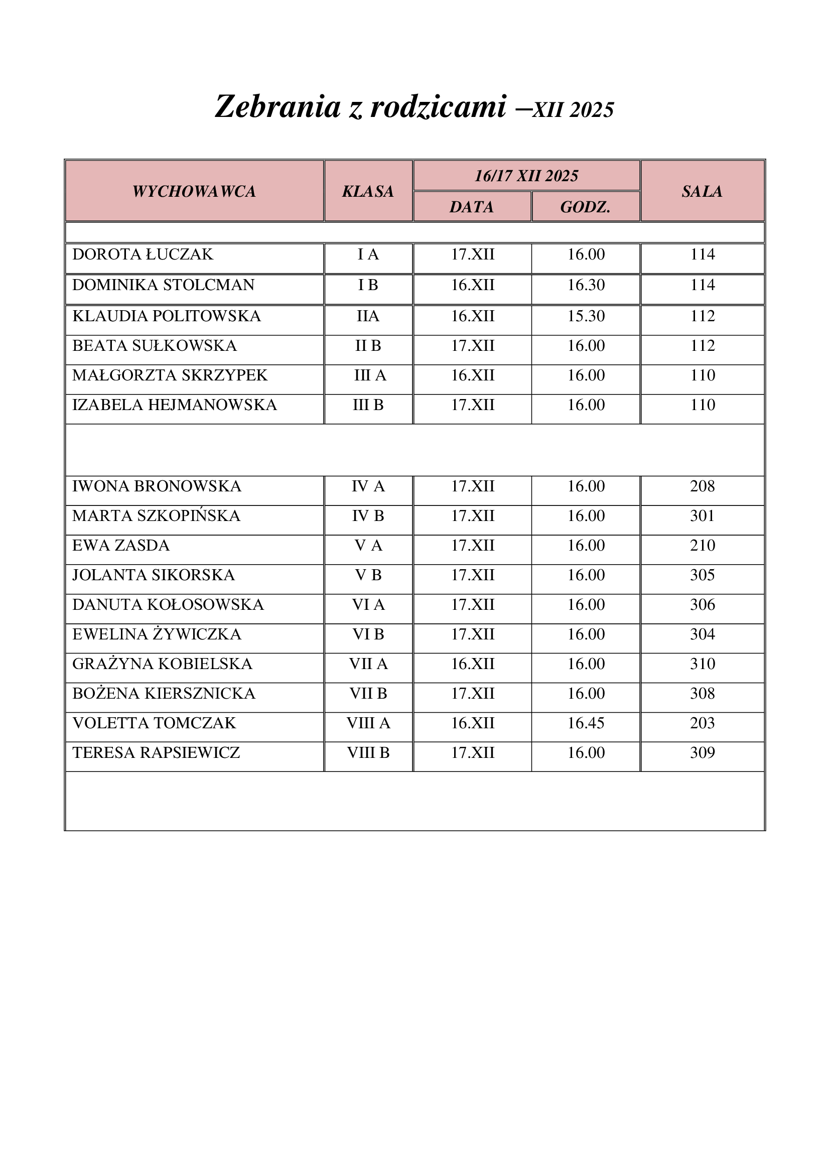 | Zebrania listopad 2025 |