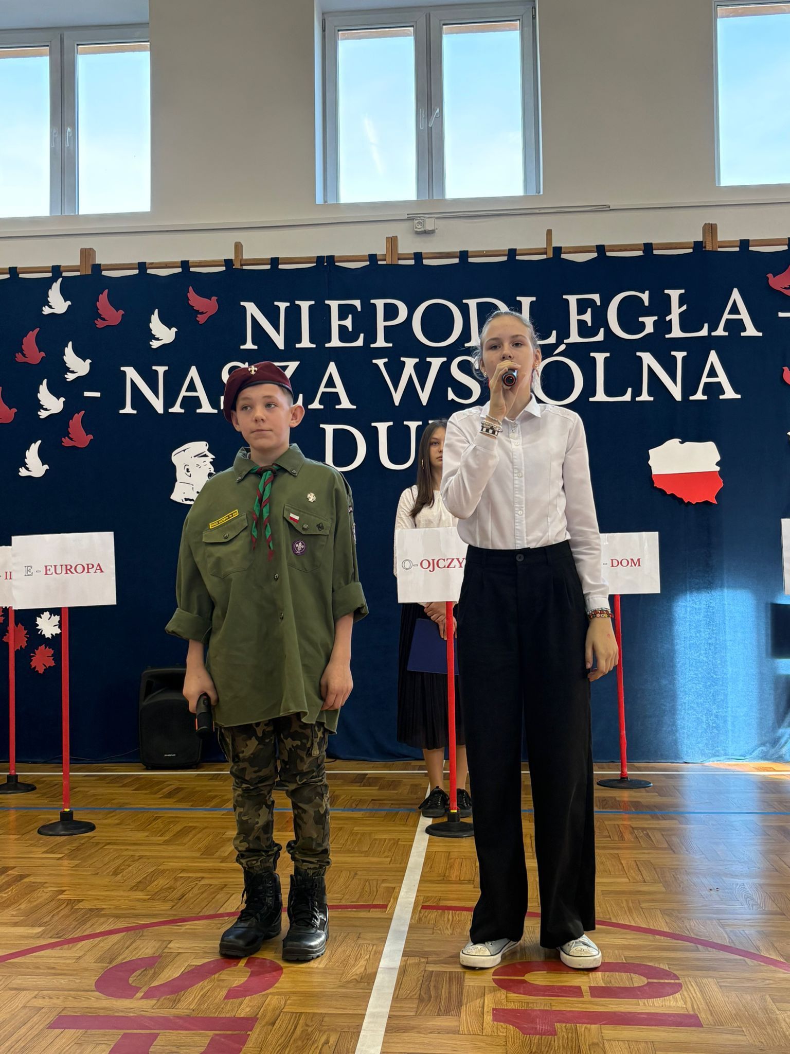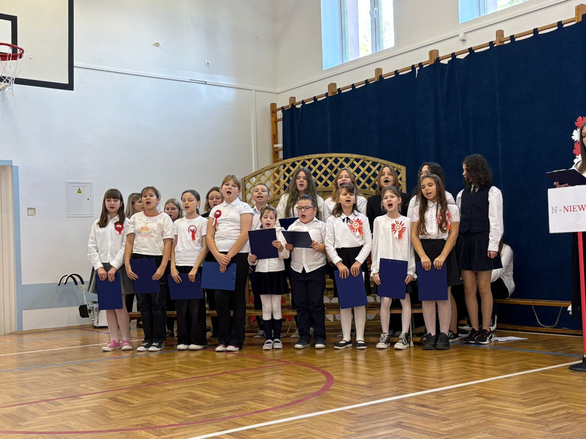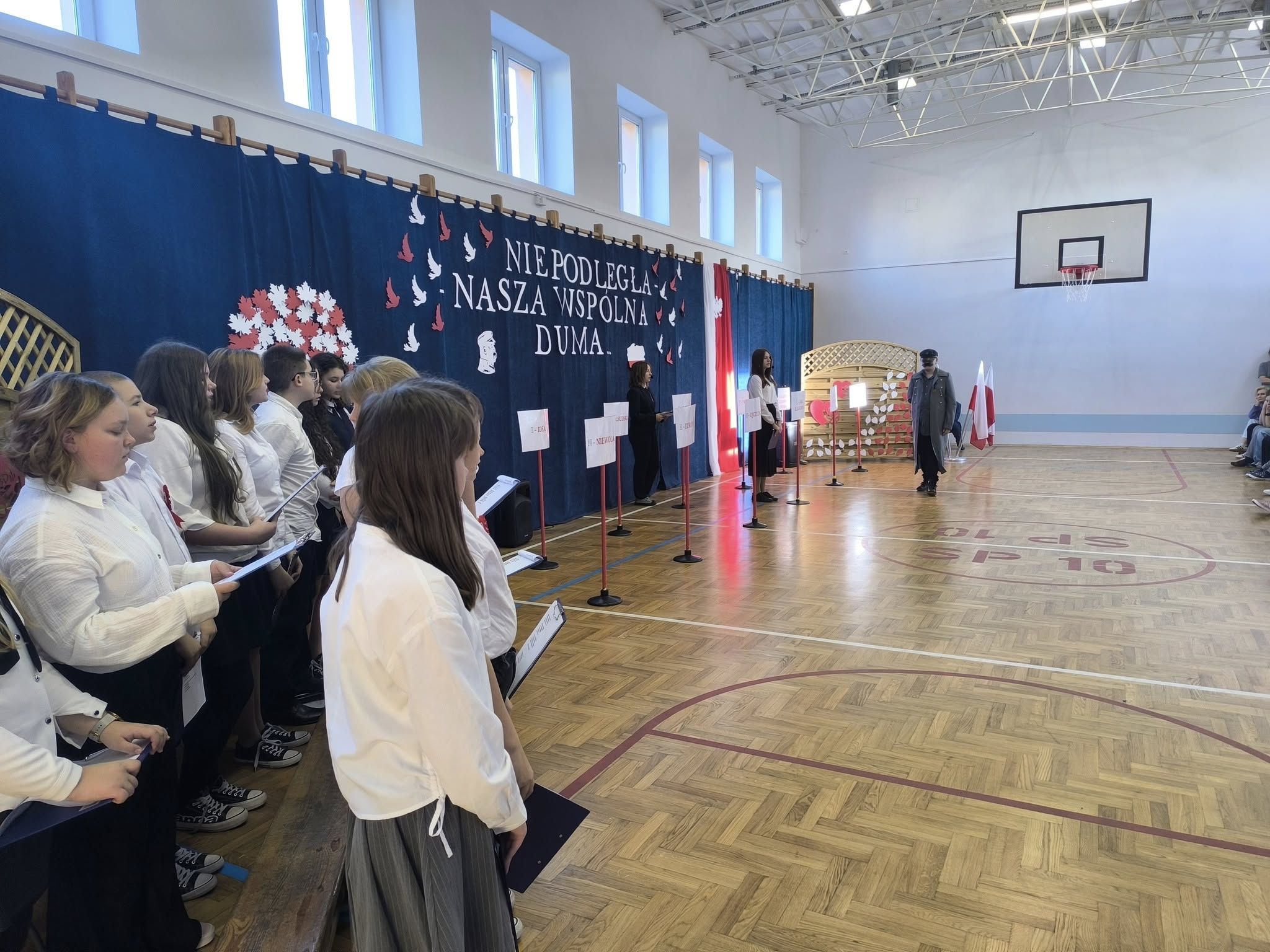 Całość występu dopełniły patriotyczne pieśni w wykonaniu chóru szkolnego. Nastrojowa muzyka i piękne wykonanie wprowadziły wszystkich w podniosły, refleksyjny nastrój.