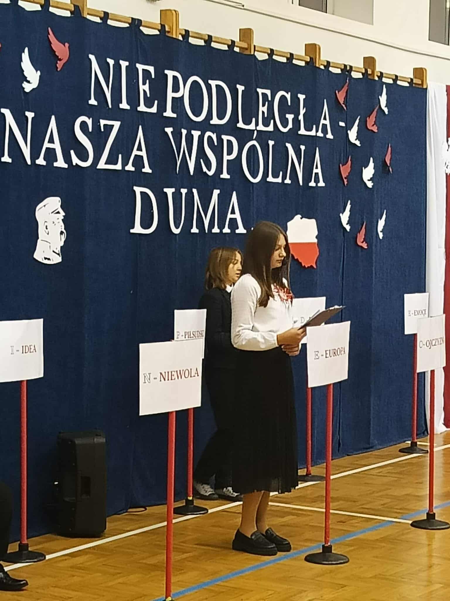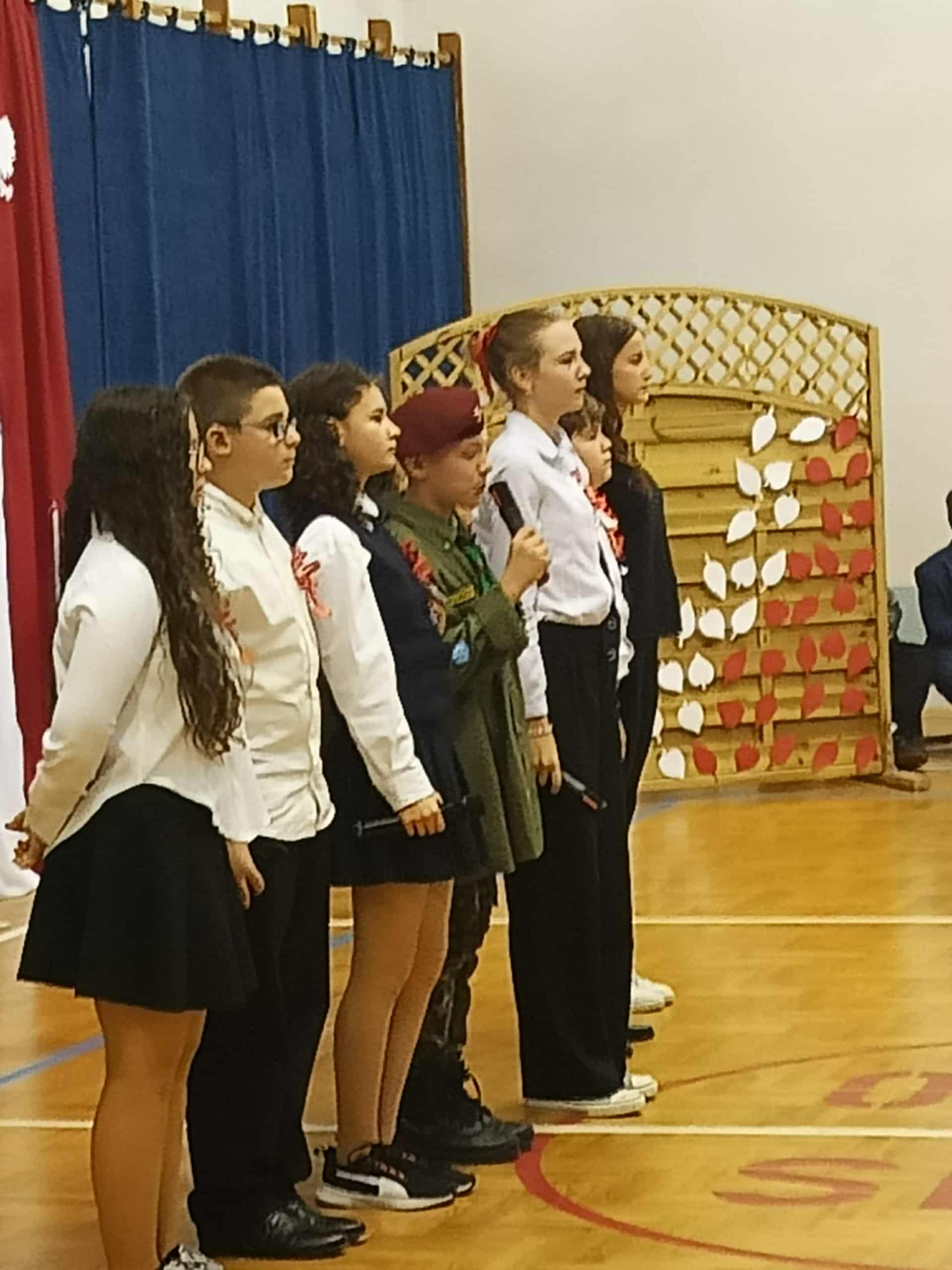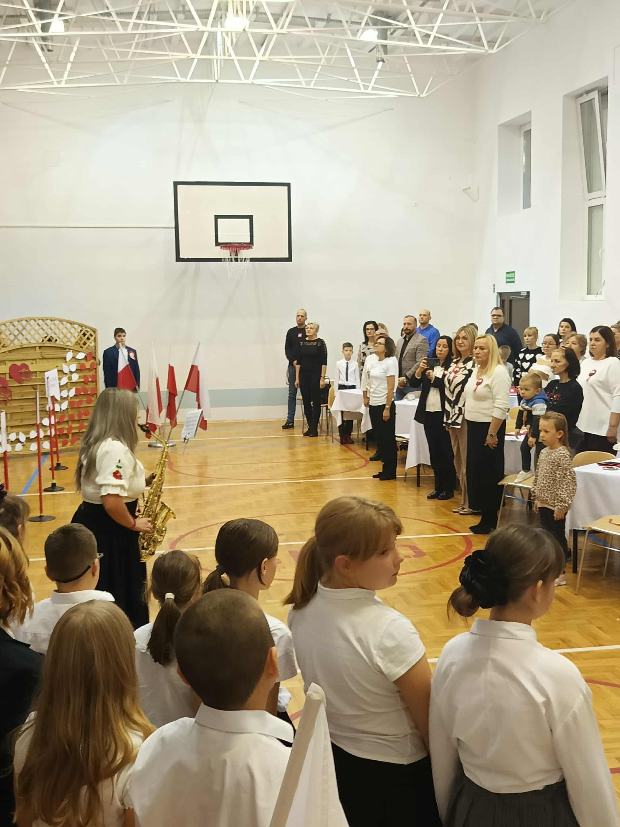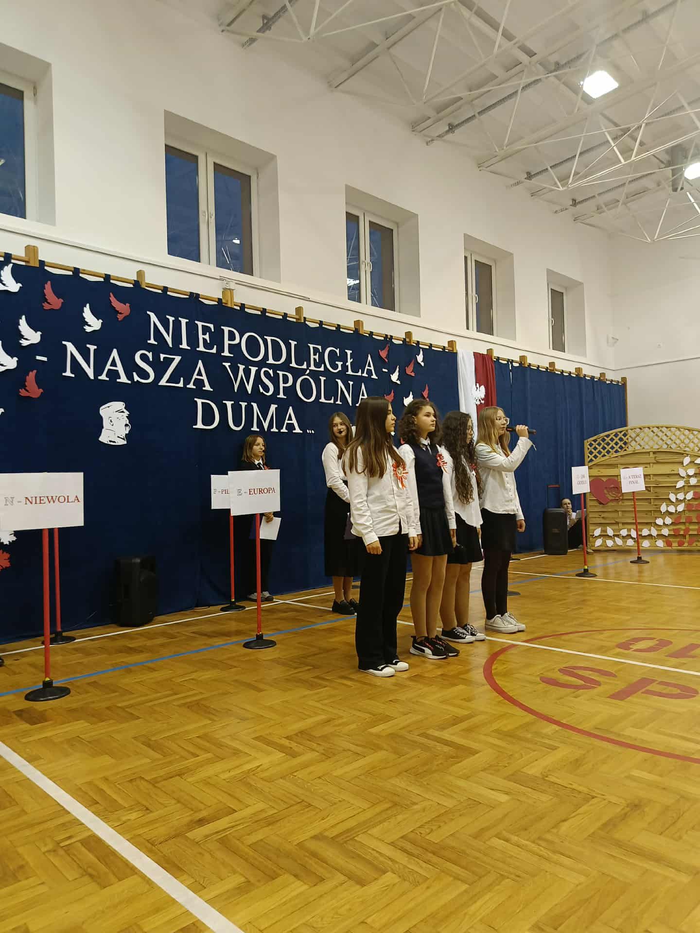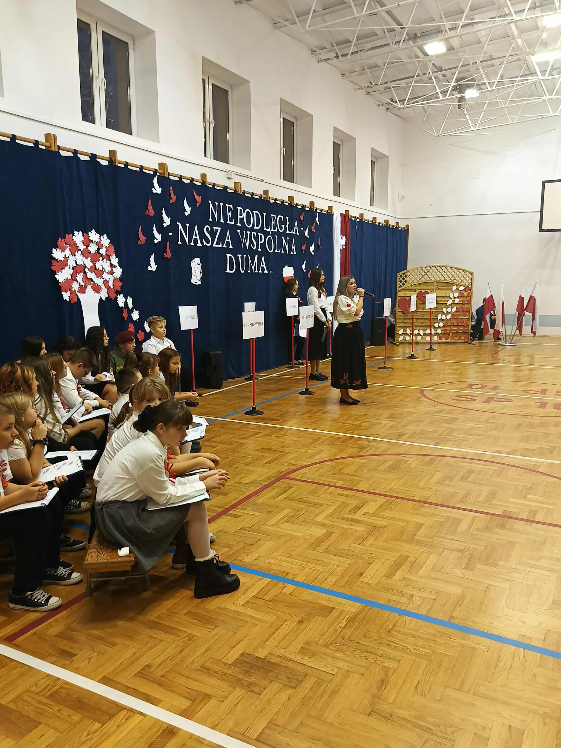 Wieczornica rozpoczęła się wprowadzeniem pocztu sztandarowego i wspólne odśpiewanie hymnu narodowego. Następnie szkolne koło teatralne zaprezentowało montaż słowno-muzyczny ukazujący drogę Polski do odzyskania niepodległości, łącząc wiersze, krótkie scenki i patriotyczne nawiązania. Chór szkolny wykonał pieśni patriotyczne, które wzbudziły refleksję nad wartością wolności i wspólnoty.