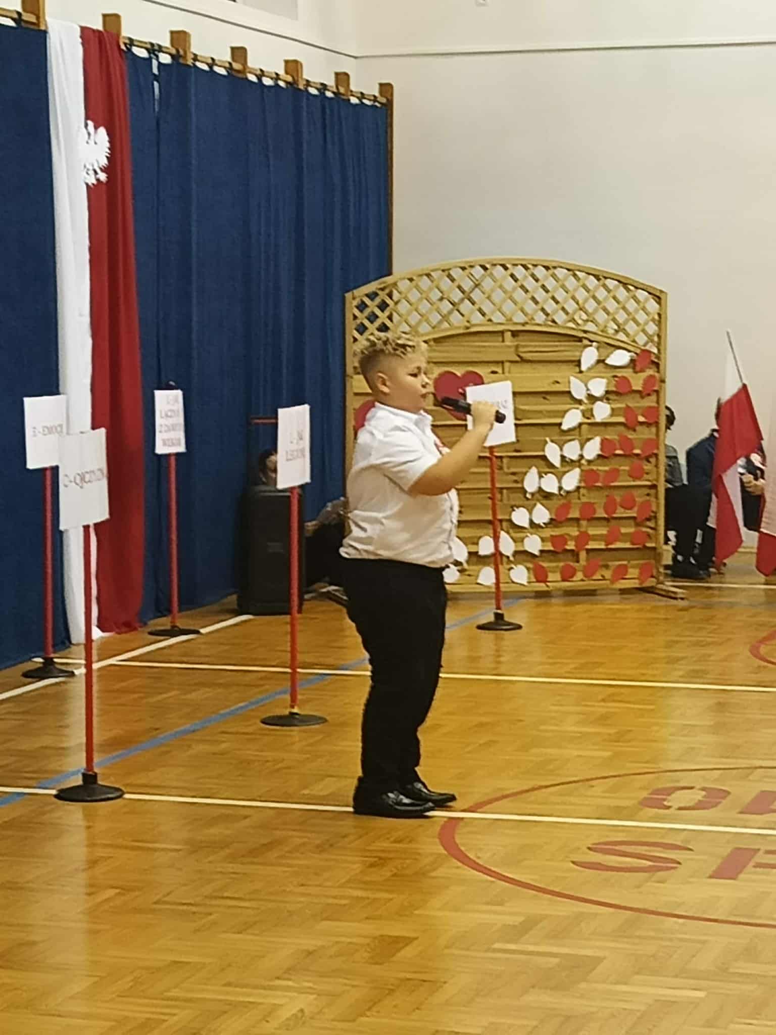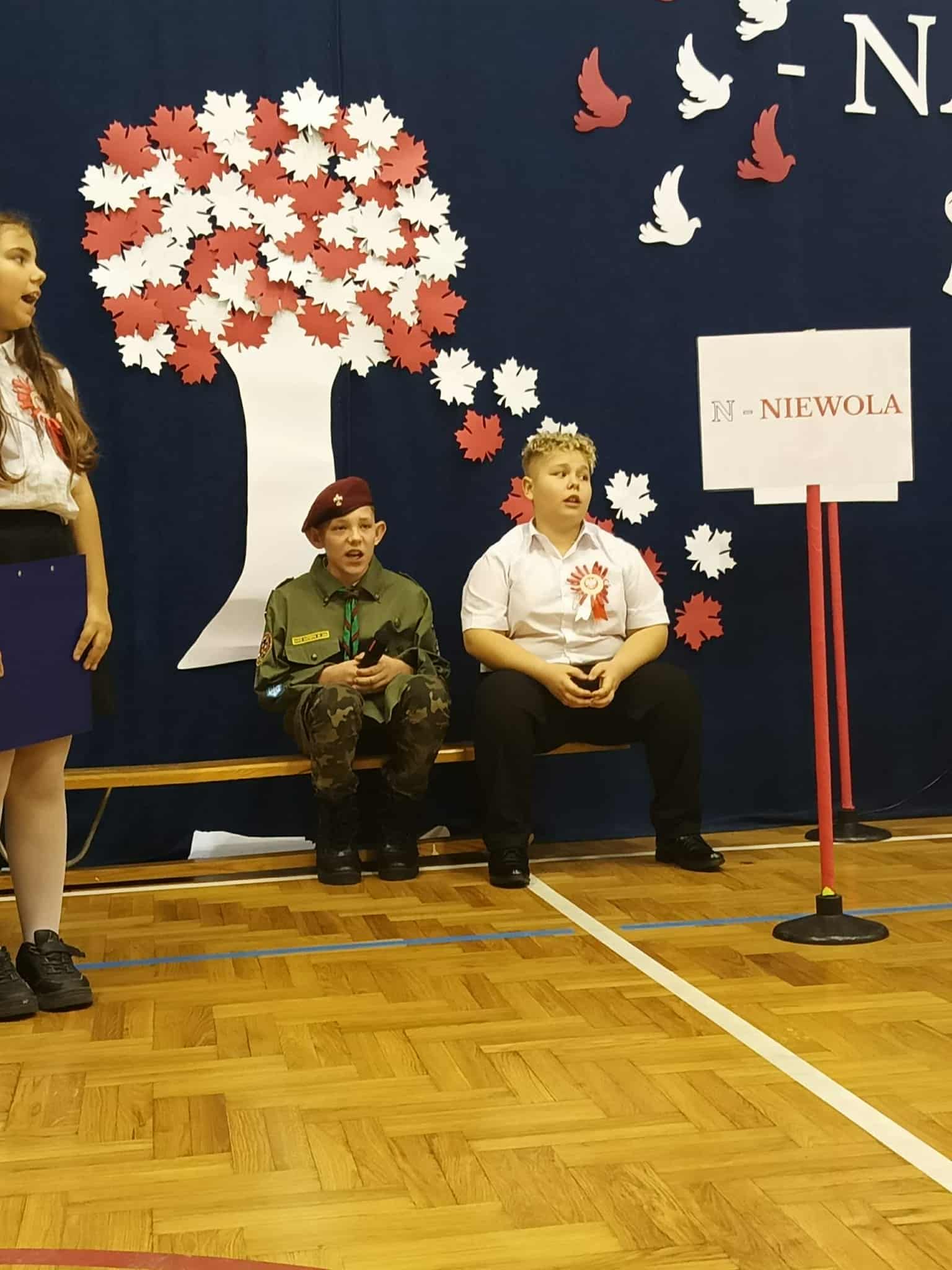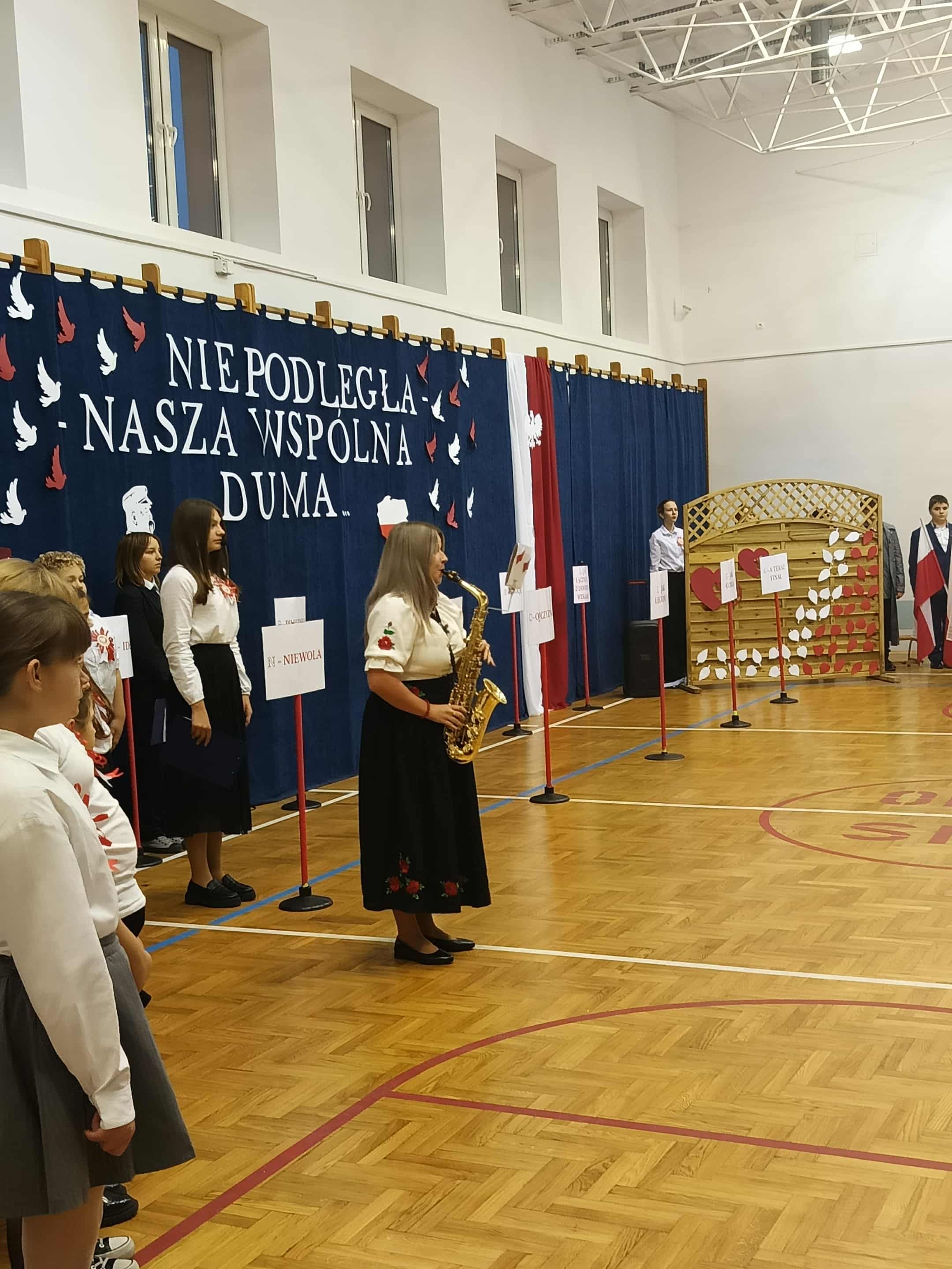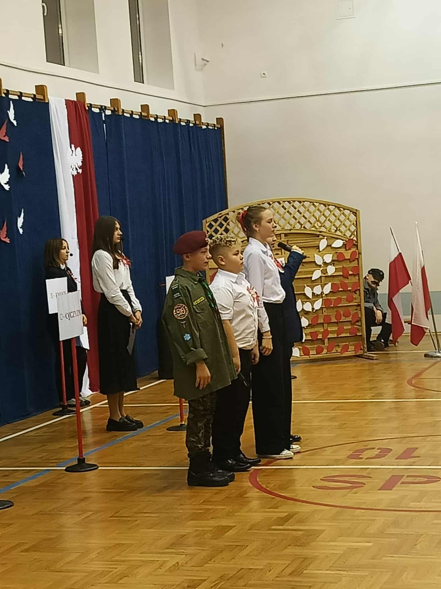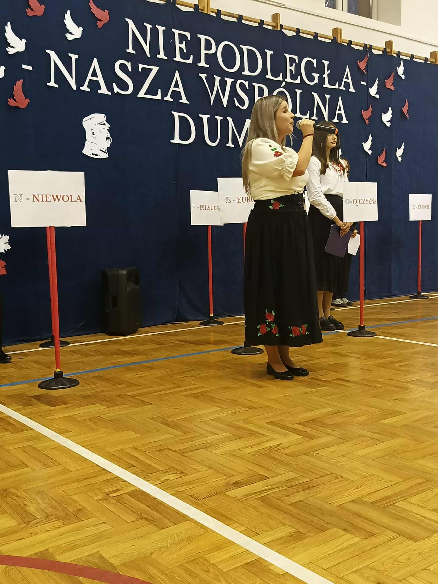 Wieczornica rozpoczęła się wprowadzeniem pocztu sztandarowego i wspólne odśpiewanie hymnu narodowego. Następnie szkolne koło teatralne zaprezentowało montaż słowno-muzyczny ukazujący drogę Polski do odzyskania niepodległości, łącząc wiersze, krótkie scenki i patriotyczne nawiązania. Chór szkolny wykonał pieśni patriotyczne, które wzbudziły refleksję nad wartością wolności i wspólnoty.
