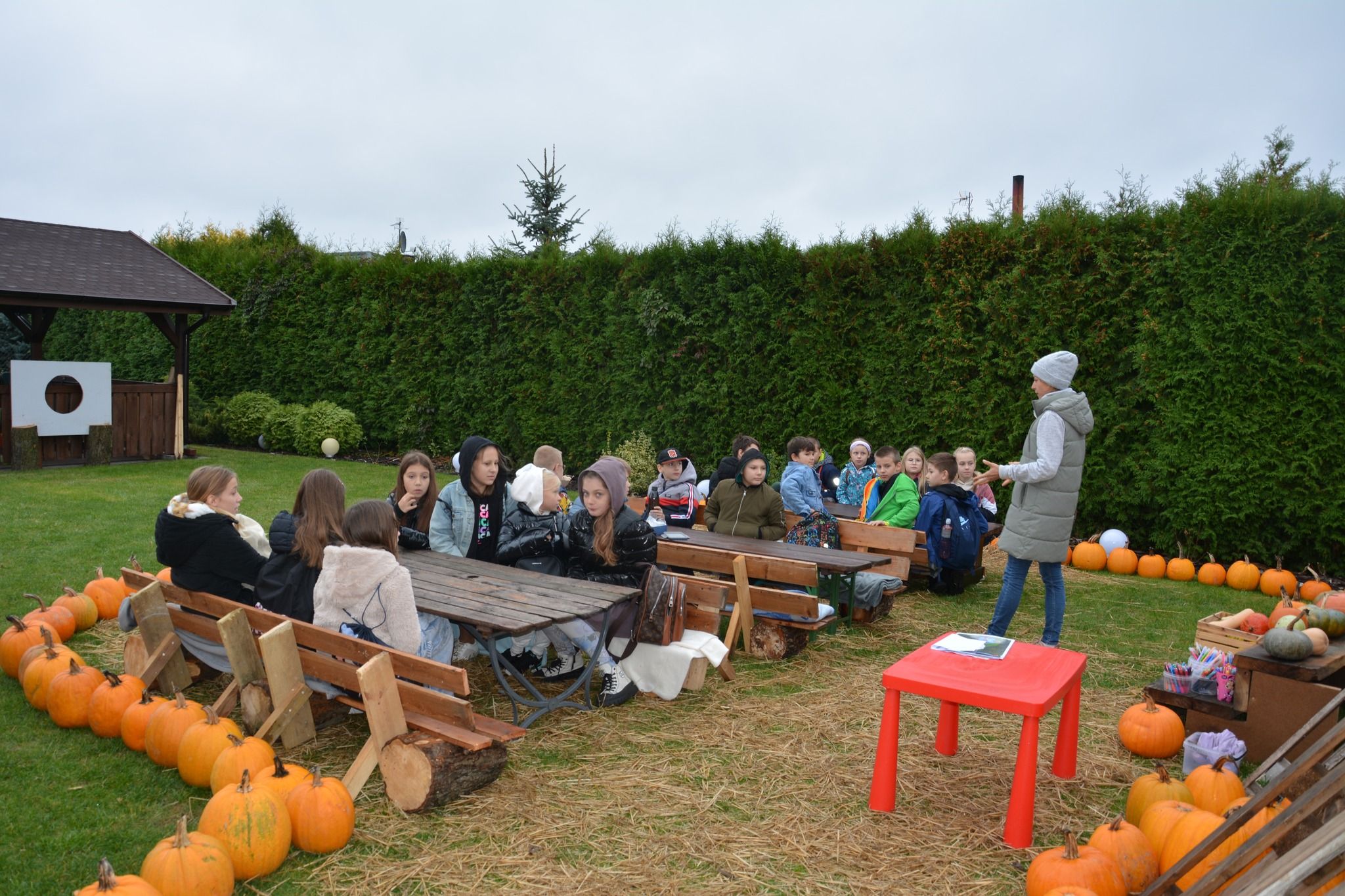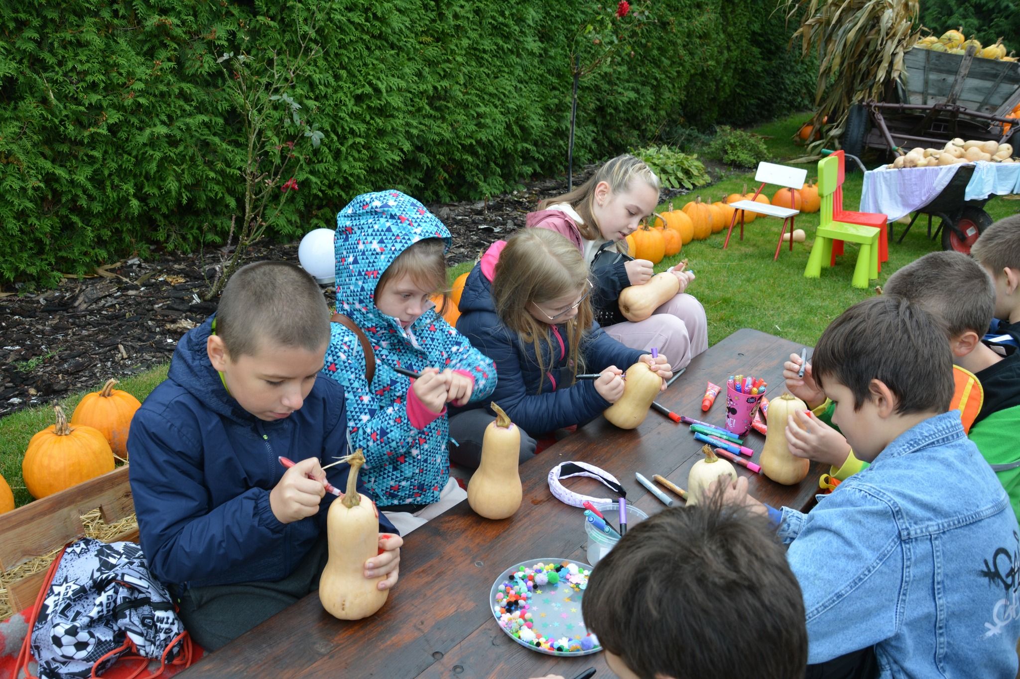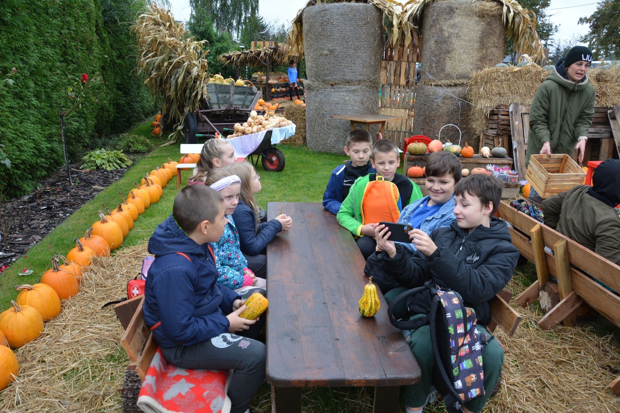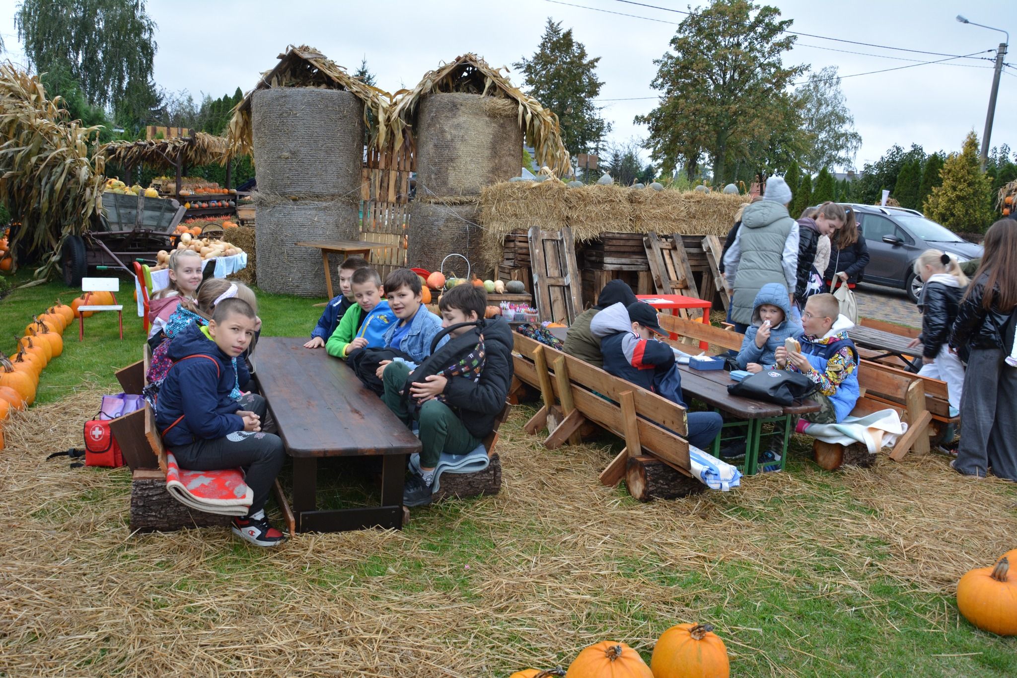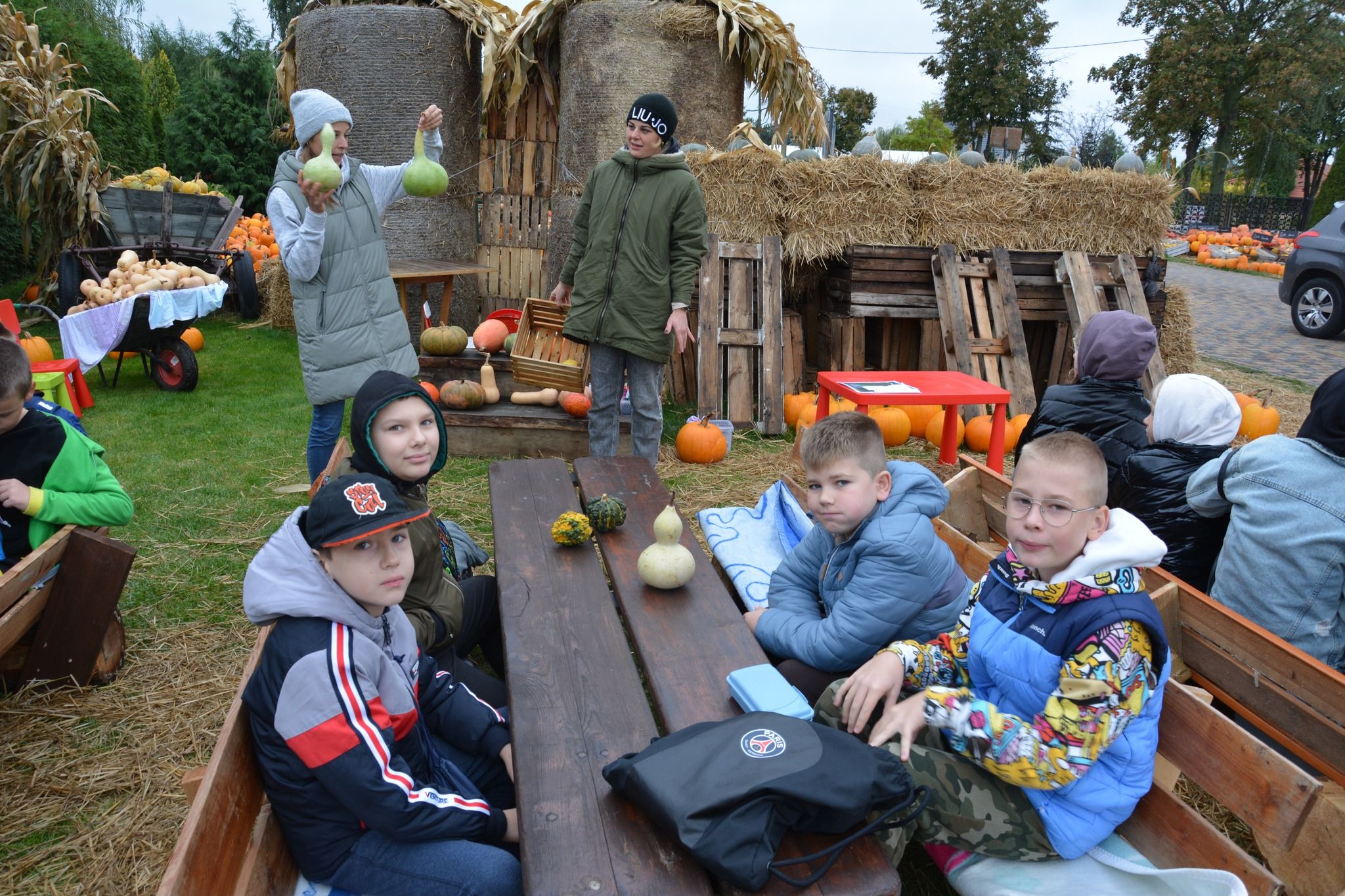 4 października 2024 r. kl. 4 b wraz z opiekunami wybrała się na wycieczkę do Kulina. Uczniowie uczestniczyli w warsztatach na temat dyni: poznali odmiany dyń, ich przeznaczenie i różne „dyniowe” rekordy w Polsce i na świecie. Mogli wykazać się kreatywnością ozdabiając otrzymane dynie. Rywalizowali ze sobą podczas sztafet z dyniami. Na koniec zostali poczęstowani ciastem dyniowym, marynowaną dynią oraz pestkami z dyni, która stała się lampionem na Halloween. Chociaż nosy były sine od zimna, to wszyscy byli szczęśliwi. Z pamiątkowymi „zdobyczami” i pakietem zdjęć wrócili do szkoły.