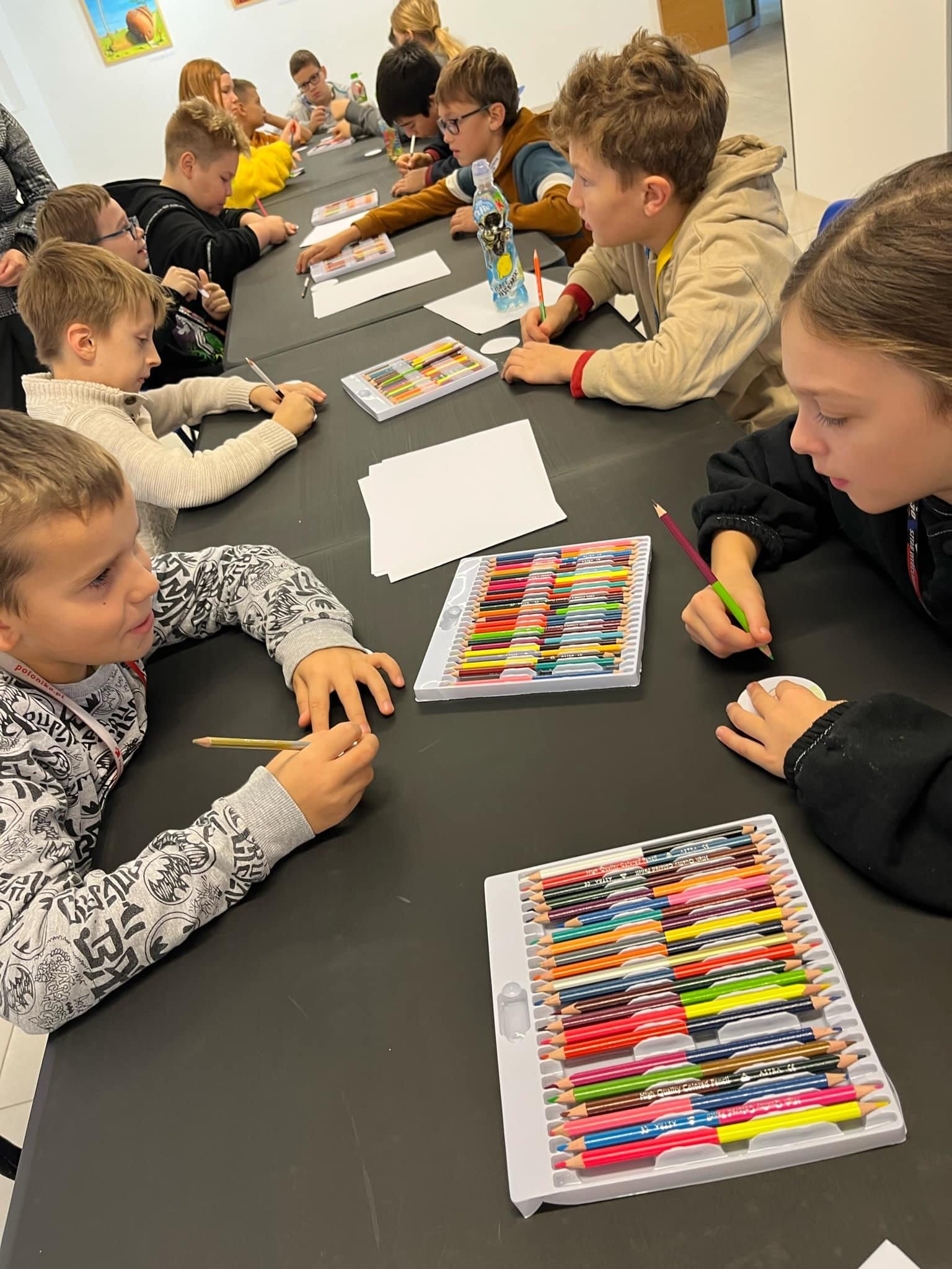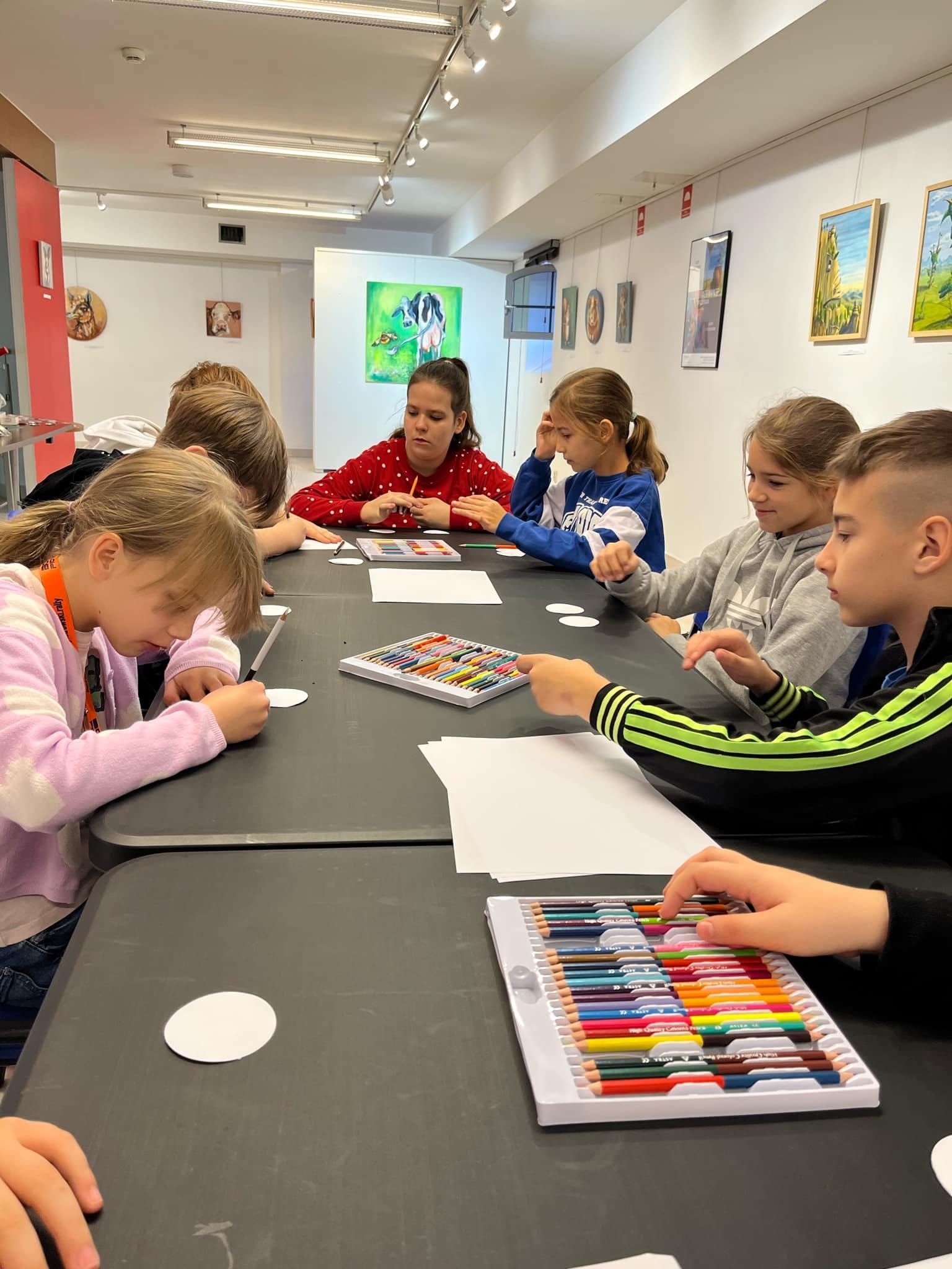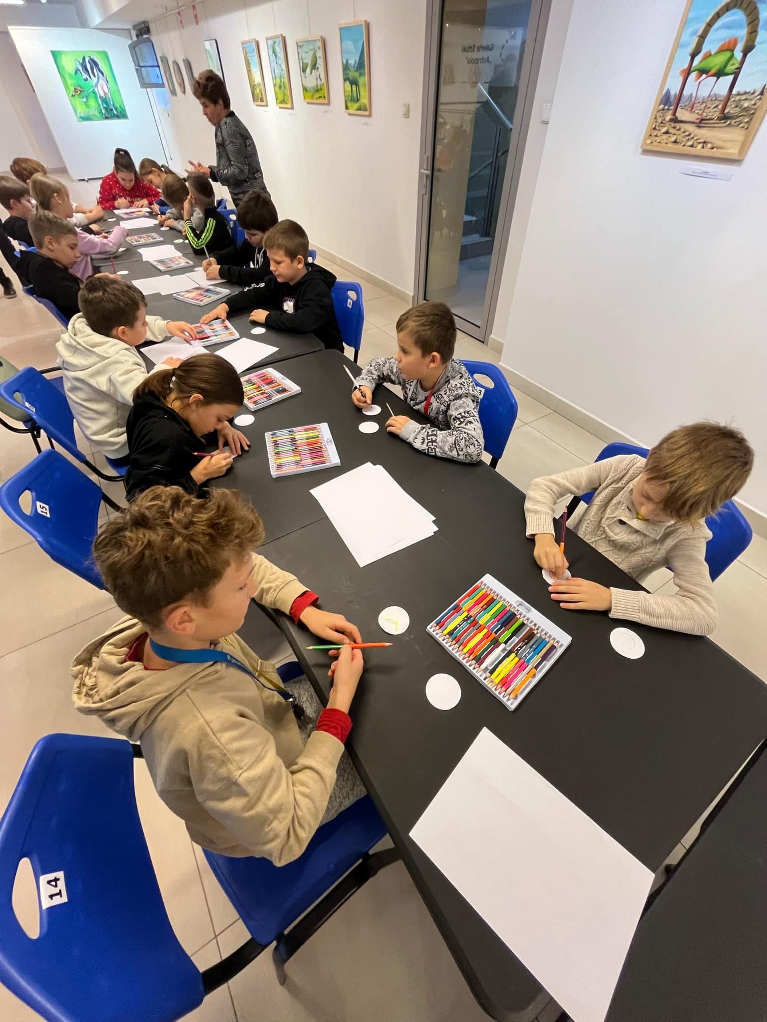 4 listopada klasa 4a wraz w wychowawczynią panią Ewą Zasadą i panią Aleksandrą Kalinowską odwiedziła Centrum Kultury „Browar B”, aby obejrzeć wystawę malarstwa Iwony Kruszczyńskiej oraz Jerzego Jabczyńskiego pt. „Zooobrazowanie”, która przedstawia zwierzęta realne i fantastyczne. Następnie uczniowie wzięli udział w warsztatach „Zooprzypinki”, nawiązujących do wystawy. Uczestnicy wykonali prace plastyczne o tematyce zwierzęcej. Powstały z nich przypinki lub magnesy. Dodatkowo każdy wykonał przypinkę z reprodukcji wybranej pracy z wystawy. ![]()