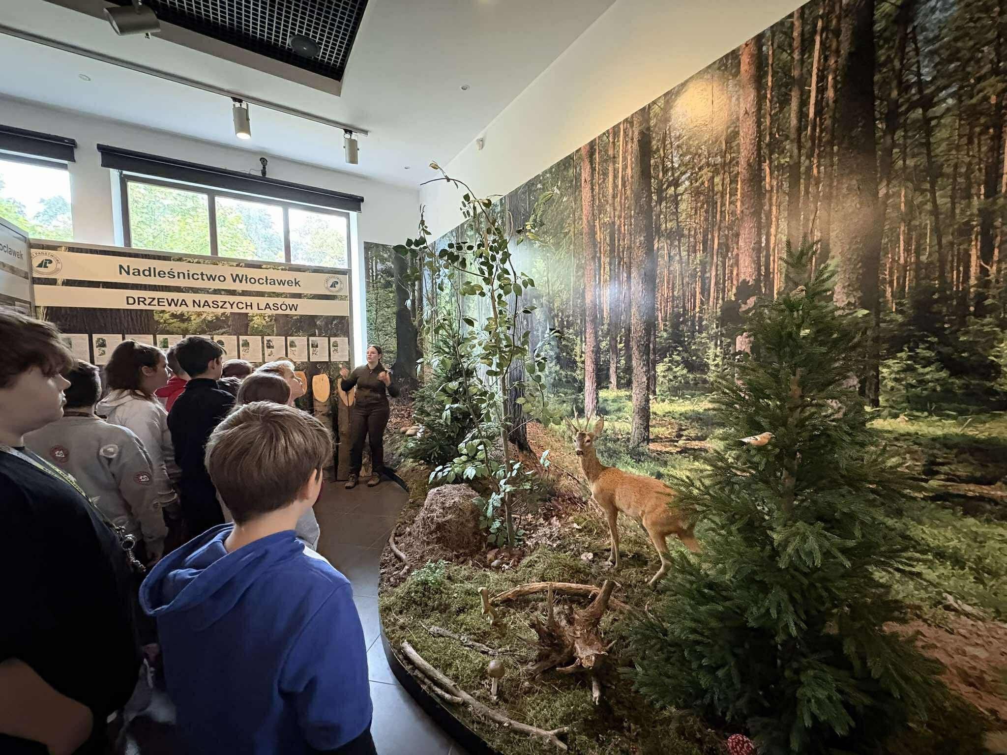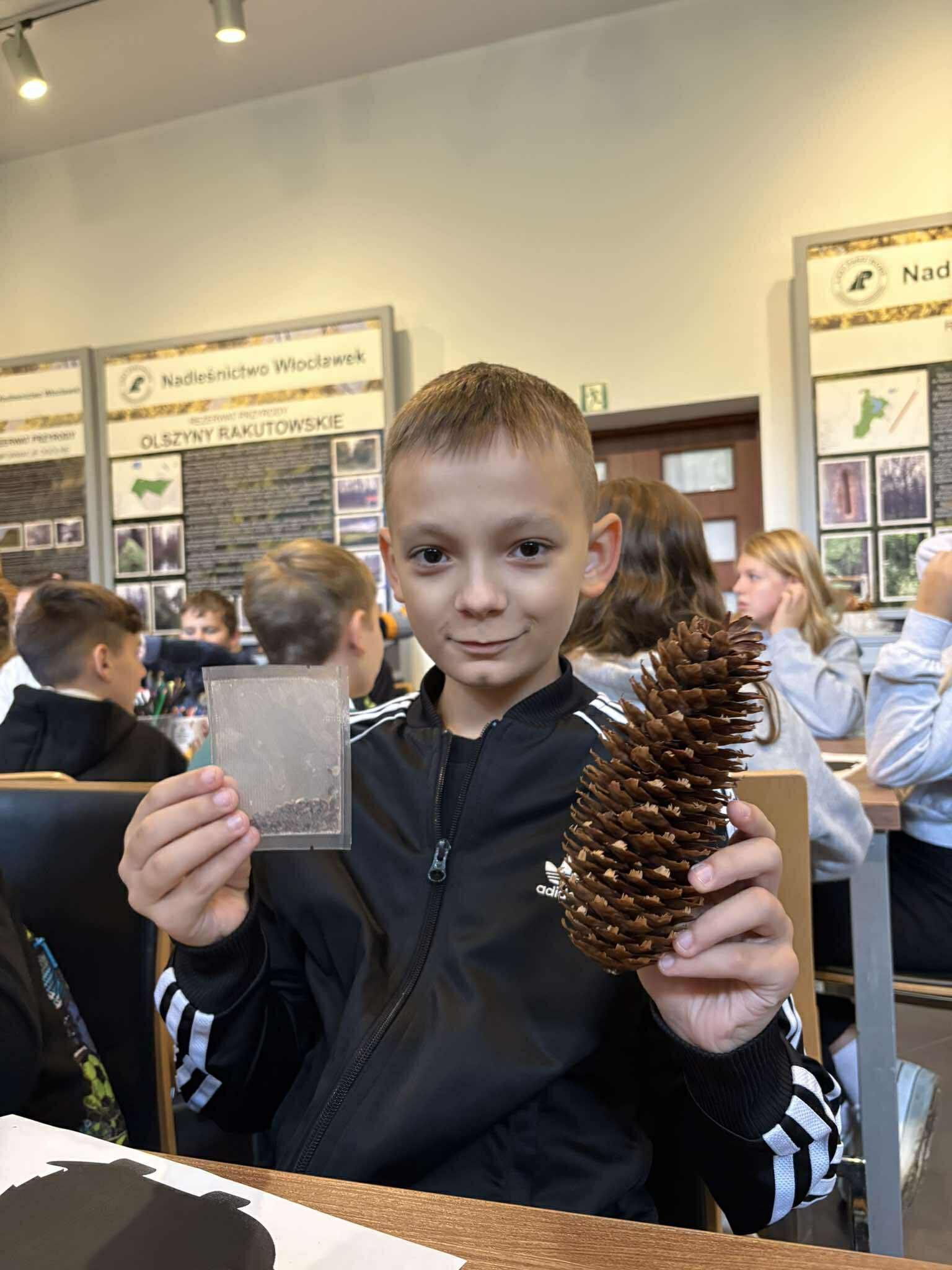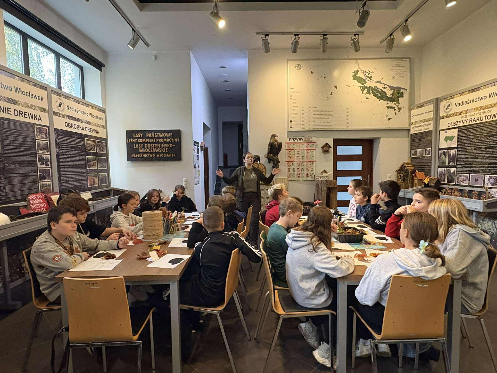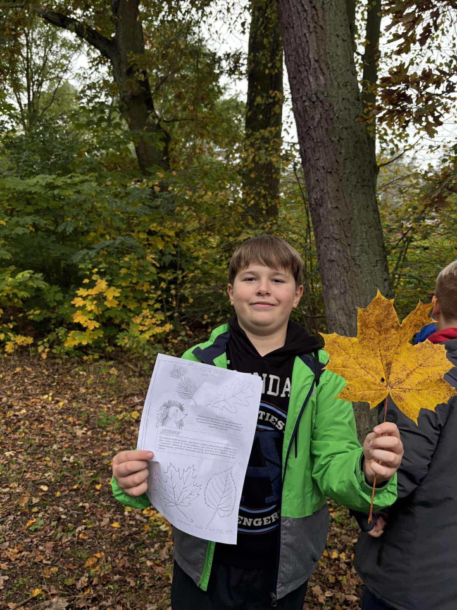 Podczas wizyty w Nadleśnictwie Włocławek poznawali tajemnice lasu – uczyli się rozpoznawać liście różnych drzew, zbierali je, a następnie wykorzystali do stworzenia pięknych prac plastycznych w kształcie jeżyka Nie zabrakło również spaceru po ścieżce edukacyjnej.
