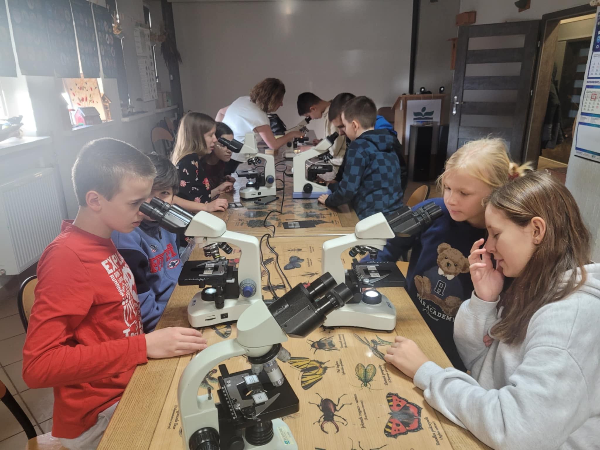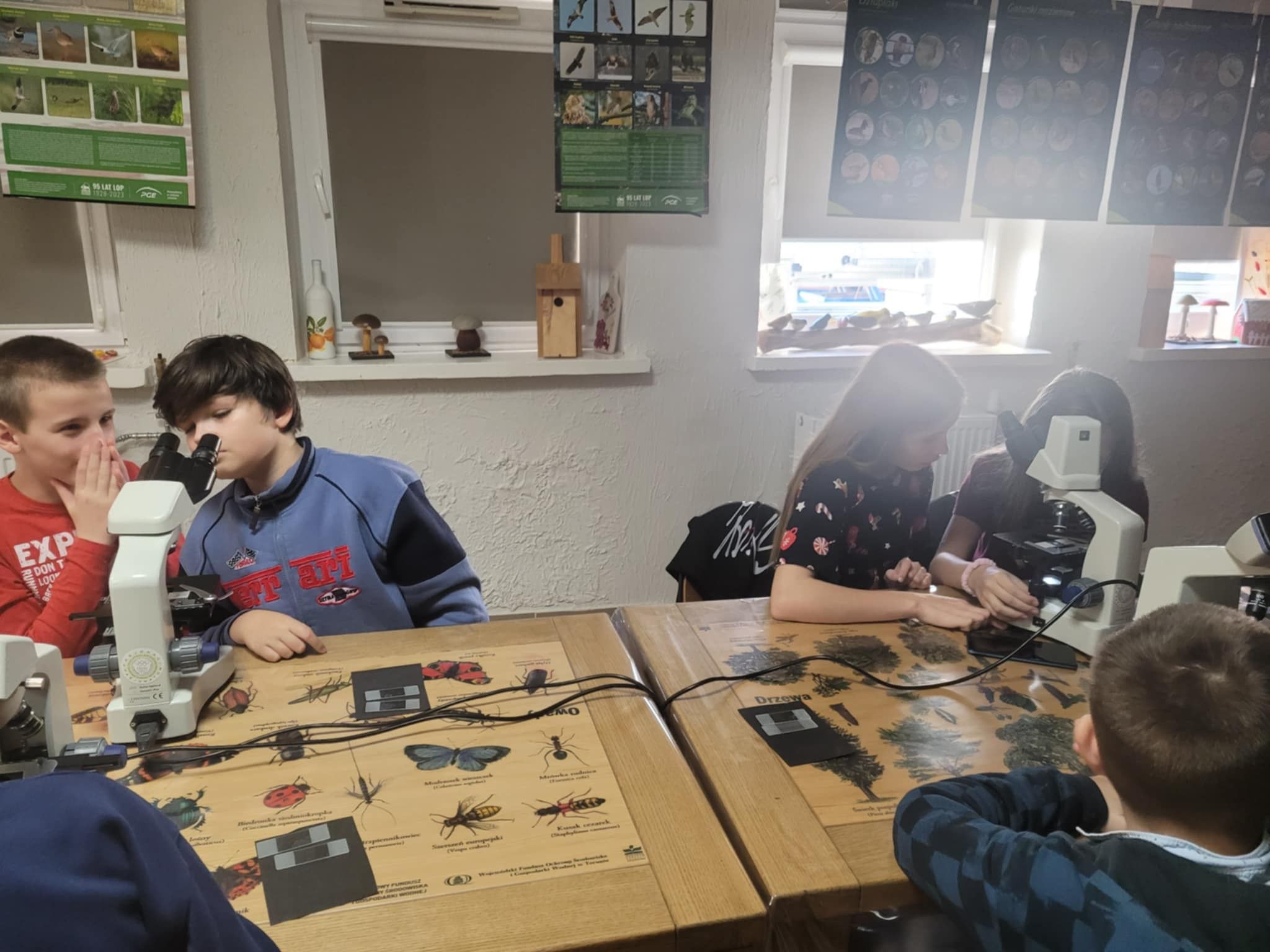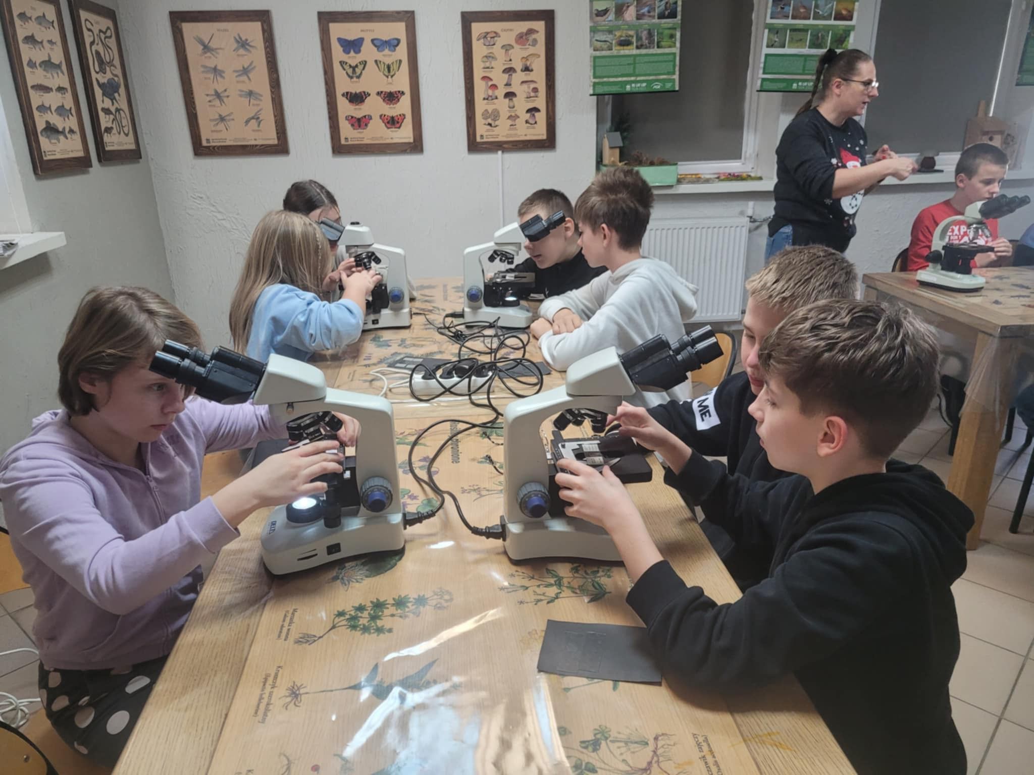 Uczniowie klasy 5b wzięli udział w inspirujących warsztatach w Centrum Edukacji Ekologicznej. Podczas zajęć mieli okazję pracować z prawdziwymi mikroskopami, poznając budowę urządzenia oraz odkrywając fascynujący świat niewidoczny gołym okiem. Warsztaty dostarczyły wielu wrażeń i z pewnością rozbudziły ciekawość młodych badaczy!