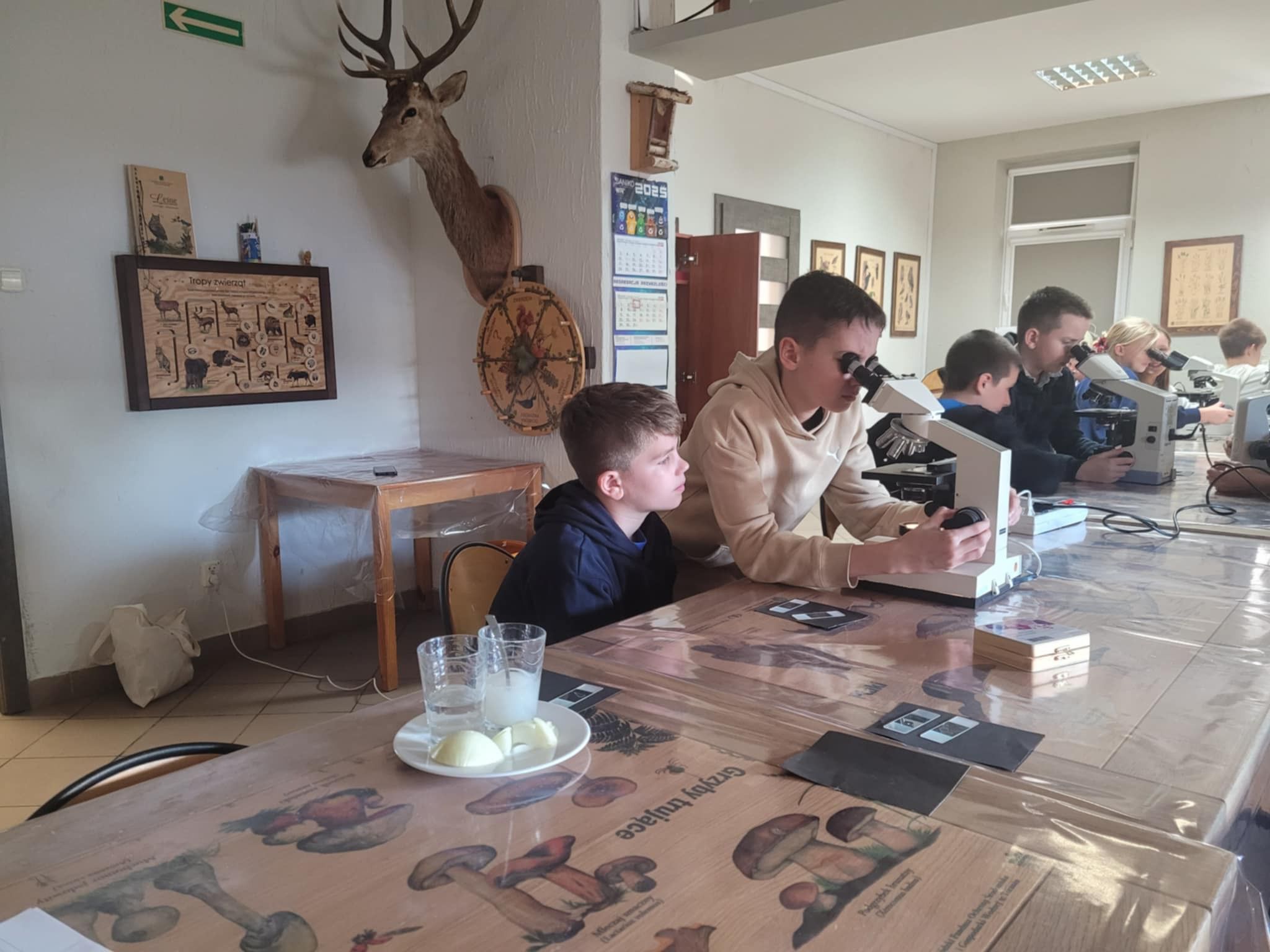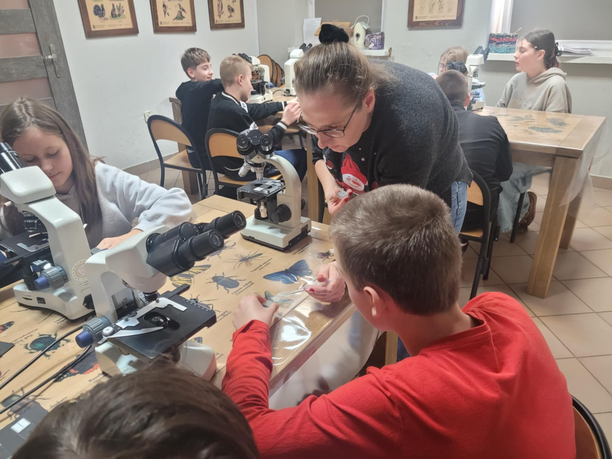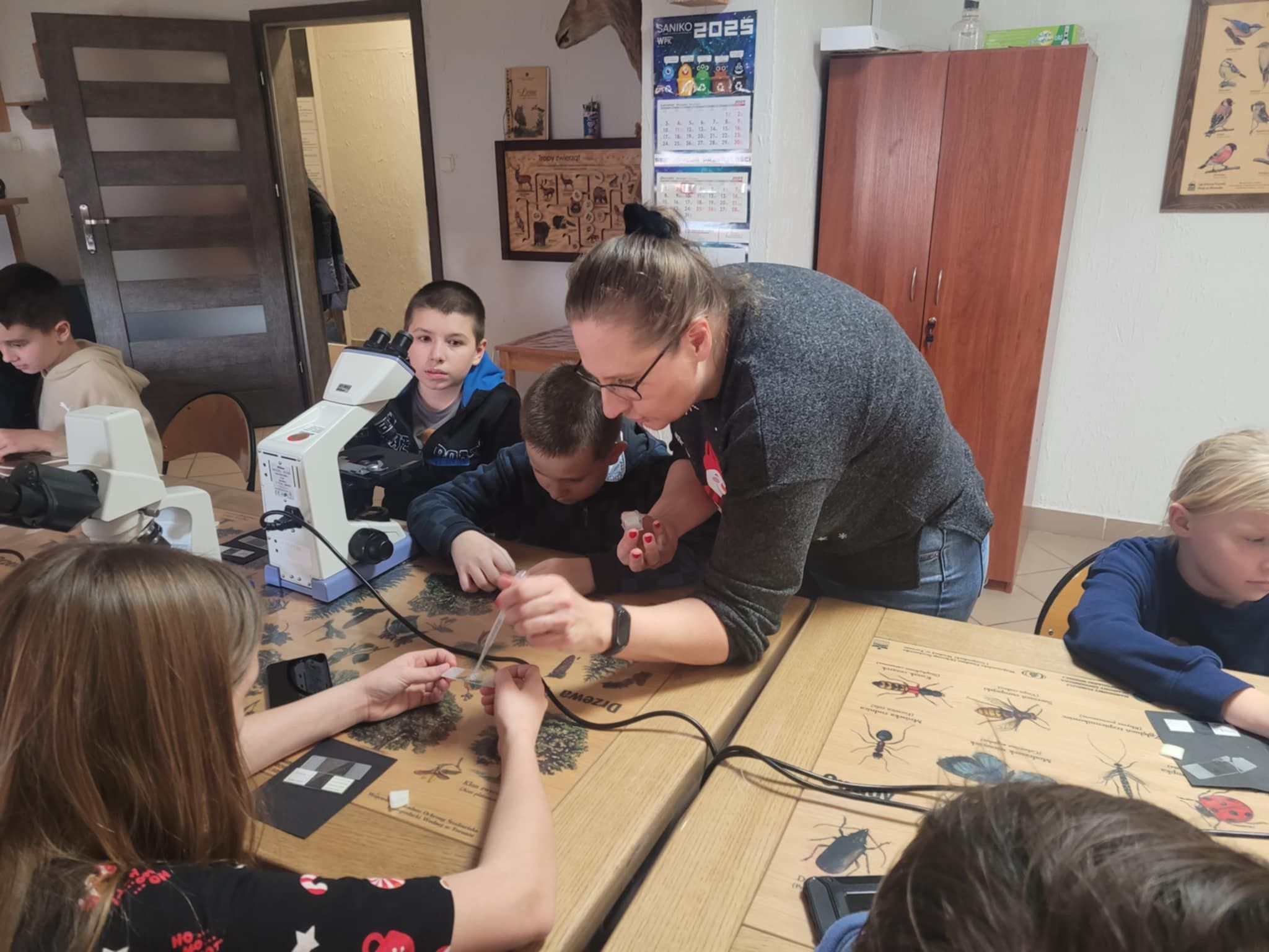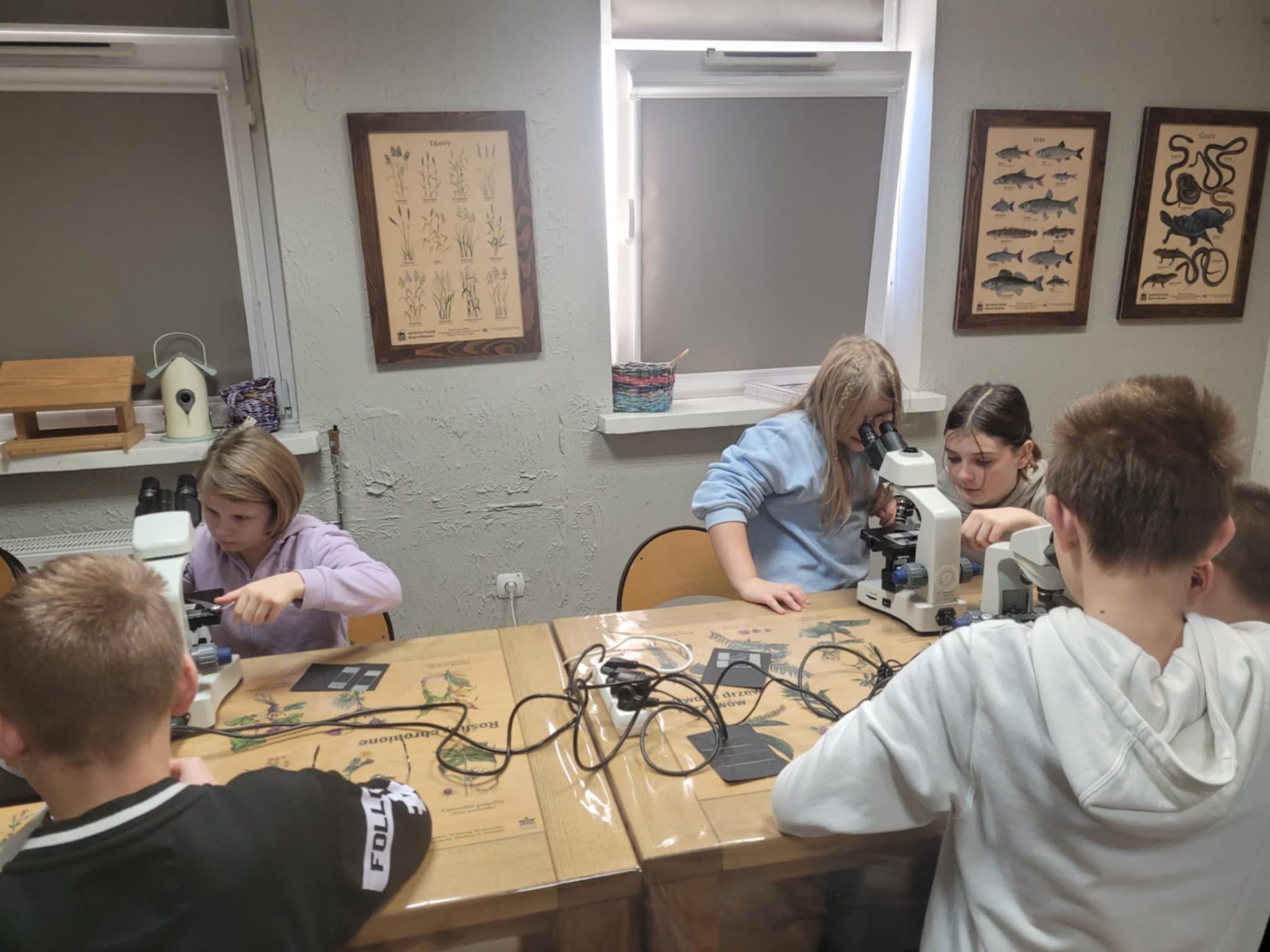 Uczniowie klasy 5b wzięli udział w inspirujących warsztatach w Centrum Edukacji Ekologicznej. Podczas zajęć mieli okazję pracować z prawdziwymi mikroskopami, poznając budowę urządzenia oraz odkrywając fascynujący świat niewidoczny gołym okiem. Warsztaty dostarczyły wielu wrażeń i z pewnością rozbudziły ciekawość młodych badaczy!