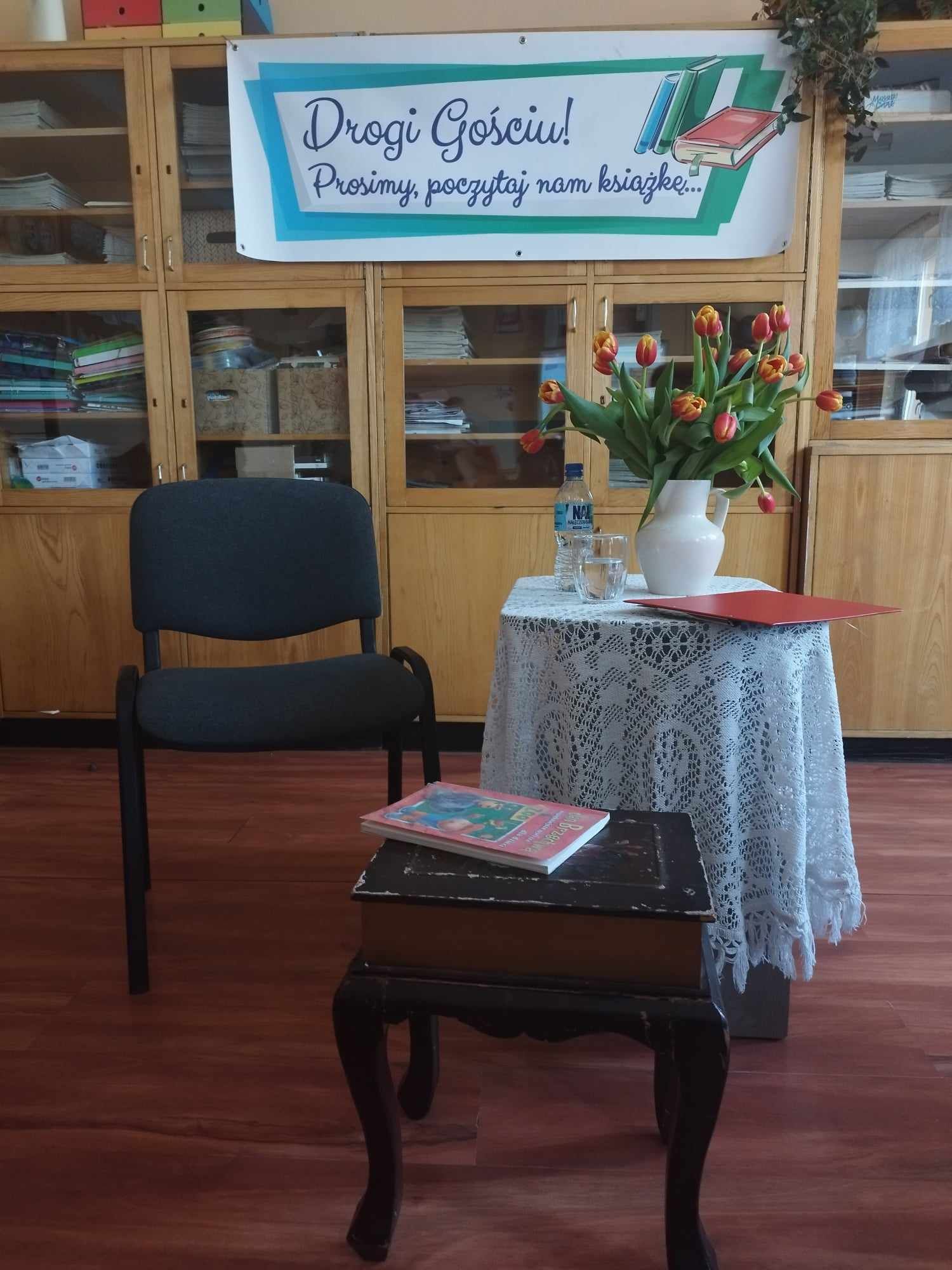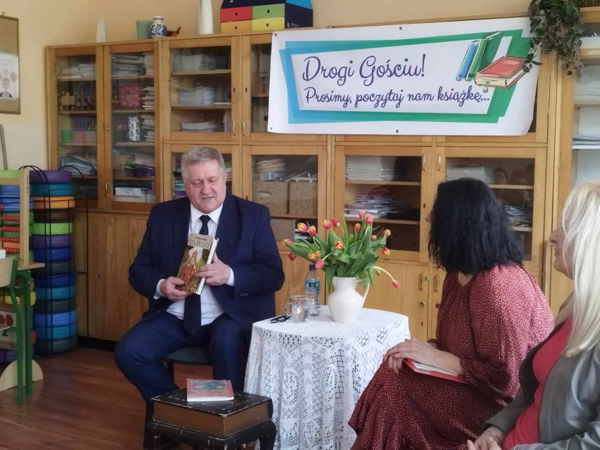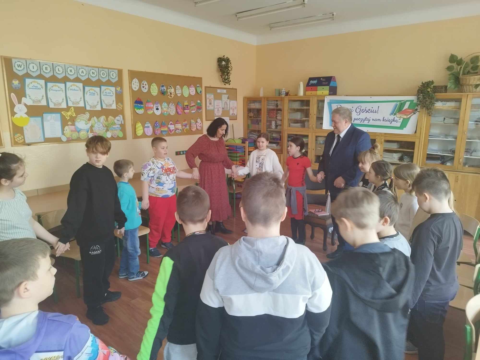 ,,Drogi Gościu, prosimy, poczytaj nam książkę” Powyższe tytuł odnosi się do cyklicznych spotkań ze znanymi osobistościami naszego miasta, którzy prezentują nam swoje ulubione lektury. Nierzadko stanowiły dla nich drogowskaz w codziennych życiu i były wyznacznikiem postaw życiowych. Kolejnym zaproszonym Gościem był Pan Sławomir Kopyść- Członek Zarządu Wojewodztwa Kujawsko-Pomorskiego, nauczyciel. Zaproszony Gość zaprezentował nam swoją ważną książkę a także przeczytał uczniom wybrane wiersze Jana Brzechwy- a wszystko to- w ramach propagowania czytelnictwa wśród dzieci i młodzieży. Niewątpliwie ważnym elementem spotkania była również rozmowa- wywiad z zaproszonym Gościem. Pytania zadawane są przez uczniów aby poznać bliżej szkolne perypetie czy też przygody z uczniowskiej ławki zaproszonej Osoby. Spotkanie przebiegło w niesamowicie miłej atmosferze. Uczniowie kl.3a zaśpiewali piosenkę a także zaprosili Pana Sławomira Kopyścia do wspólnej zabawy. Dziękujemy za wizytę. To było owocne spotkanie.