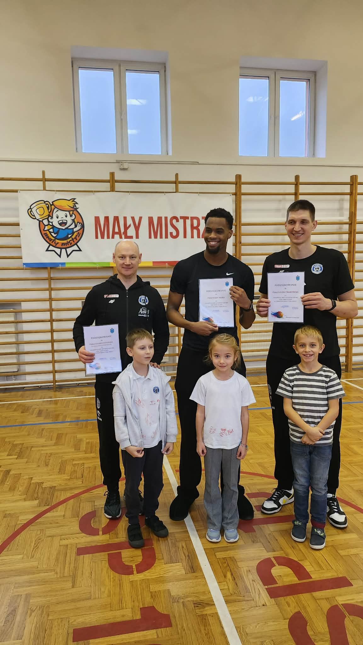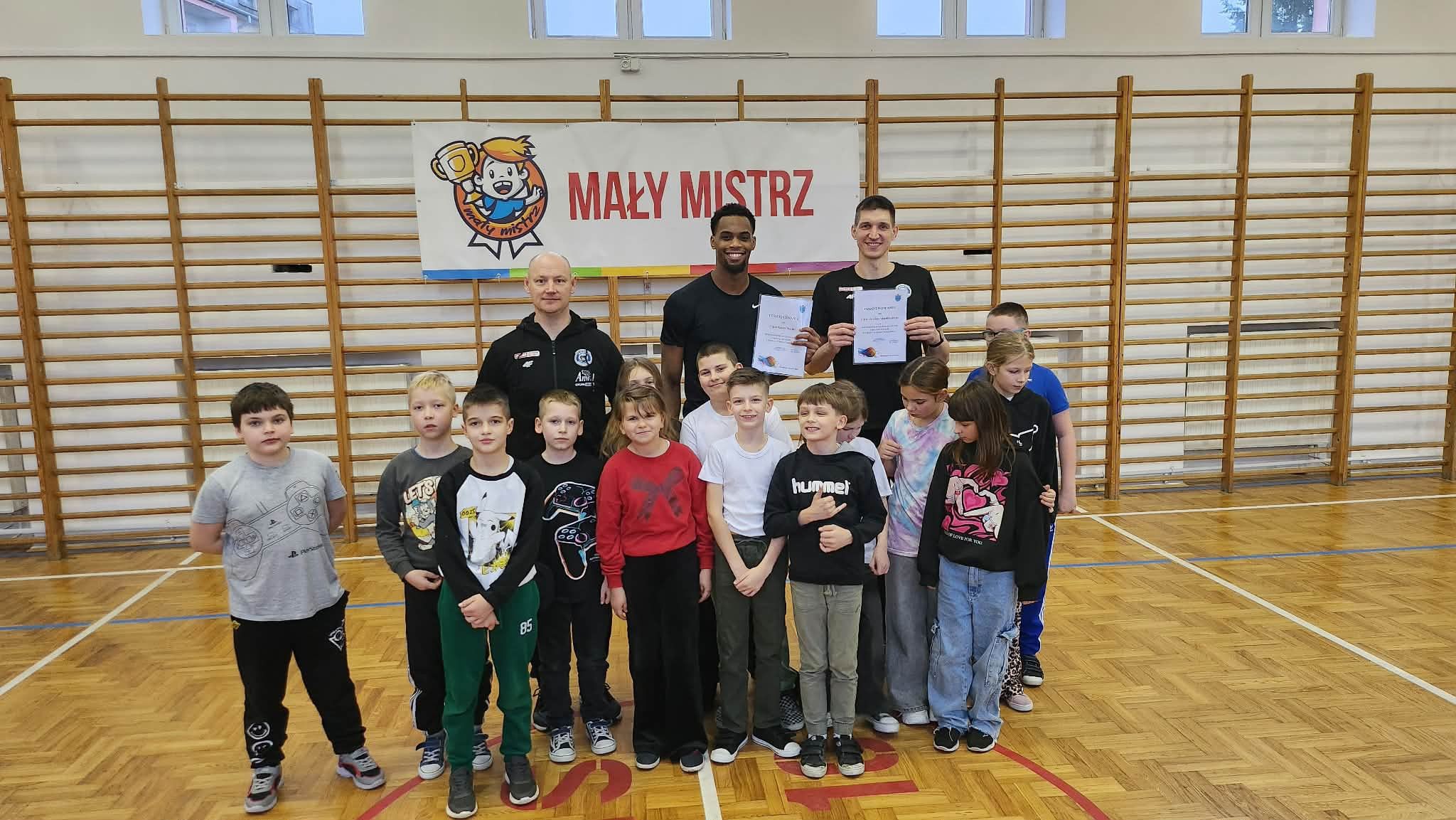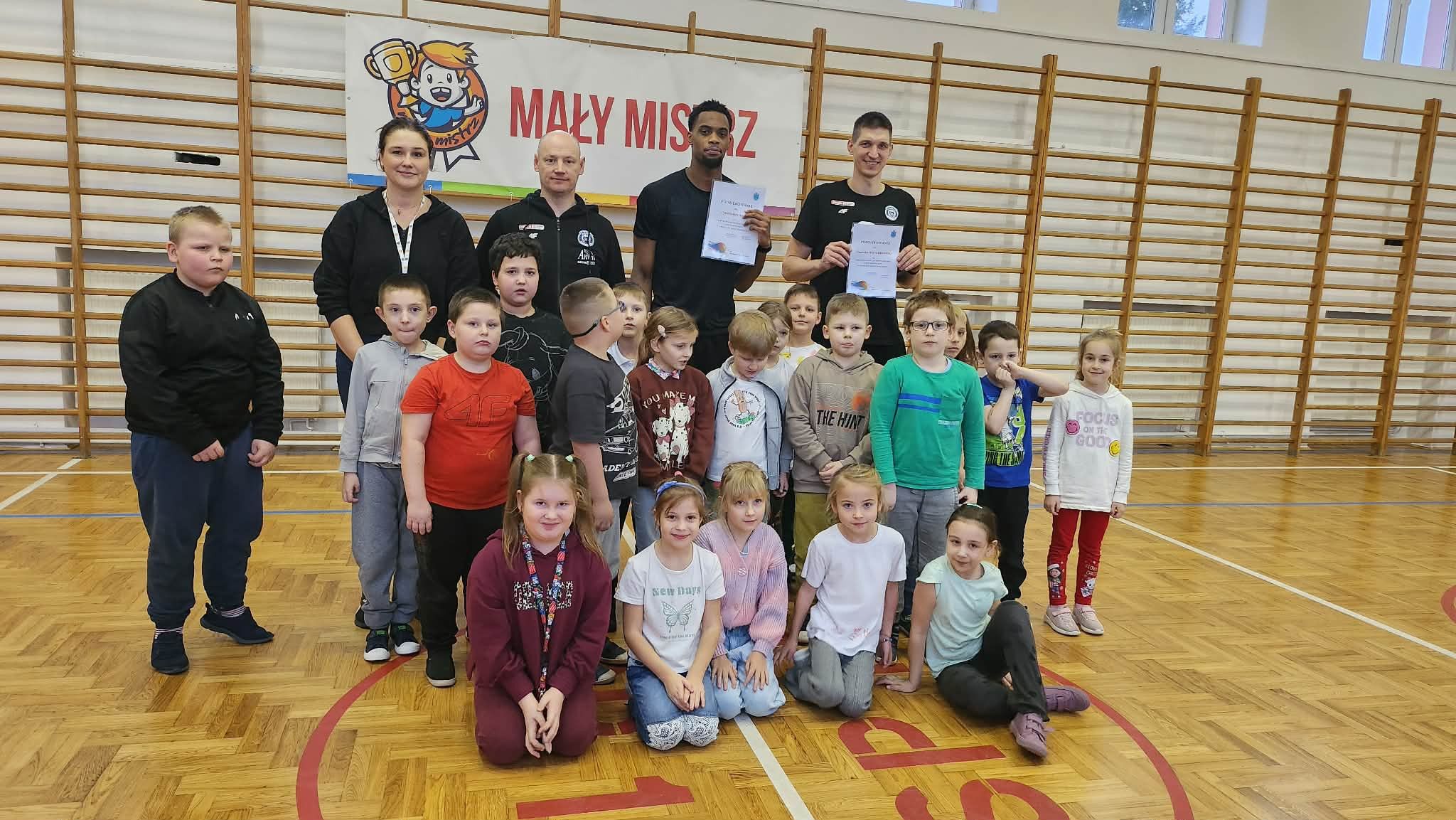 "Dnia 09.12.2025r. w naszej szkole odbyło się spotkanie w ramach programu "Mały Mistrz" z trenerem drużyny Anwil Włocławek Grzegorzem Kożanem oraz koszykarzami Dawidem Słupińskim i Isaiah'em Mucius. Panowie opowiedzieli uczniom o pracy w drużynie oraz o pasji jaką mają do sportu i koszykówki. Dzieci miały okazję zagrać z koszykarzami krótki mecz.
