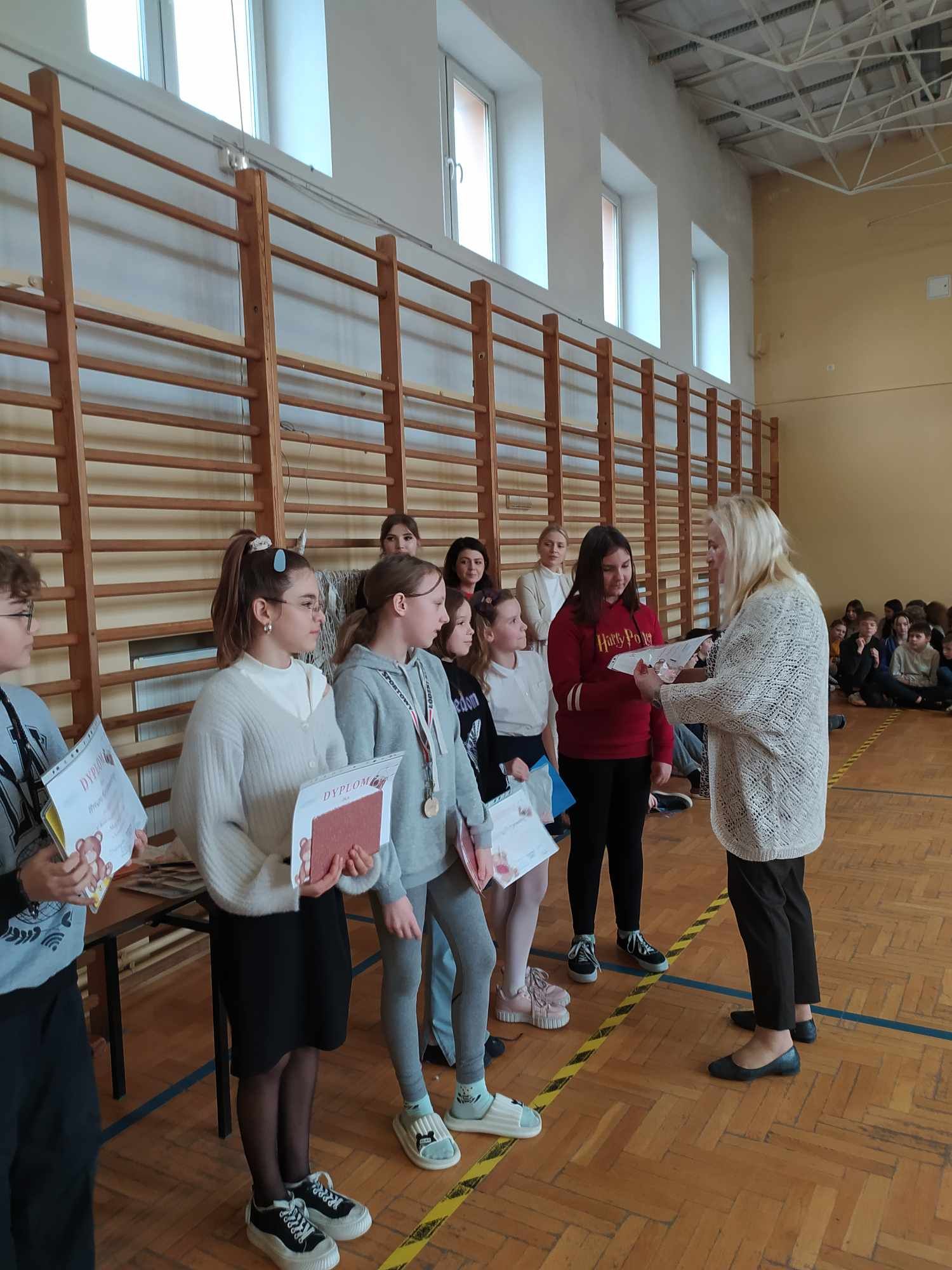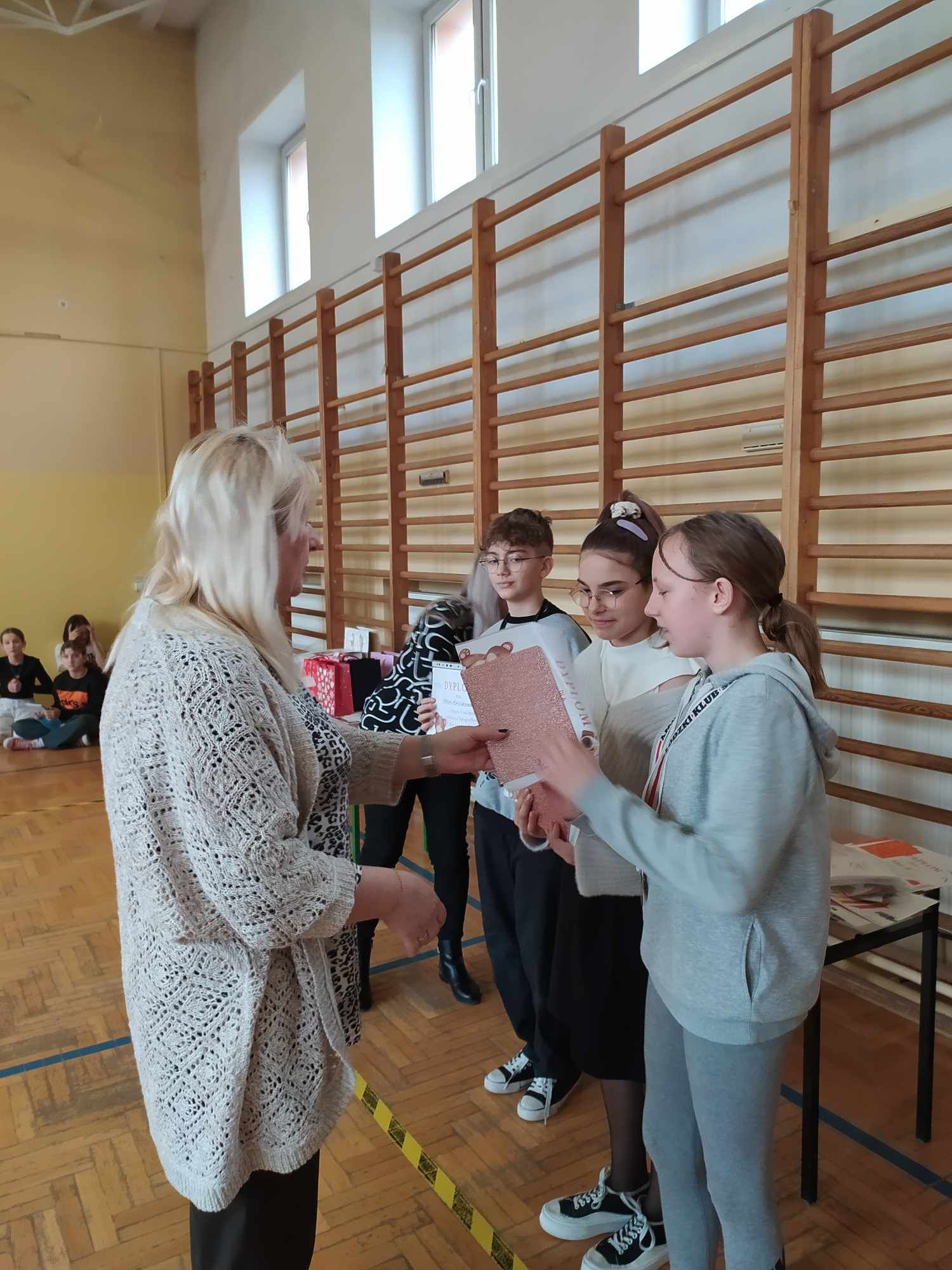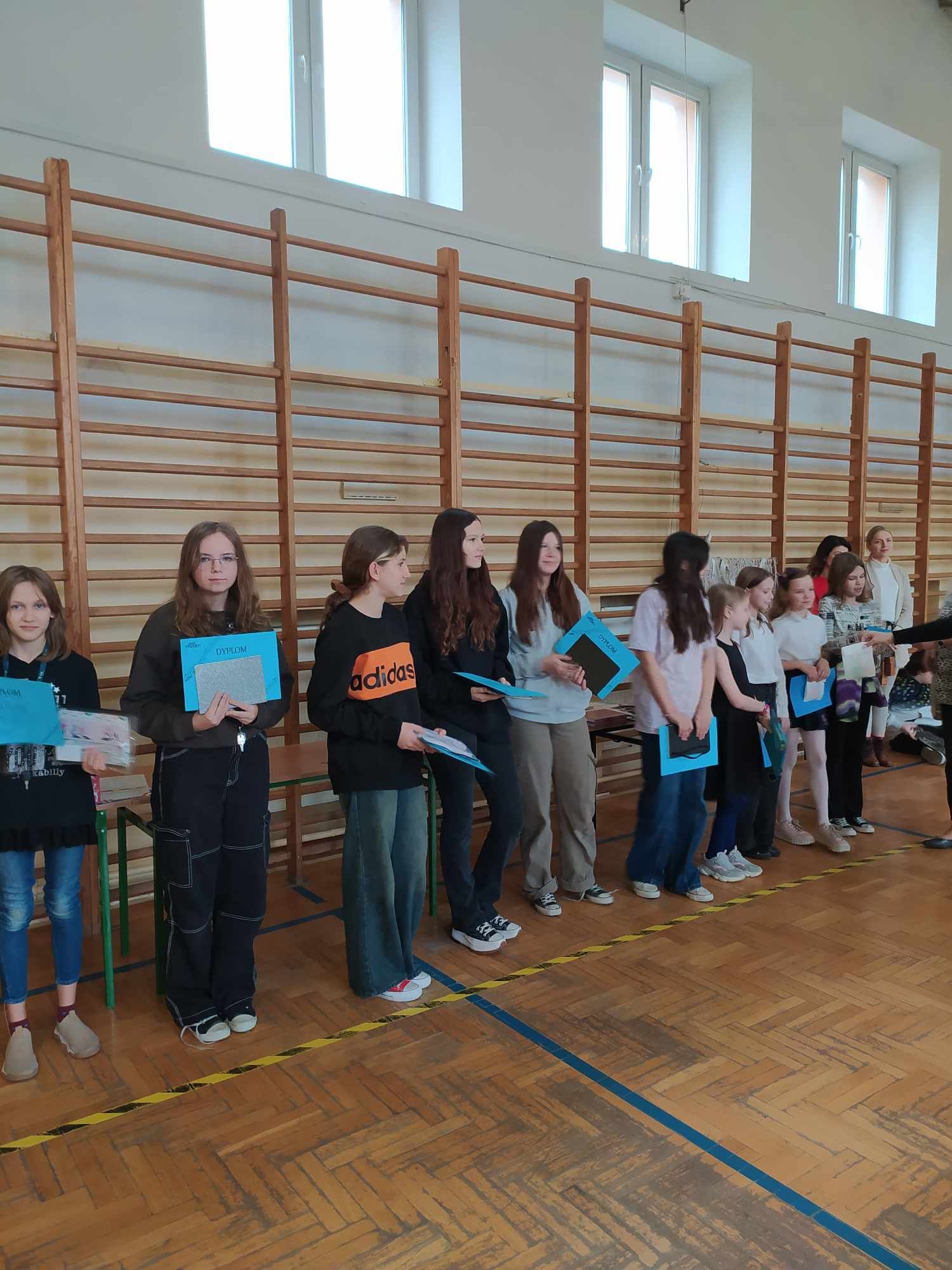 Dziś na apelu zostały wręczone dyplomy i nagrody za konkursy szkolne, które odbyły się w I semestrze roku szkolnego 2023/2024.
