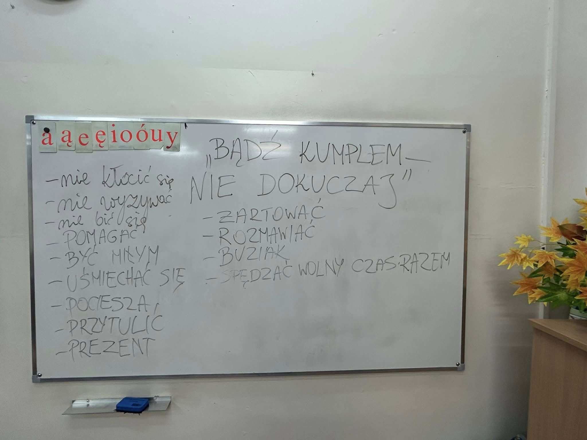 20.11.2025 r. klasa 3 a wzięła udział w zajęciach warsztatowych prowadzonych przez pedagogów szkol. ,p. Eweliną Skucha-Pastucha i p. Joannę Dziedzic. Spotkanie odbyło się w ramach Kampanii społ. ,,Bądź kumplem. Nie dokuczaj”. Oprócz zabaw integrujących zespół klasowy, dzieci rozmawiały o sytuacjach gdy ktoś komuś dokucza, o empatii i radzeniu sobie z trudnymi emocjami. Była zabawa i były bardzo kreatywne wnioski.