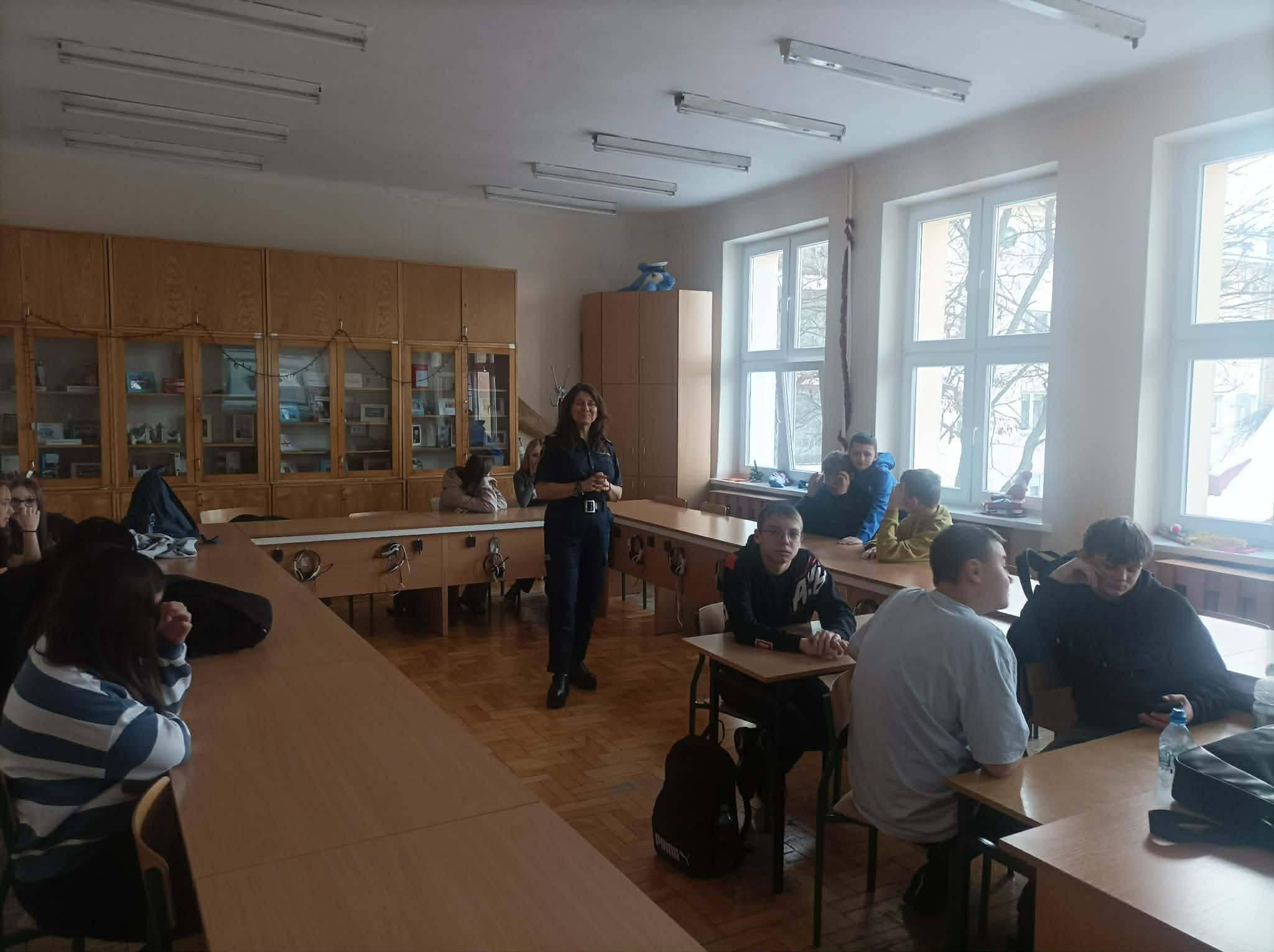 Od początku stycznia klasy 5,6 i 7 spotykały się z p.Elzbietą Rybicką ze Straży Miejskiej na zajęciach poświęconych odpowiedzialności karnej nieletnich, cyberzagrożeniom i bezpieczeństwu w czasie ferii.