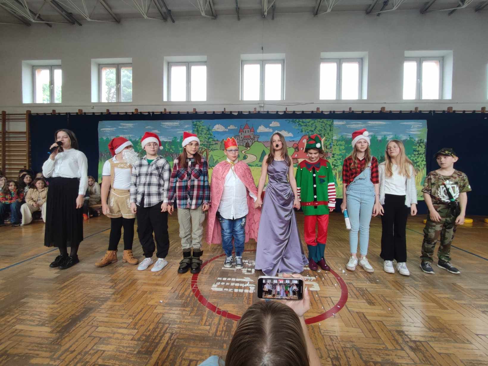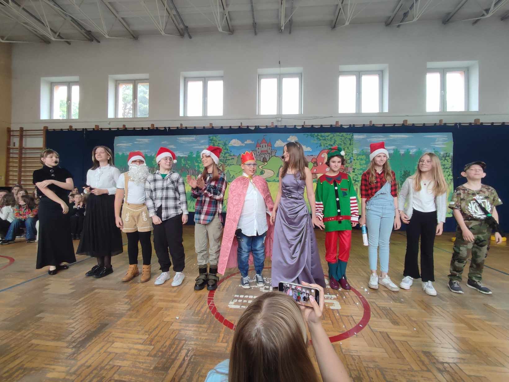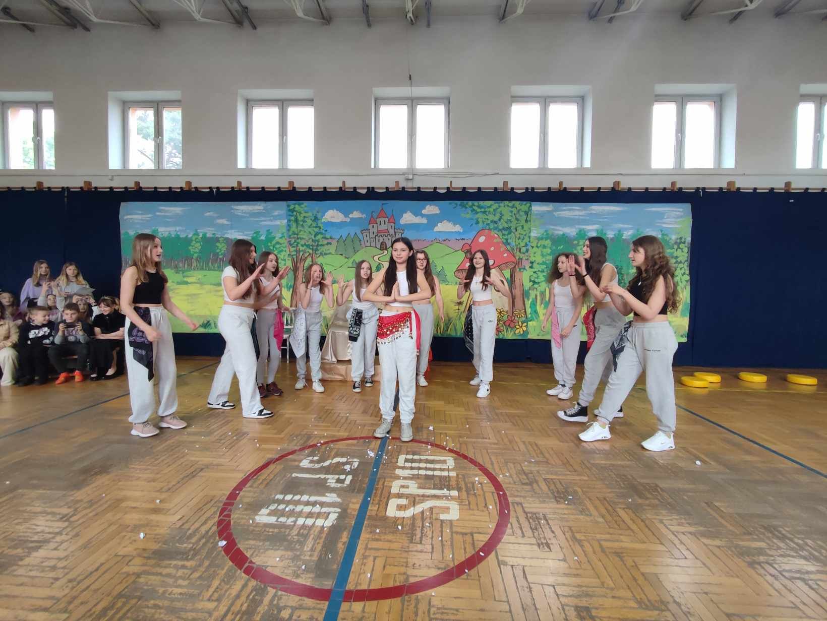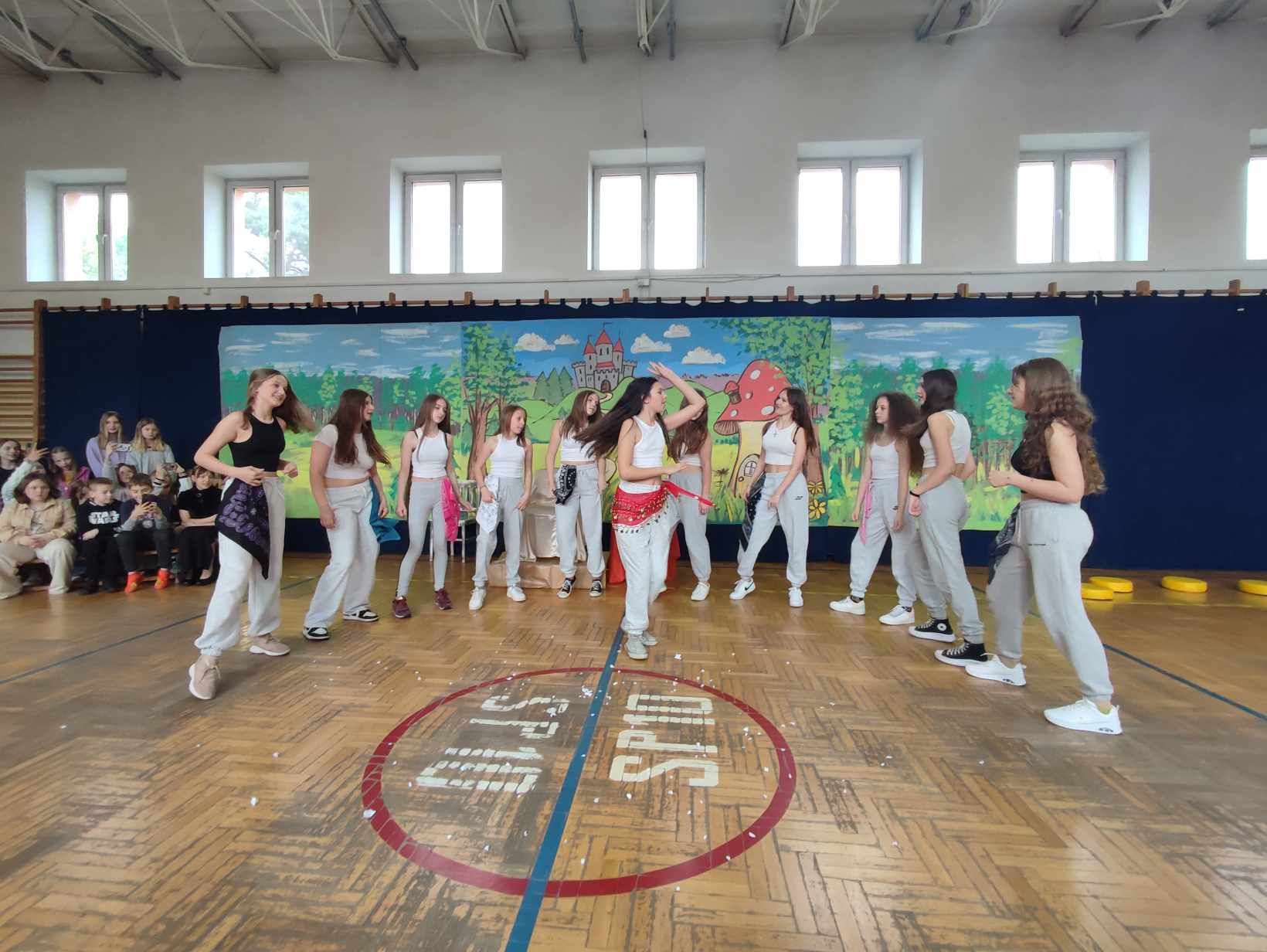 W ramach ,,Drzwi otwartych" uczniowie SP10 zaprezentowali swoje talenty. Na początku zaśpiewał chór szkolny, następnie uczennica klasy 2a Blanka Januszewska laureatka I miejsca w Międzyszkolnym Konkursie Krasomówczym z j.angielskiego zaprezentowała wiersz o królewnie Śnieżce. Szkolne koło teatralne wystawiło spektakl pt. ,,Królewna Śnieżka". Umiejętnością gry na keyboardzie wykazał się Mateusz Geryń z klasy VII. Część artystyczną zakończył zespół taneczny.