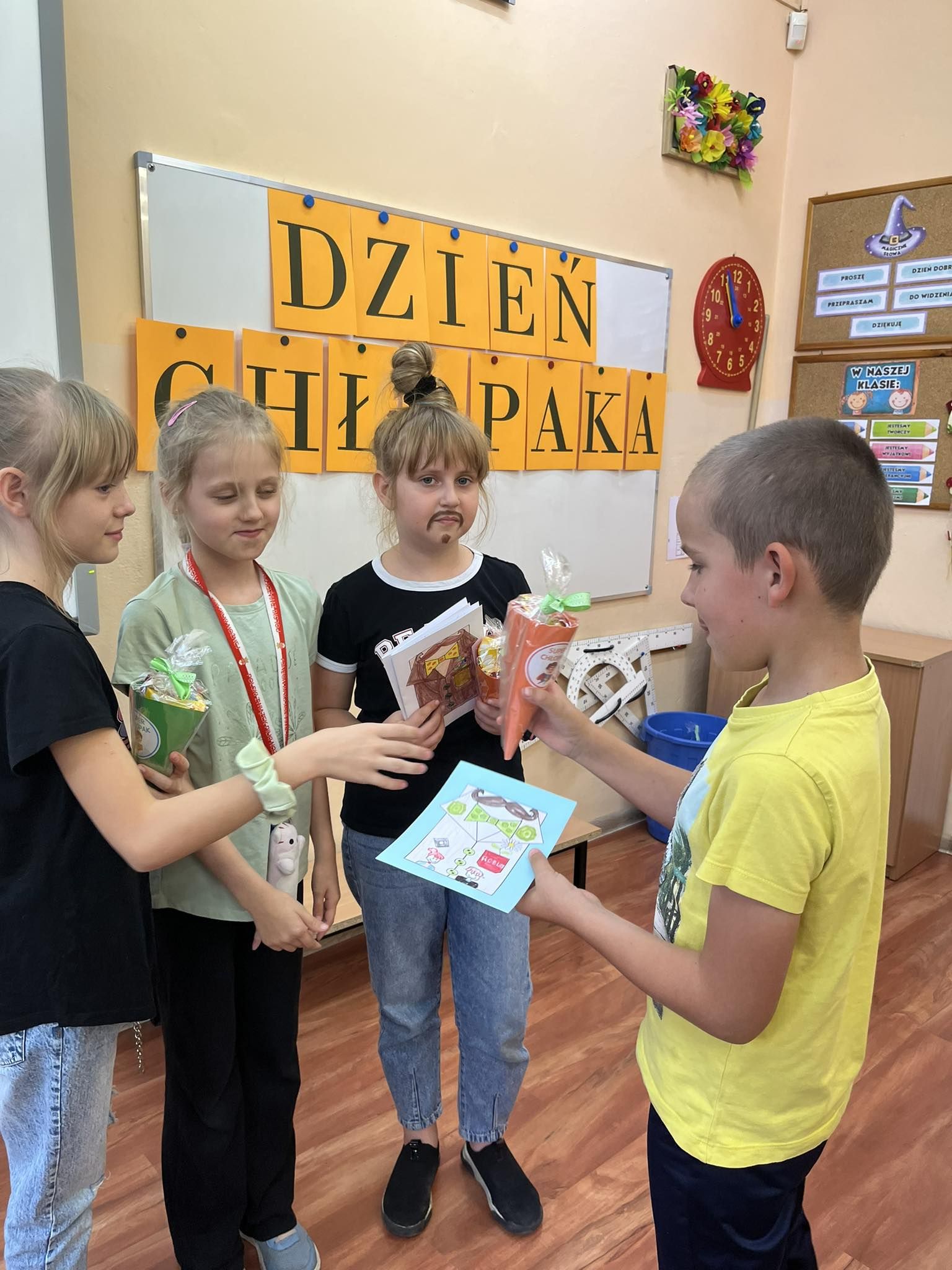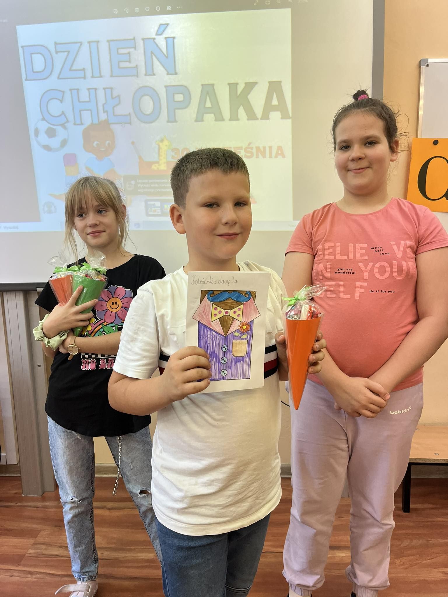 W ramach "Dnia chłopca" dziewczynki z klasy 3a przygotowały dla swoich kolegów słodkie upominki i laurki. Atrakcji nie było końca, dziewczynki zaprosiły także chłopców do kina na film „Mru i ja: Wielka przygoda na cztery łapy”.