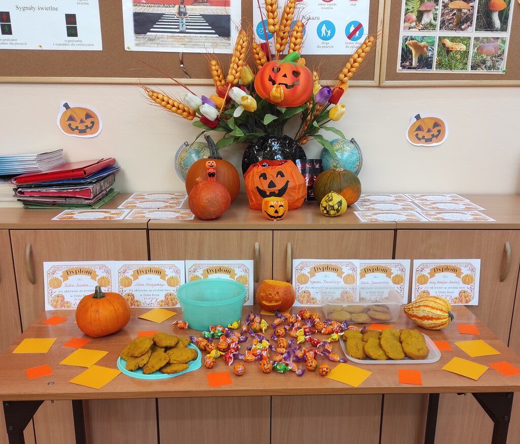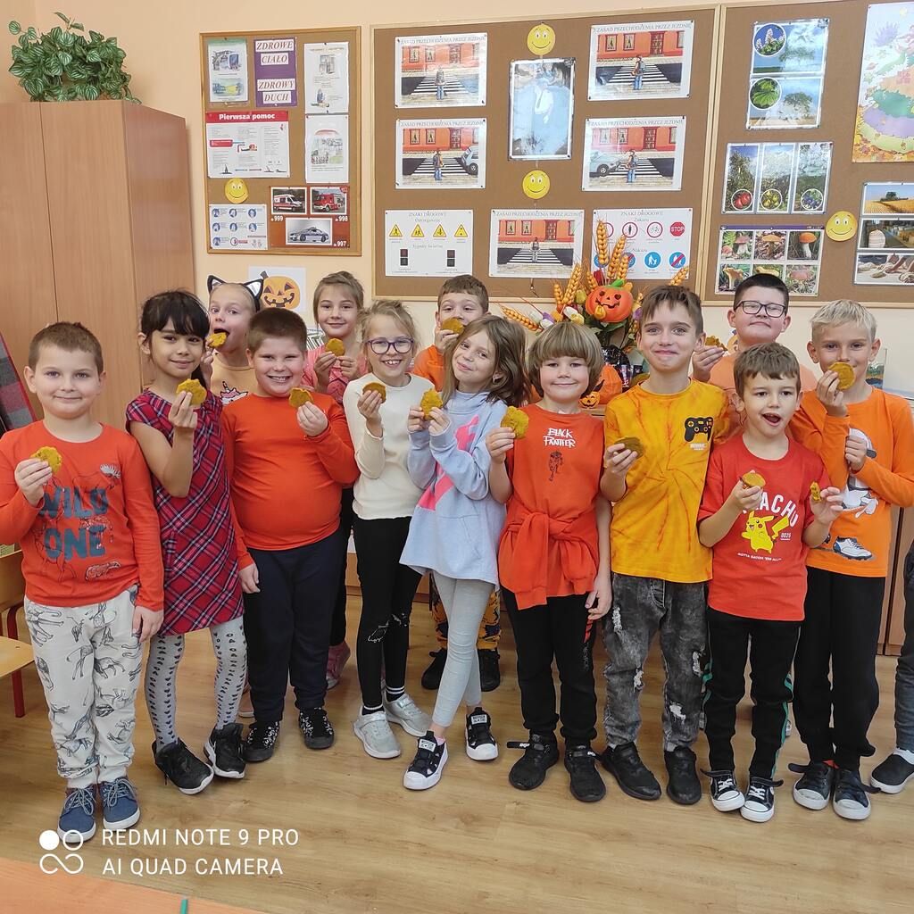 31 Października w 2 A obchodziliśmy Dzień Dyni. Dominował kolor pomarańczowy. Dowiedzieliśmy się wielu ciekawych informacji o dyni. Poznaliśmy ciekawe przepisy na potrawy z tego warzywa. Było dużo śmiechu, zabawy i słodkości. Blanka wraz z mamą przygotowały ciasteczka. Mniam, mniam – były pyszne. To był fajny dzień.