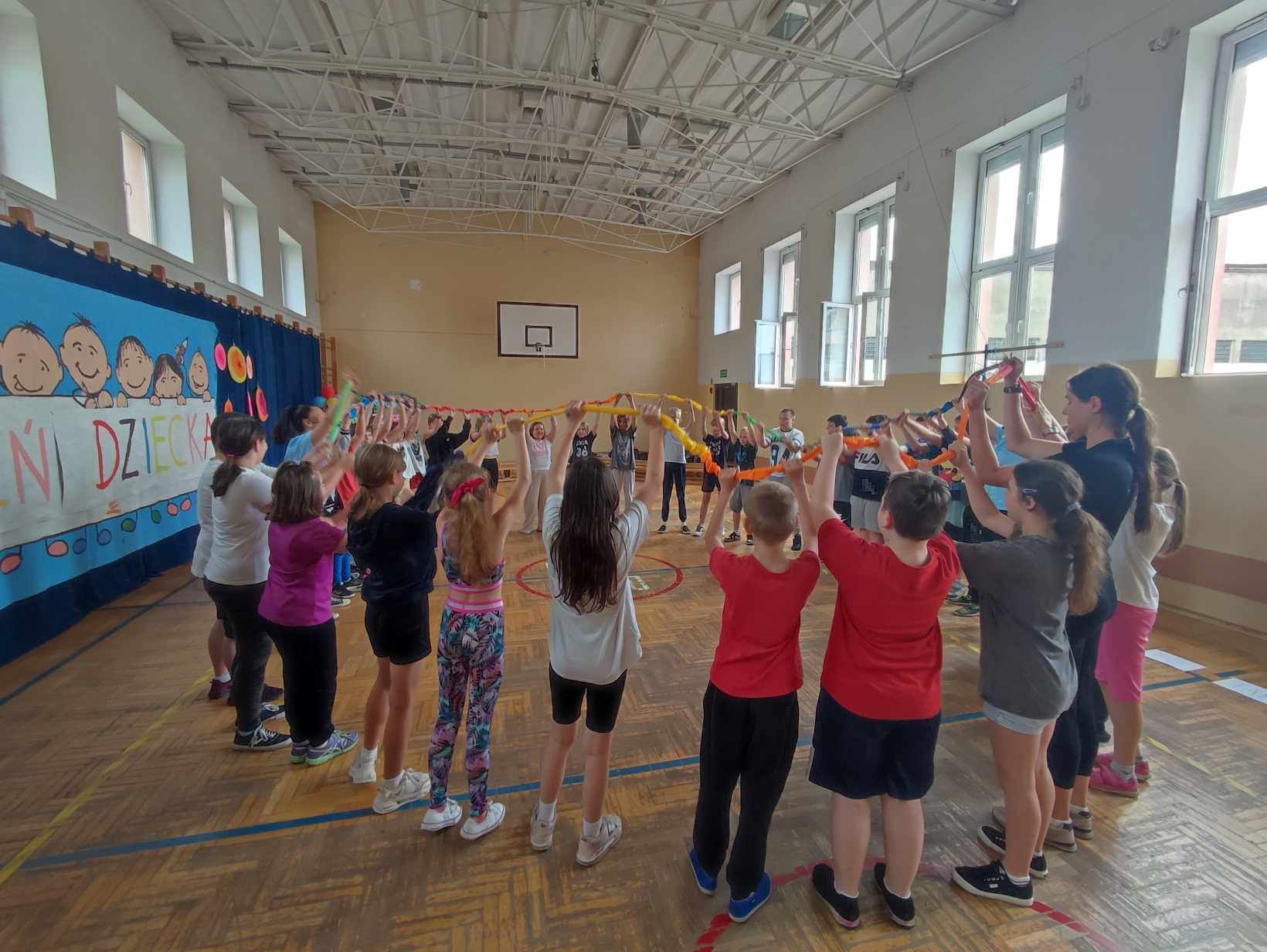 W dniach 3.06 i 4.06 w naszej szkole z okazji Dnia Dziecka odbyły się potyczki międzyklasowe dla klas drugich, trzecich i czwartych pt. „Wszystkie dzieci są w dychę” zorganizowane przez panie Aleksandrę Kalinowską oraz Emilię Konopę. Uczestnicy rywalizowali w kilku konkurencjach sportowych, które wymagały współpracy i zaangażowania. Wszystkie dzieci bawiły się z wielką radością. Na koniec każdy zawodnik został nagrodzony słodkim upominkiem. Serdecznie dziękujemy za współpracę pani Joannie Karwat i pani Dominice Stolcman, a panu Mirosławowi Traczykowi za przepiękną dekorację. Do zobaczenia za rok! ![]()
