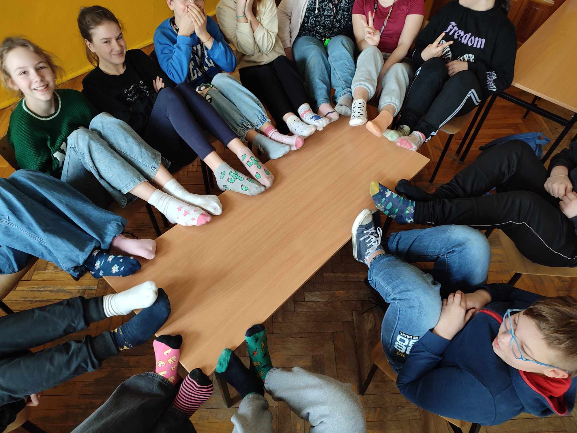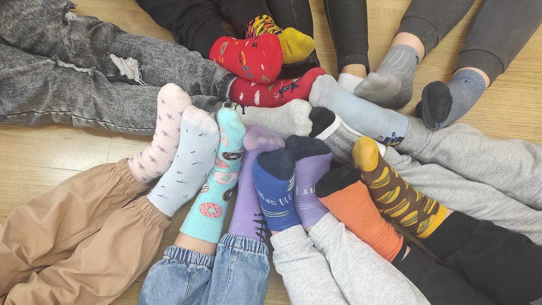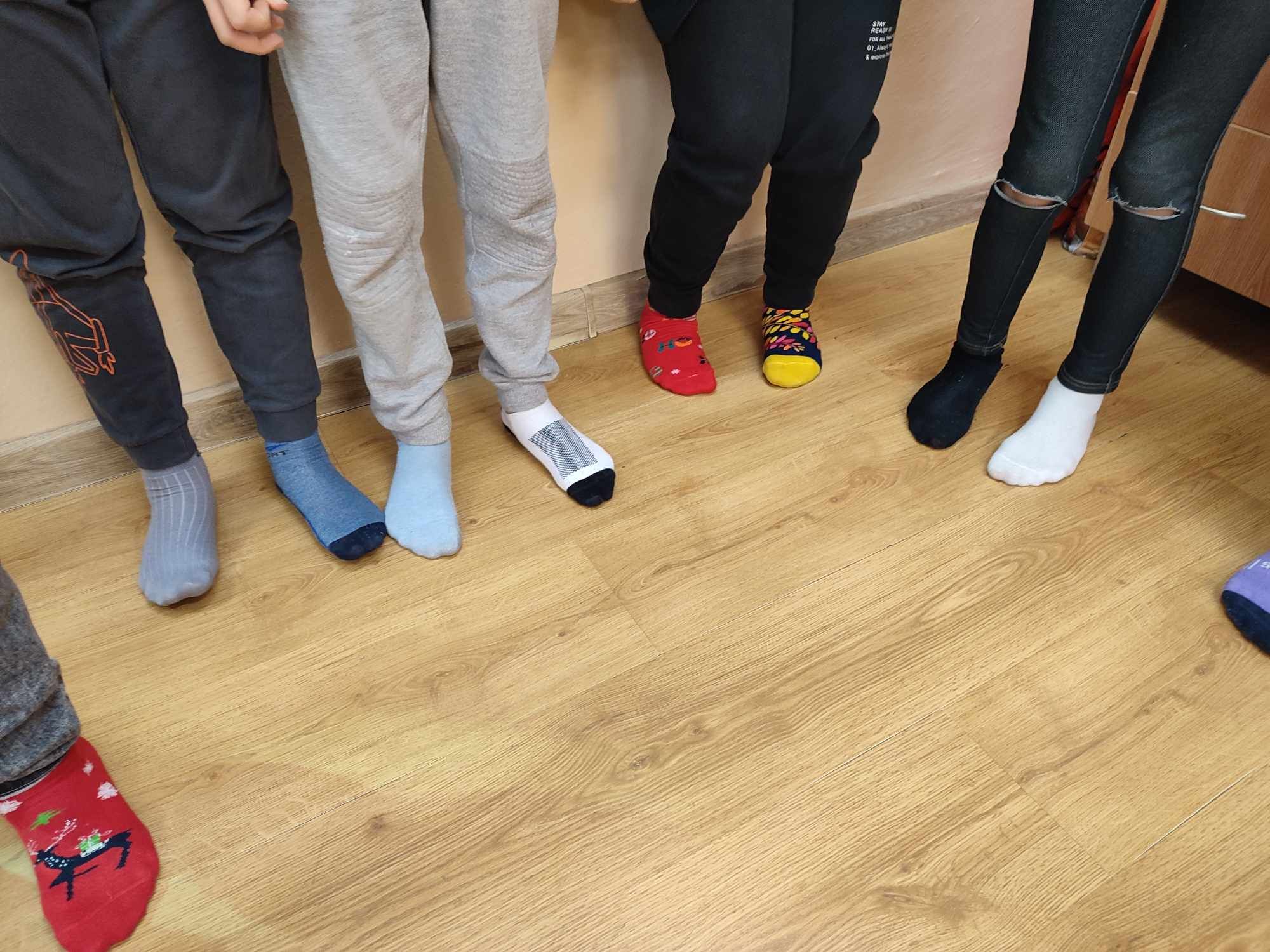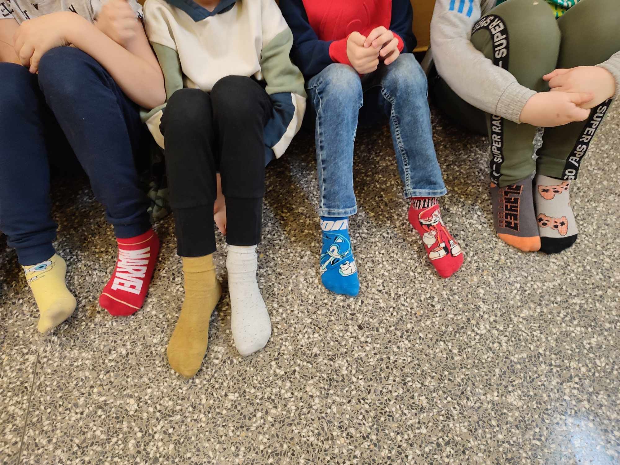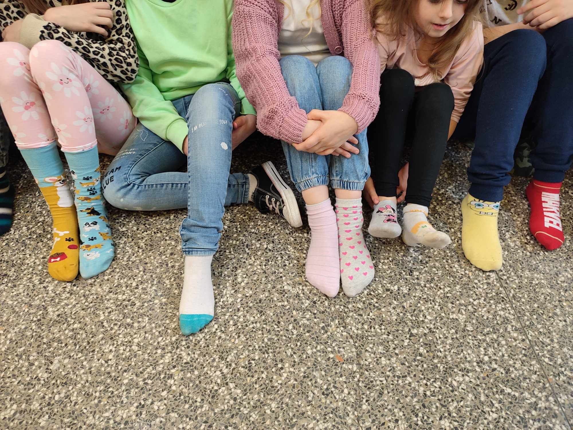 W Dniu Osób z Zespołem Downa uczniowie i pracownicy w geście solidarności założyli kolorowe skarpetki. Na różnych lekcjach ,zajęciach rozmawialiśmy na ten temat. Mogliśmy przyjrzeć się specyficznym cechom Zespołu Downa. Oglądaliśmy prezentacje, gazetki na korytarzach, projektowaliśmy kolorowe skarpetki. Wszystko utrwaliliśmy na zdjęciach