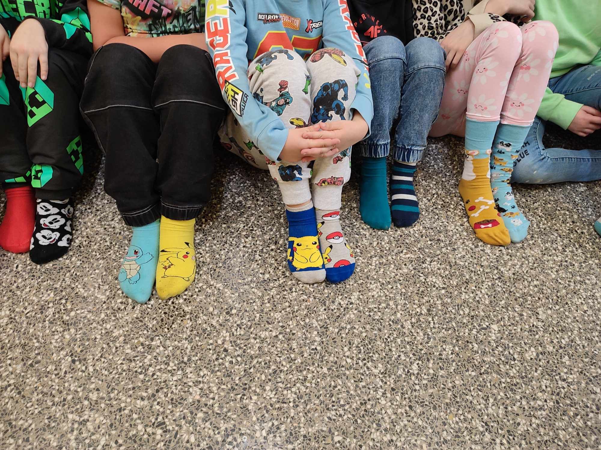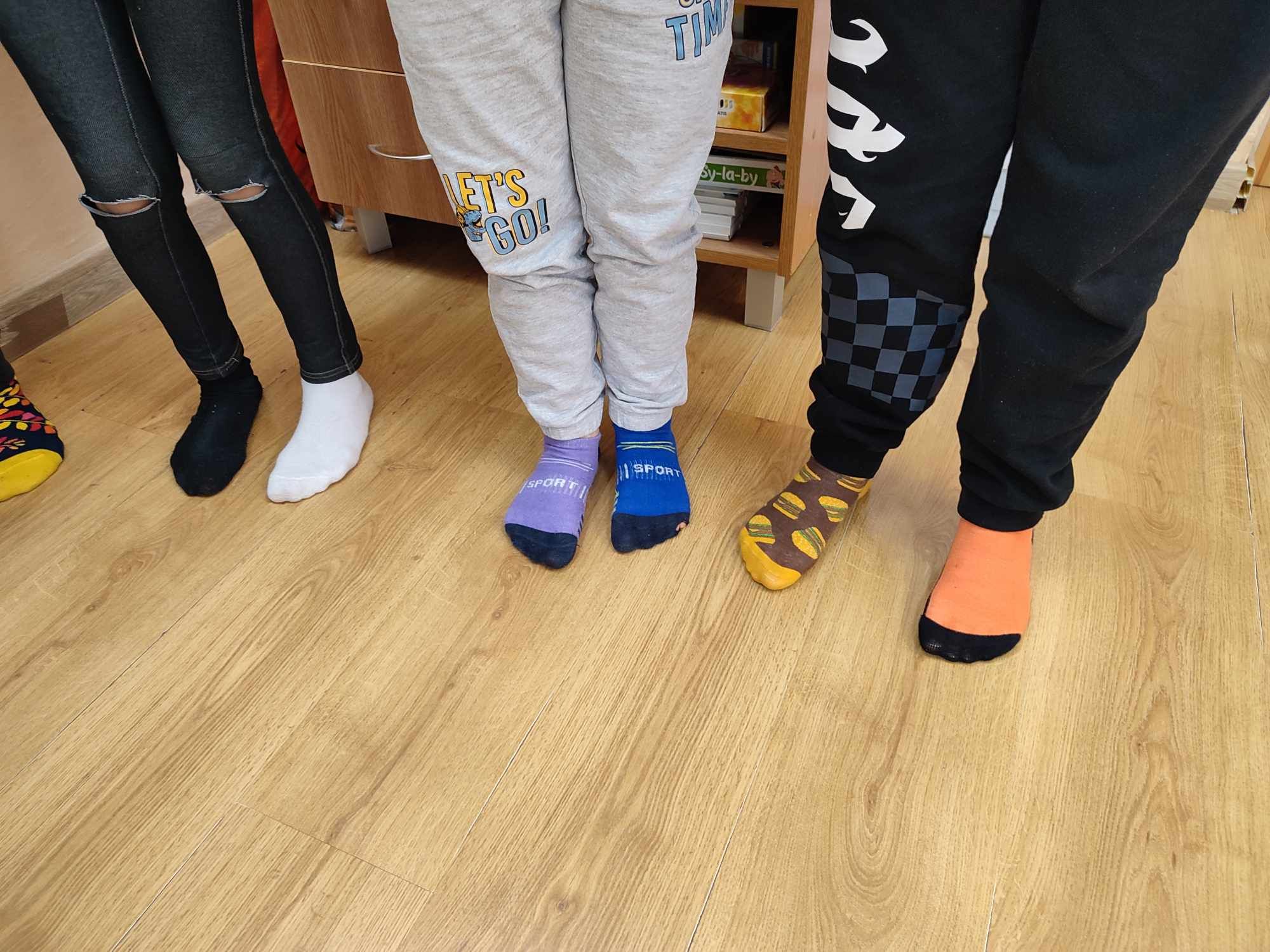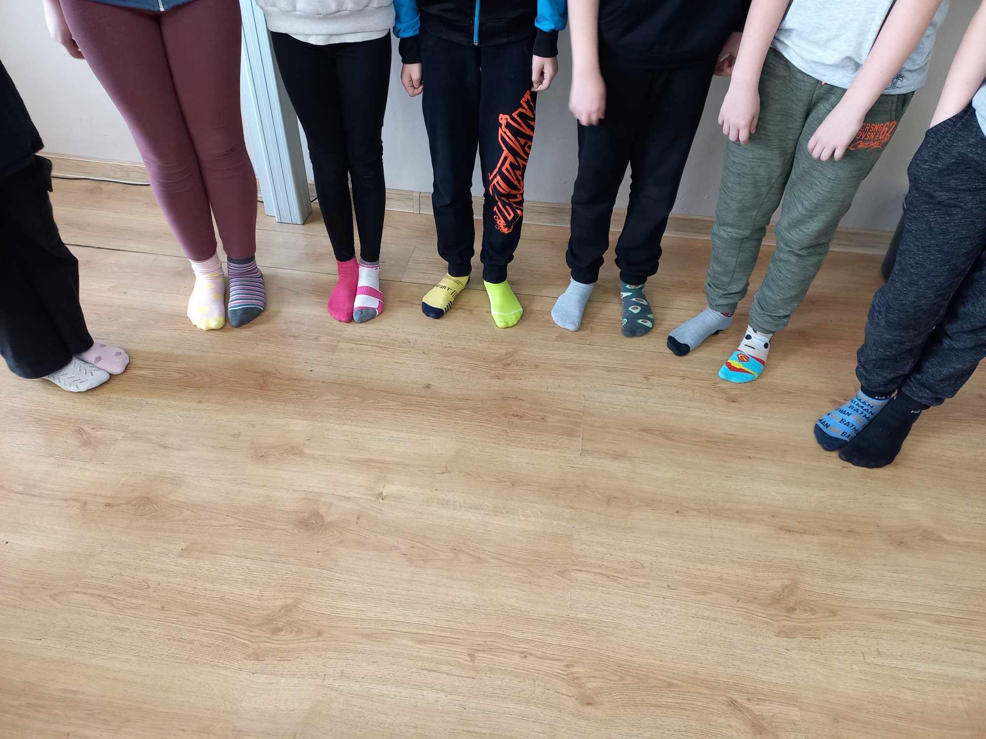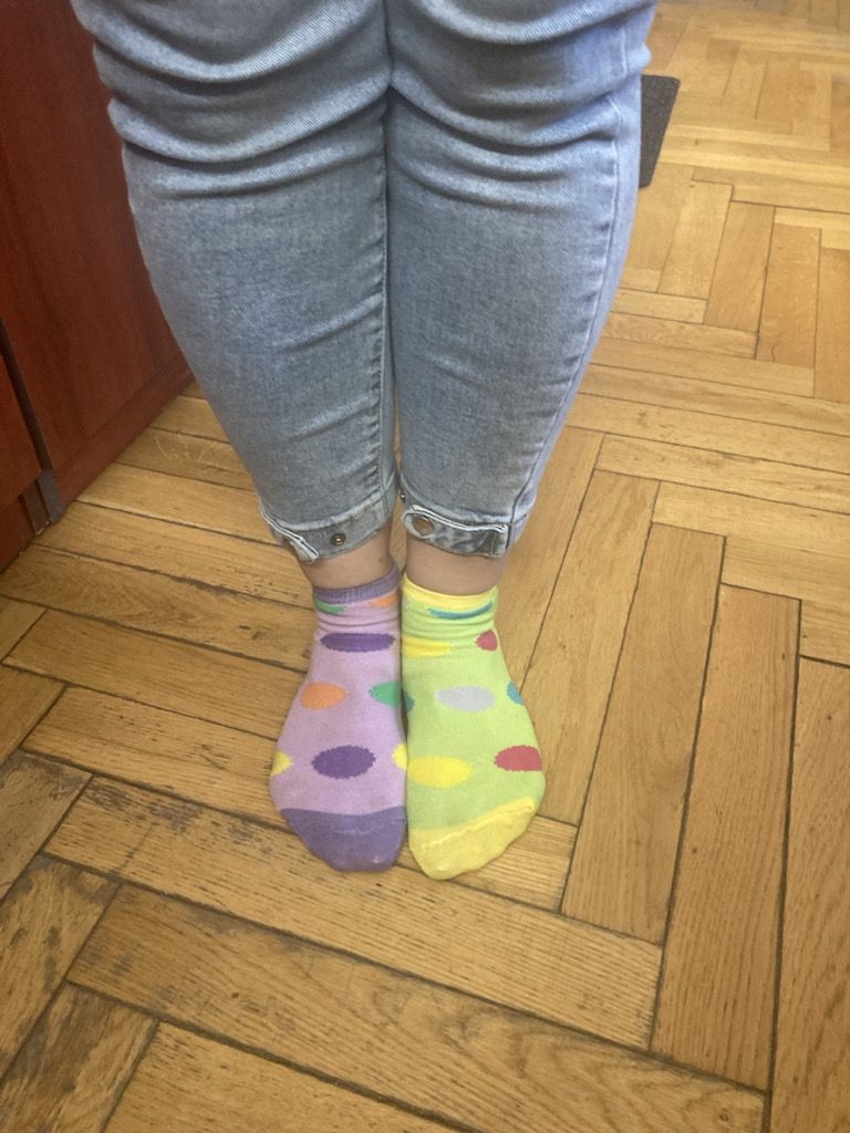 W Dniu Osób z Zespołem Downa uczniowie i pracownicy w geście solidarności założyli kolorowe skarpetki. Na różnych lekcjach ,zajęciach rozmawialiśmy na ten temat. Mogliśmy przyjrzeć się specyficznym cechom Zespołu Downa. Oglądaliśmy prezentacje, gazetki na korytarzach, projektowaliśmy kolorowe skarpetki. Wszystko utrwaliliśmy na zdjęciach