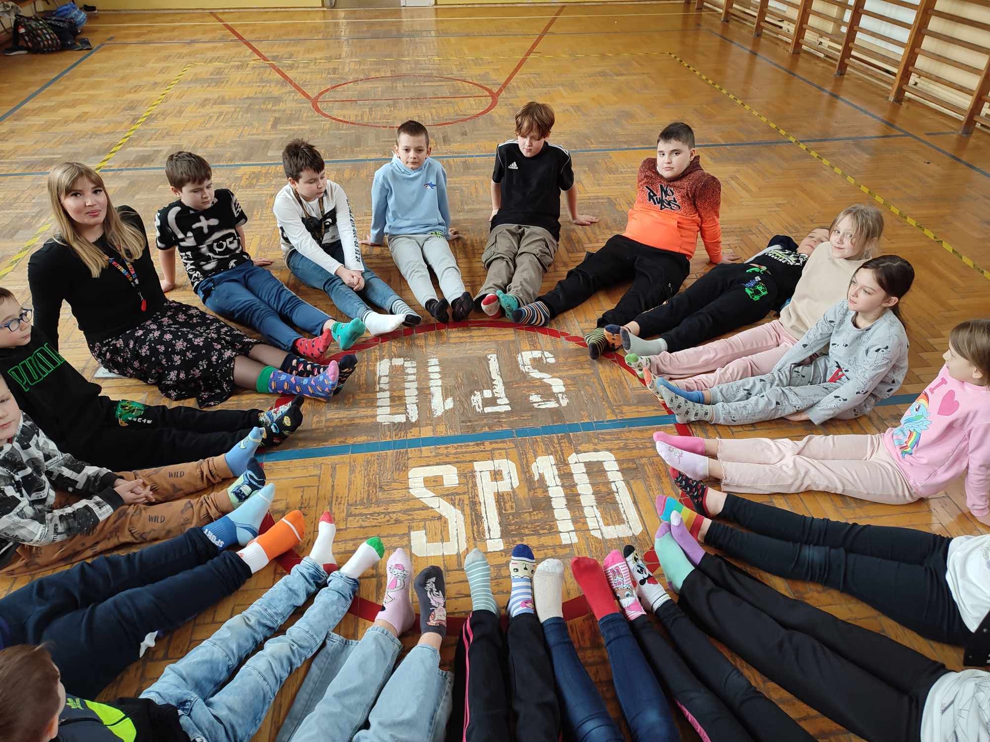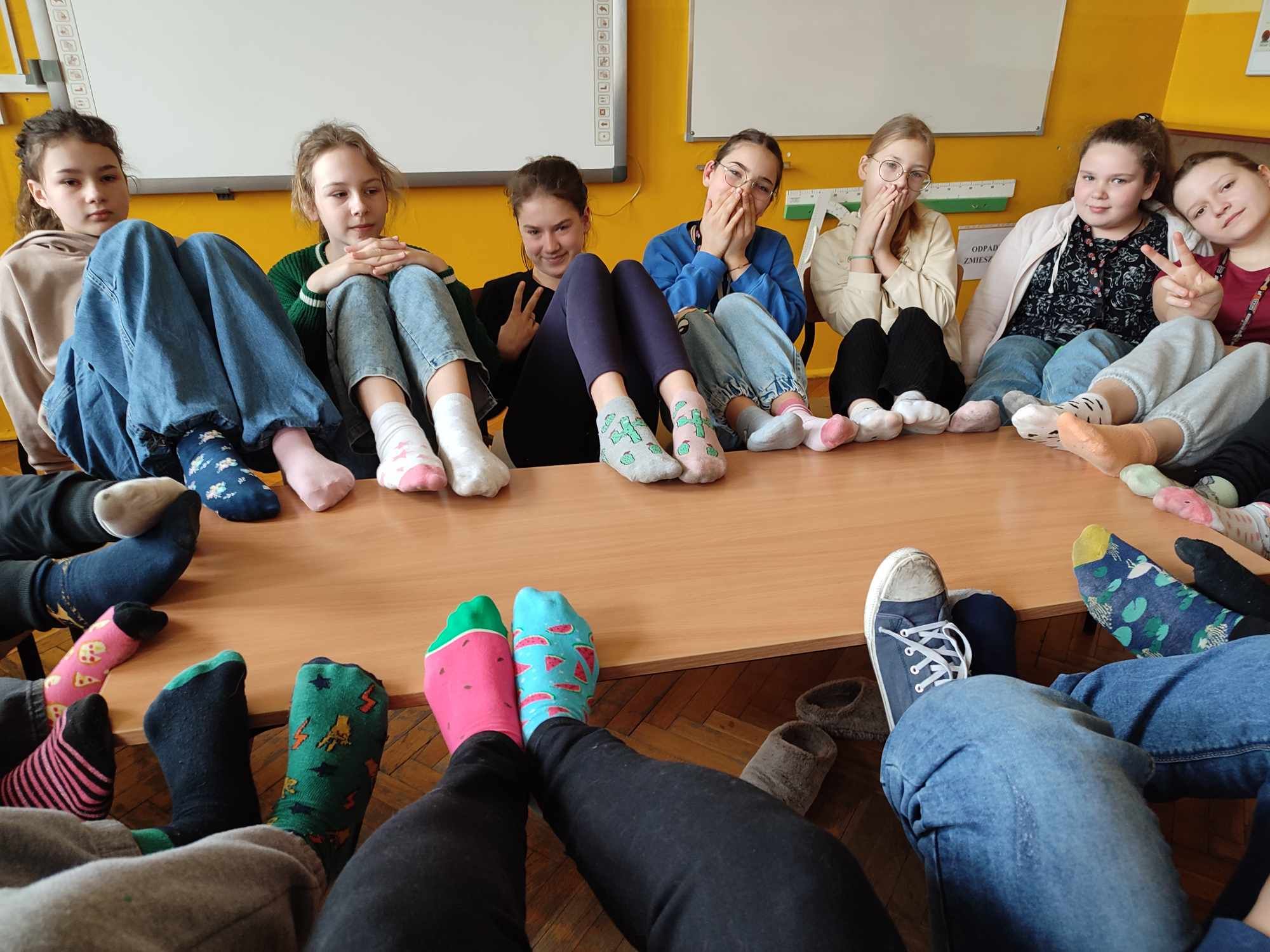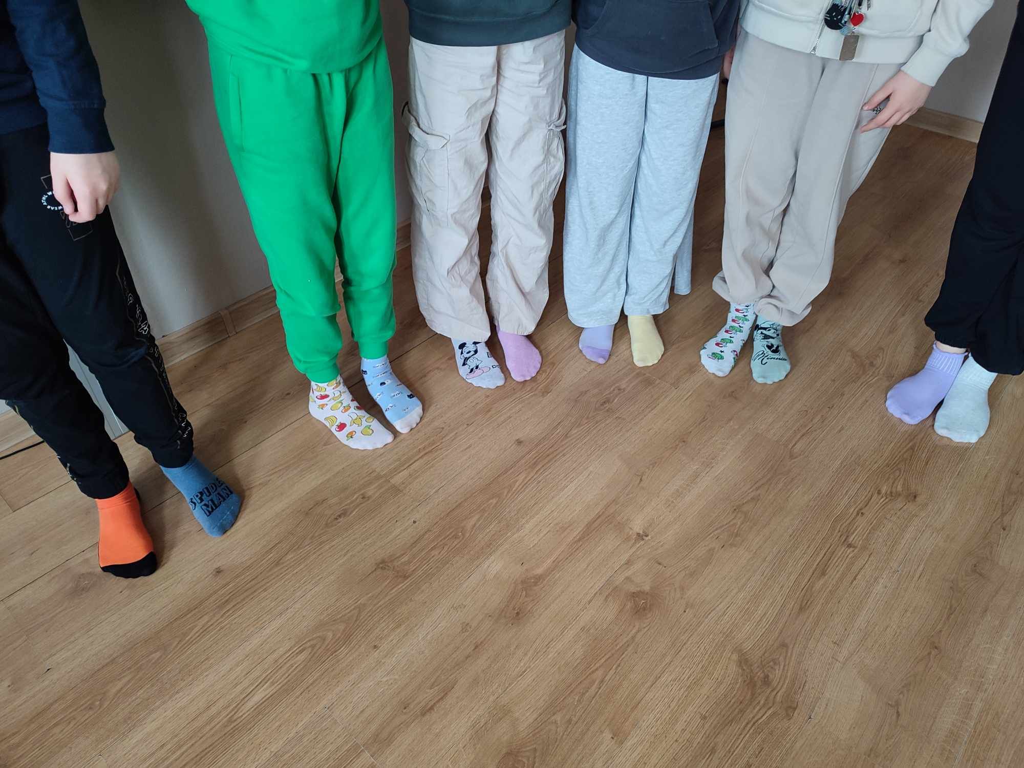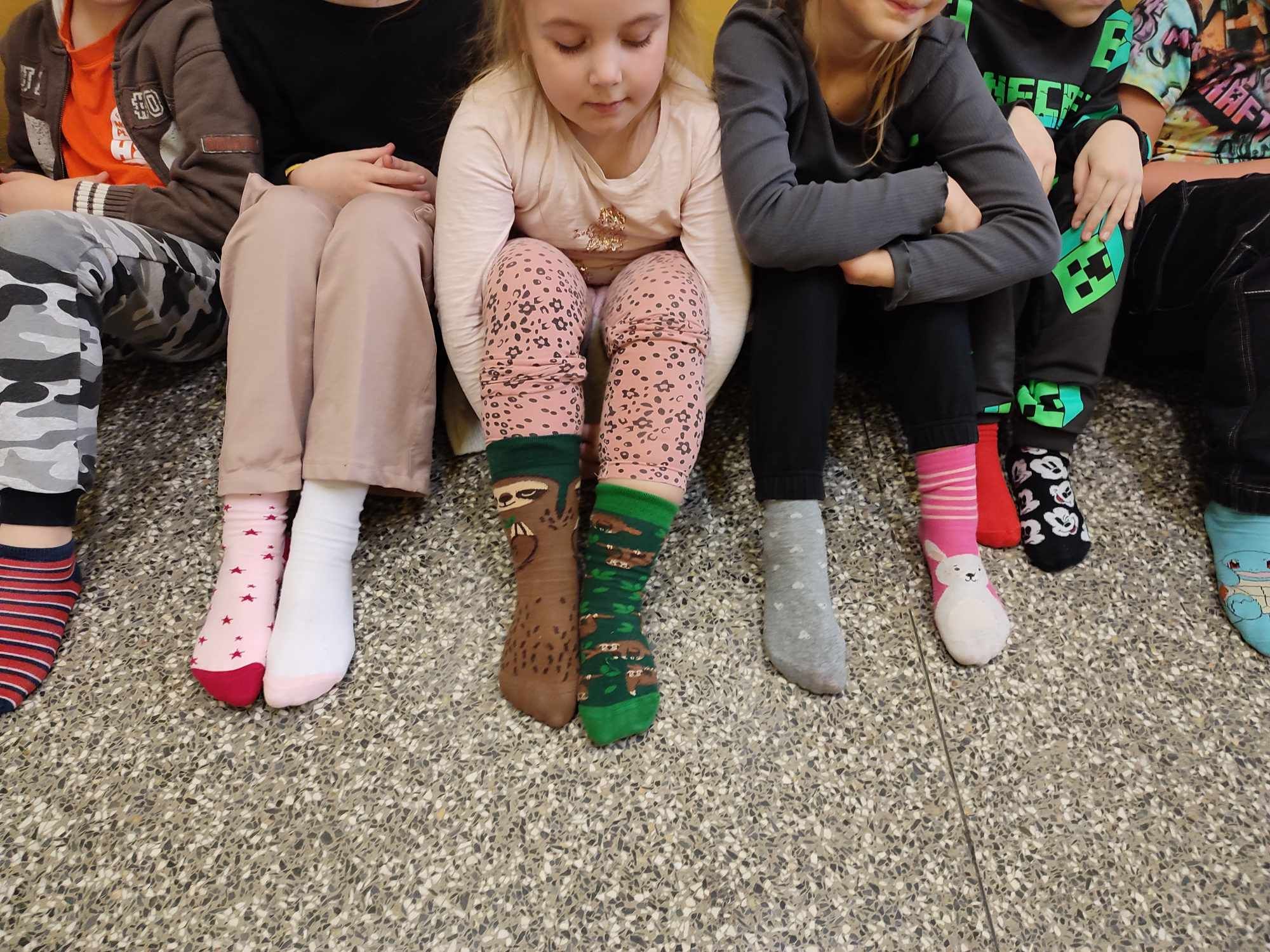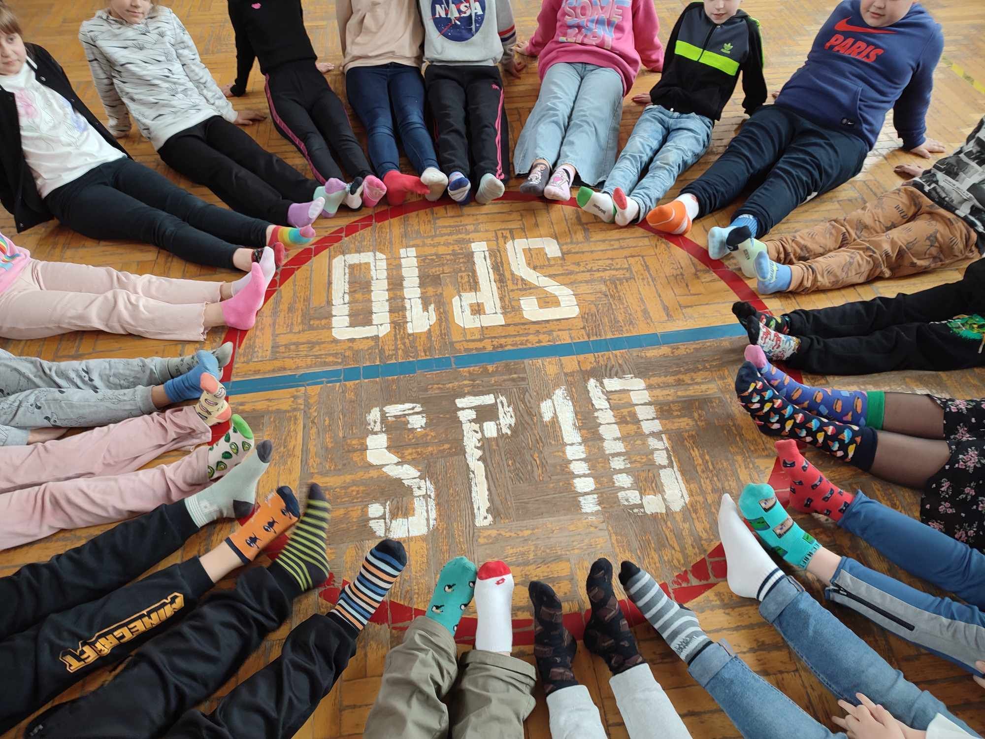 W Dniu Osób z Zespołem Downa uczniowie i pracownicy w geście solidarności założyli kolorowe skarpetki. Na różnych lekcjach ,zajęciach rozmawialiśmy na ten temat. Mogliśmy przyjrzeć się specyficznym cechom Zespołu Downa. Oglądaliśmy prezentacje, gazetki na korytarzach, projektowaliśmy kolorowe skarpetki. Wszystko utrwaliliśmy na zdjęciach
