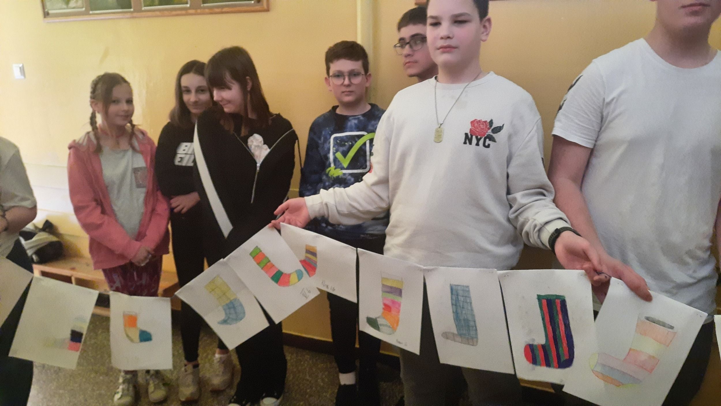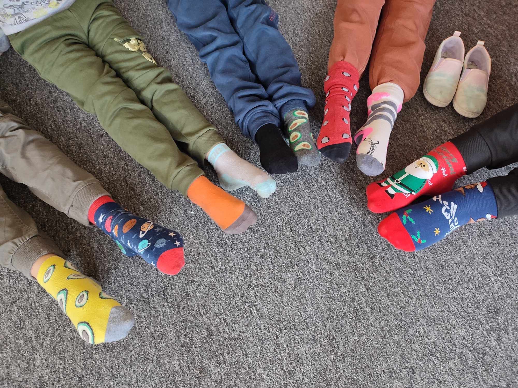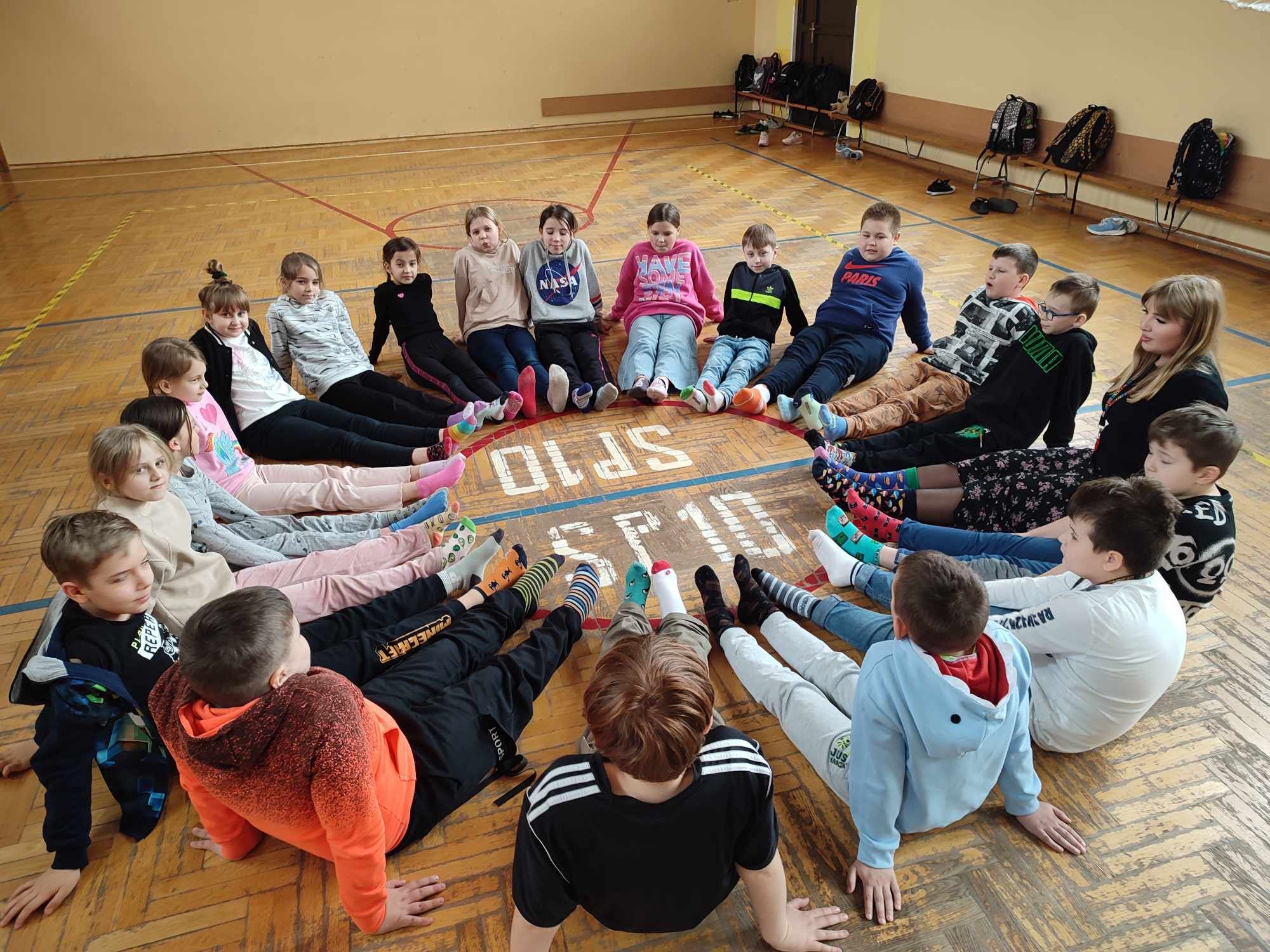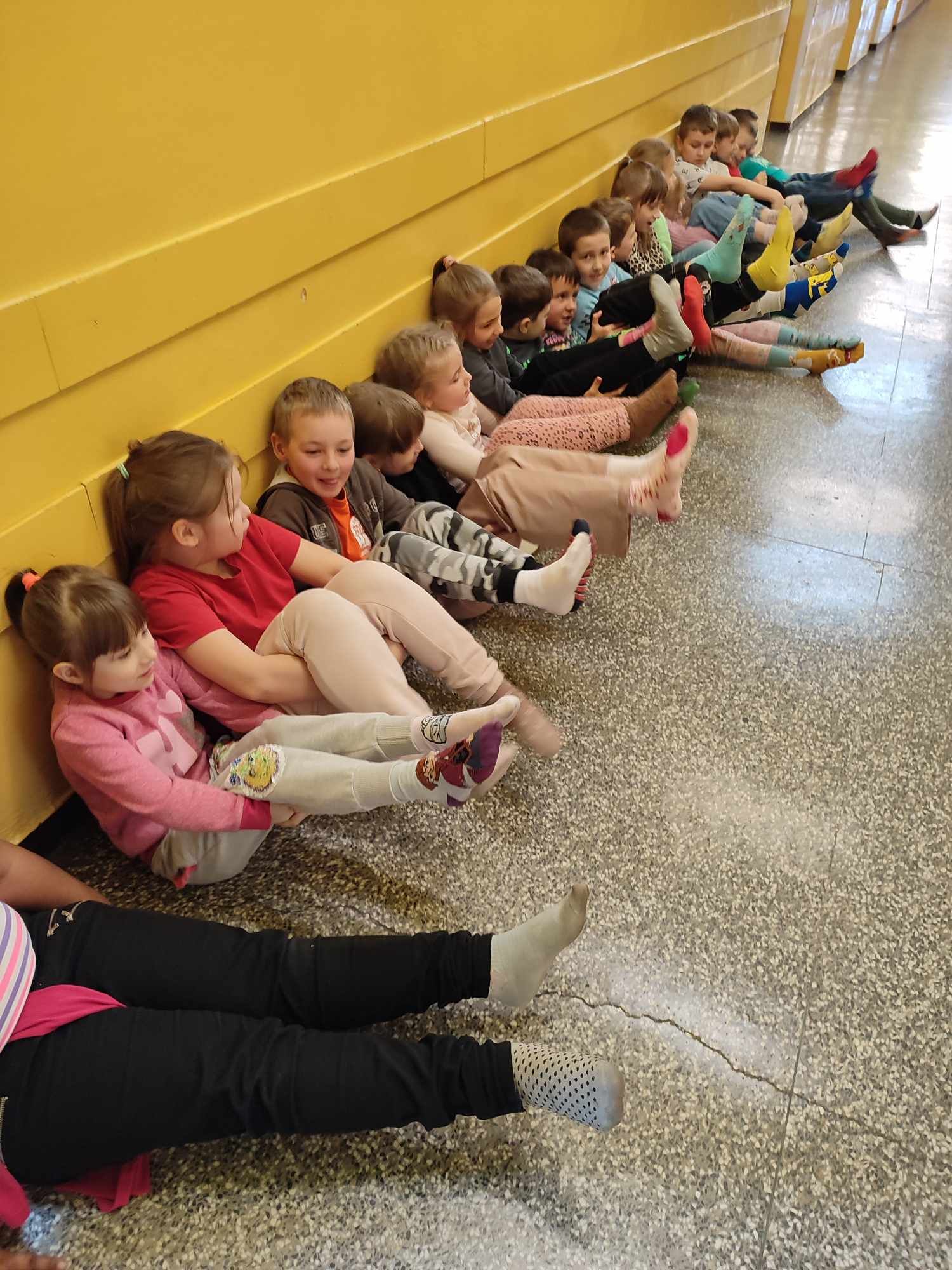 W Dniu Osób z Zespołem Downa uczniowie i pracownicy w geście solidarności założyli kolorowe skarpetki. Na różnych lekcjach ,zajęciach rozmawialiśmy na ten temat. Mogliśmy przyjrzeć się specyficznym cechom Zespołu Downa. Oglądaliśmy prezentacje, gazetki na korytarzach, projektowaliśmy kolorowe skarpetki. Wszystko utrwaliliśmy na zdjęciach
