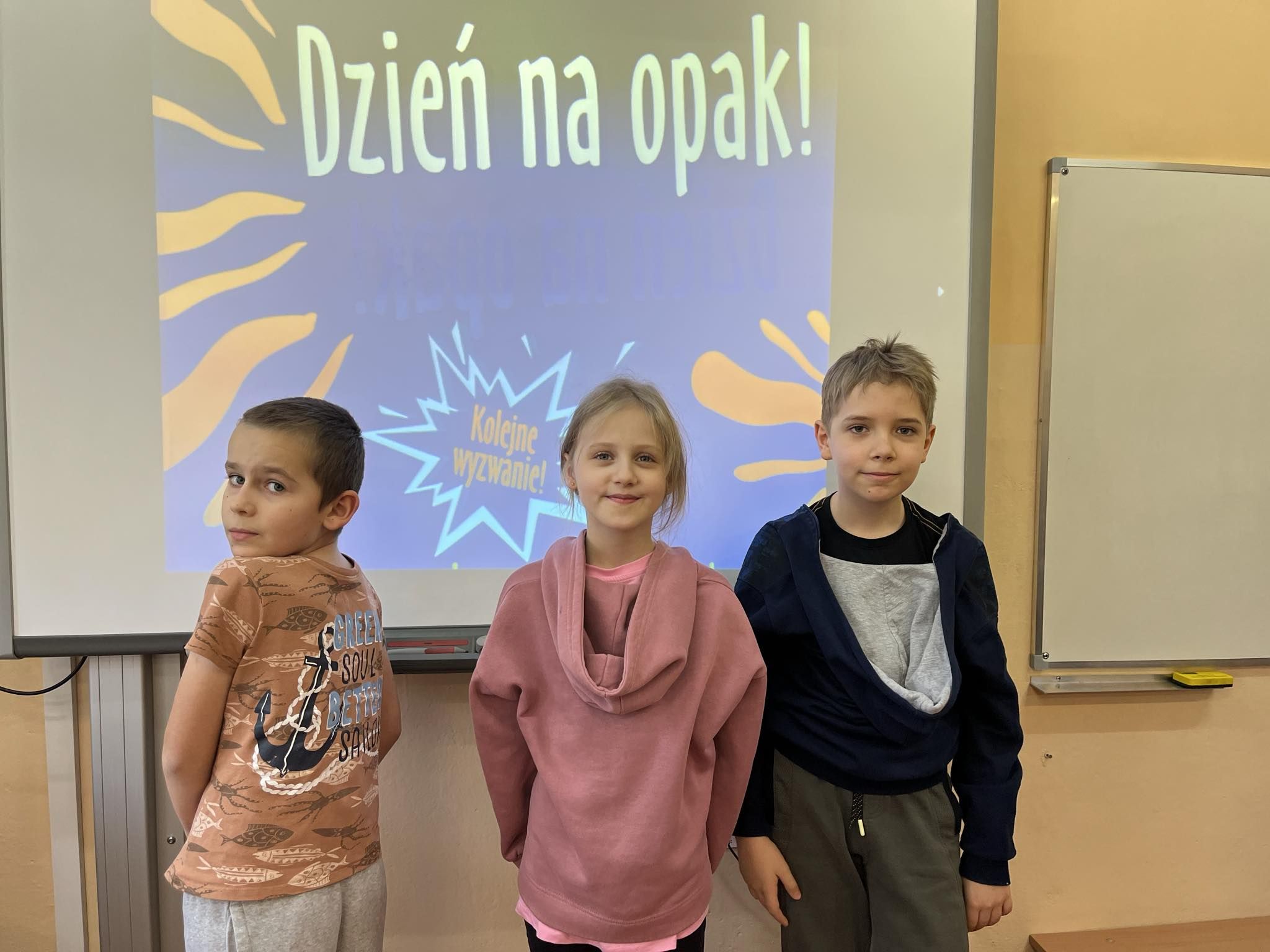 Kolejny dzień wyjątkowego tygodnia w SP 10 za nami , dziś był to Dzień na opak! Uczniowie mieli ubrania założone na lewą stronę albo tyłem do przodu. Było dużo śmiechu i dobrej zabawy!
