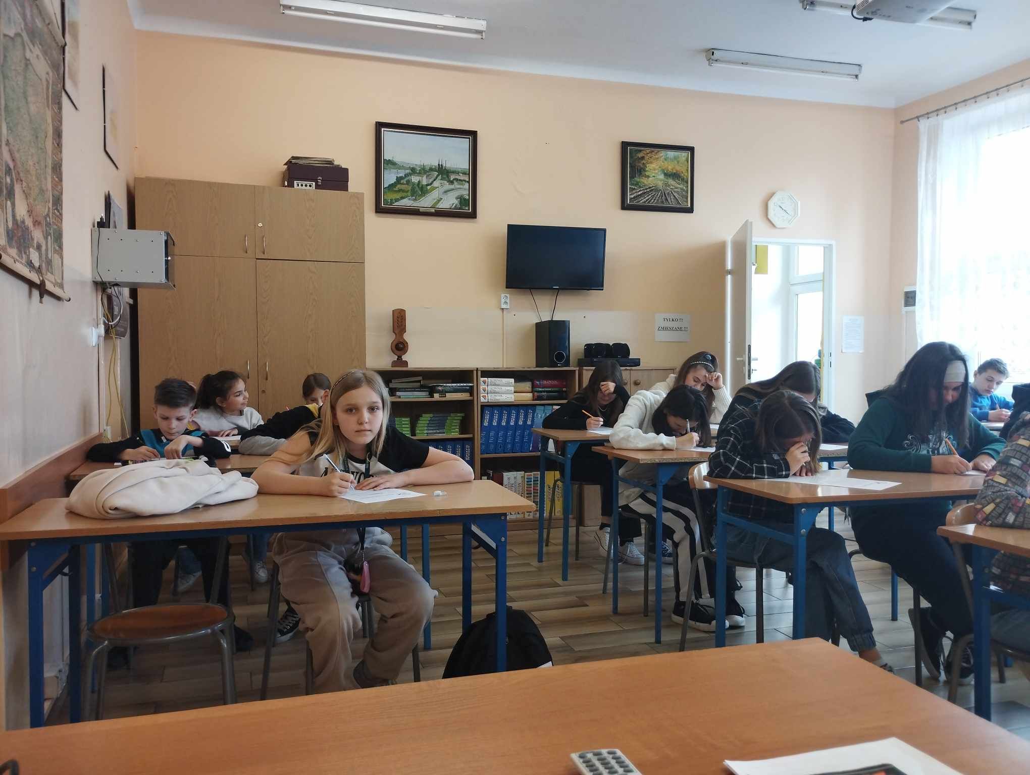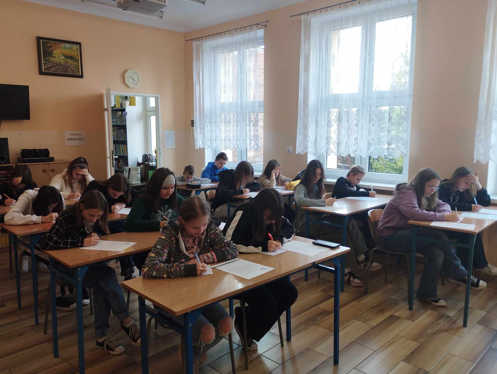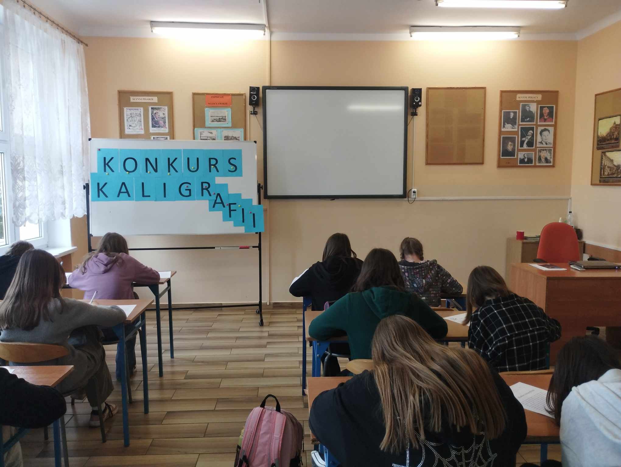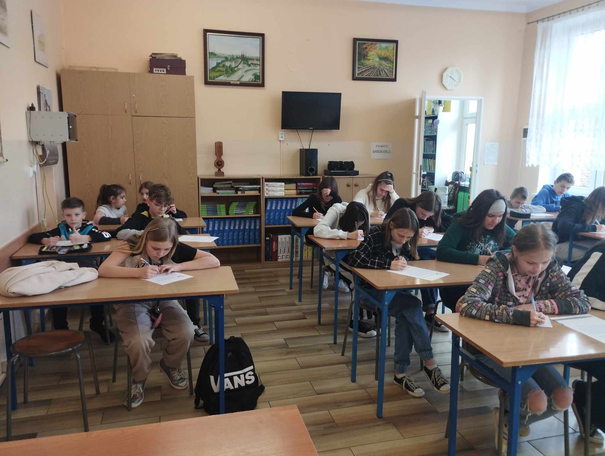 Pracownice biblioteki szkolnej zorganizowały coroczny konkurs kaligraficzny, który odbył się 18 kwietnia br. W konkursie wzięli udział uczniowie z klas od pierwszej do ósmej. Zadaniem najmłodszych dzieci było odwzorowanie liter oraz przepisanie kilku zdań tekstu ciągłego. Starsi uczniowie otrzymali do starannego przepisania dłuższe fragmenty lektur, adekwatne do wieku, tj.: