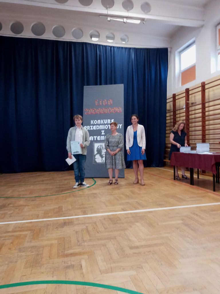 Warto wspomnieć, że w ubiegłym roku uczeń klasy 7a Jakub Łukaszewski, pod opieką p. Jolanty Sikorskiej zdobył w tym konkursie, w kategorii klas siódmych, II miejsce, zakwalifikował się do etapu wojewódzkiego i osiągnął tytuł laureata uprawniający go do zwolnienia z egzaminu ósmoklasisty z matematyki. Natomiast w bieżącym roku szkolnym Jakub zakwalifikował się do etapu wojewódzkiego Konkursu Przedmiotowego KO z Matematyki i uzyskał tytuł finalisty. Gratulujemy wszystkim uczniom i życzymy dalszych sukcesów, zwłaszcza Jakubowi w nowej szkole.