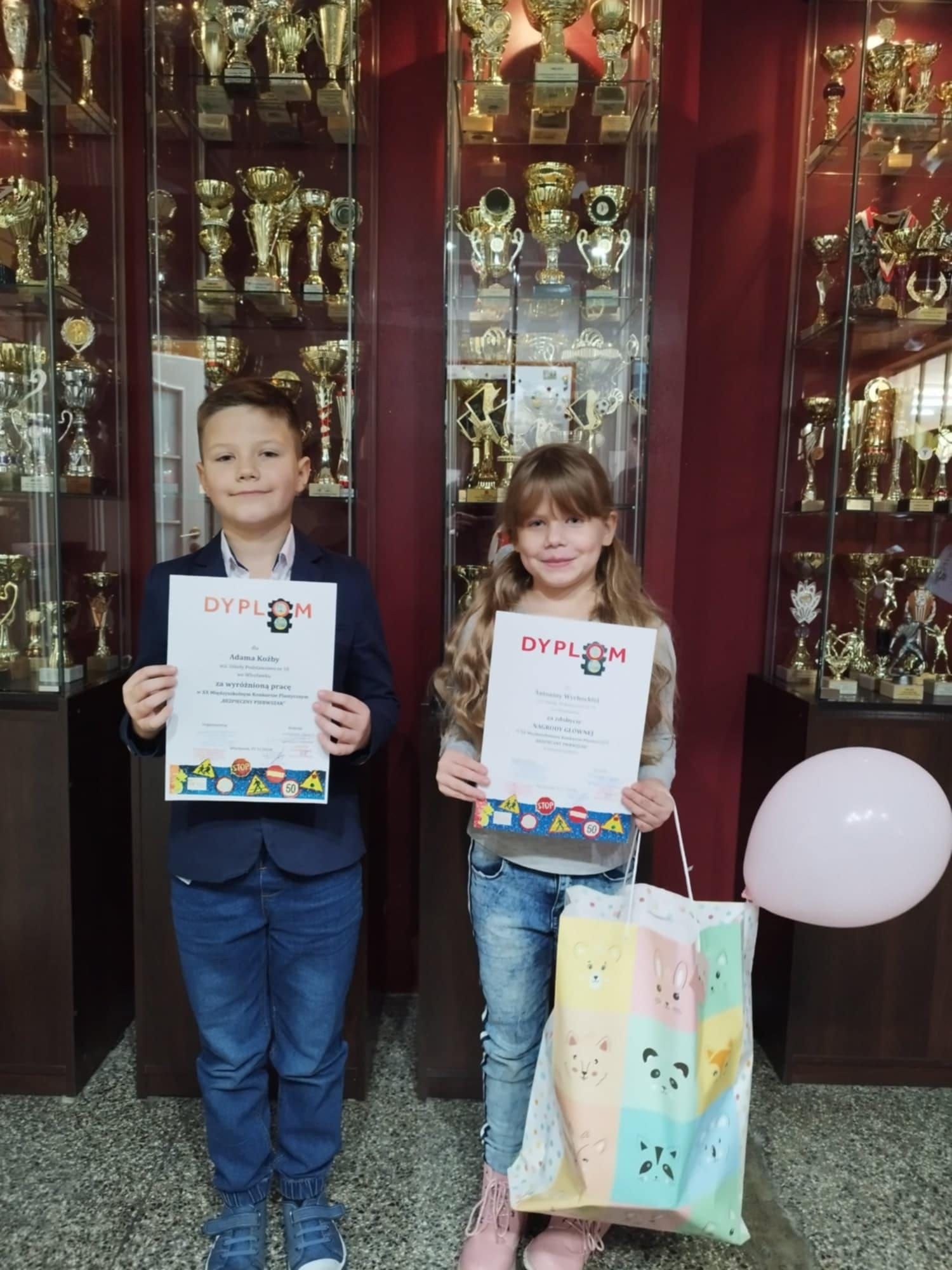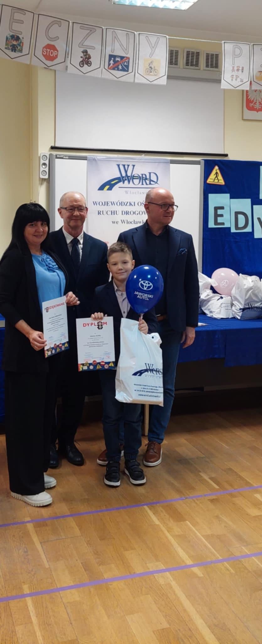 Międzyszkolnego Konkursu Plastycznego "Bezpieczny Pierwszak" oraz rozdanie nagród i wyróżnień odbyło się w Wojewódzkim Ośrodku Ruchu Drogowego we Włocławku. ANTONINA WYCHOCKA z klasy 1a zdobyła NAGRODĘ GŁÓWNĄ w kategorii makieta. WYRÓŻNIENIE za wykonaną pracę otrzymał ADAM KOŹBA z klasy 1b. Wychowawczynie Klaudia Politowska i Beata Sułkowska otrzymały Podziękowanie za przygotowanie uczniów do konkursu. Gratulujemy uczniom!