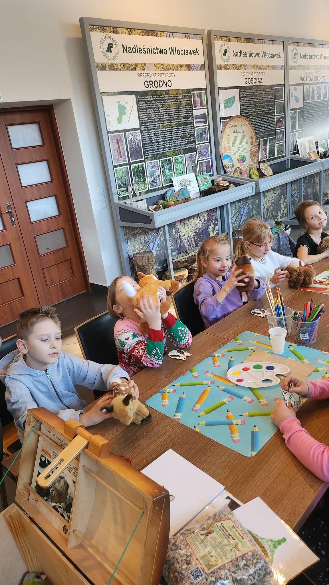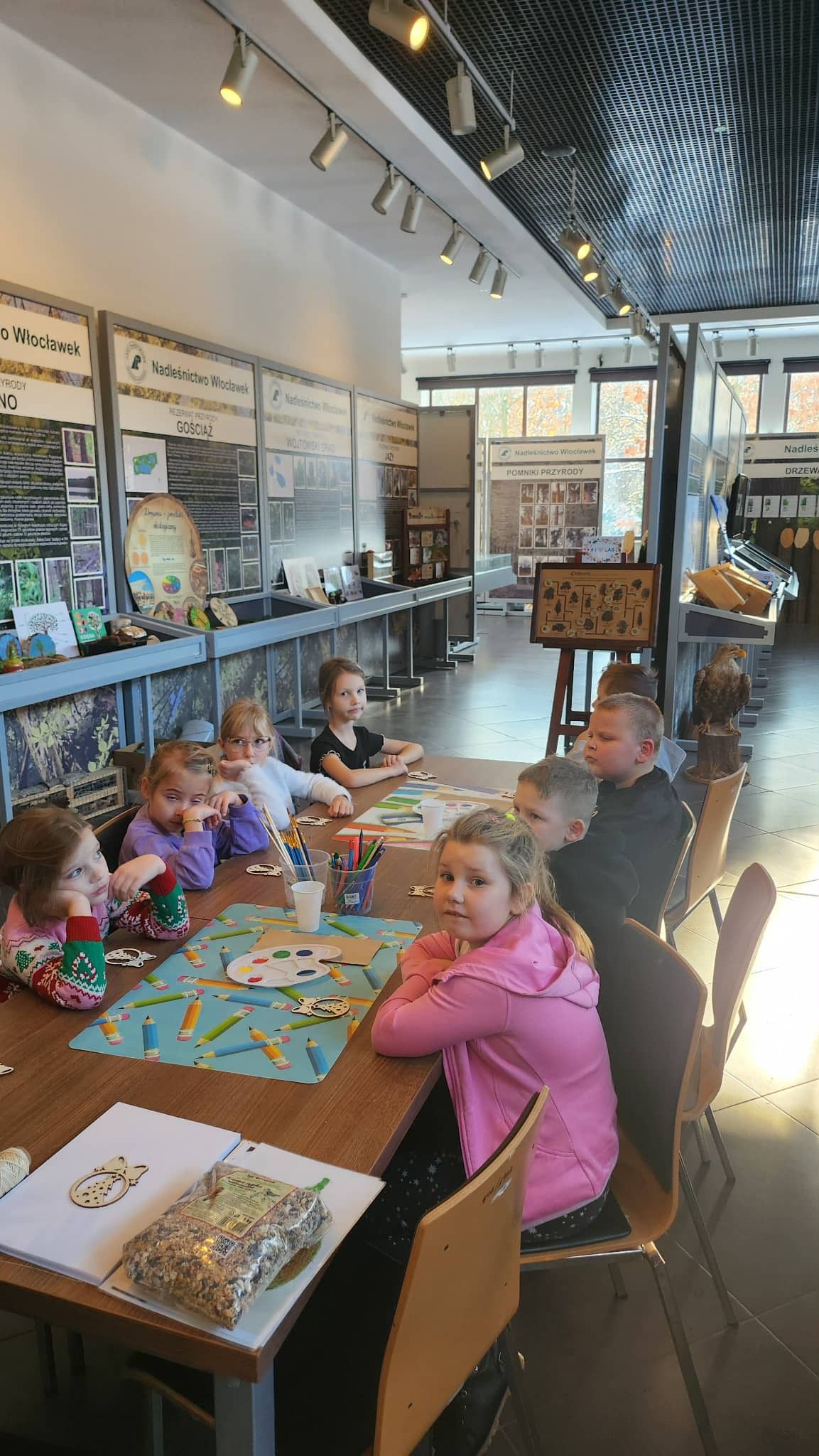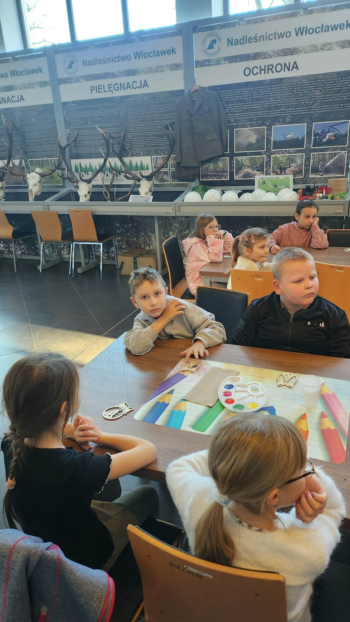 "Dnia 27.11.2025r klasa 1b wybrała się na wycieczkę do Nadleśnictwa Włocławek. Dzieci wysłuchały ciekawej lekcji na temat " Jak przetrwać zimę- dokarmianie ptaków". Oprócz tego, dzieci wykonały ozdoby choinkowe, które zawisną na drzewku w Nadleśnictwie."