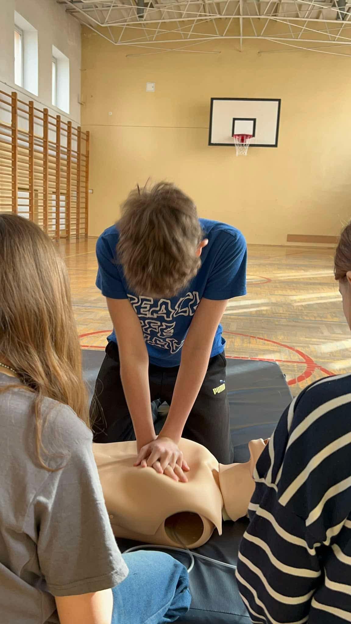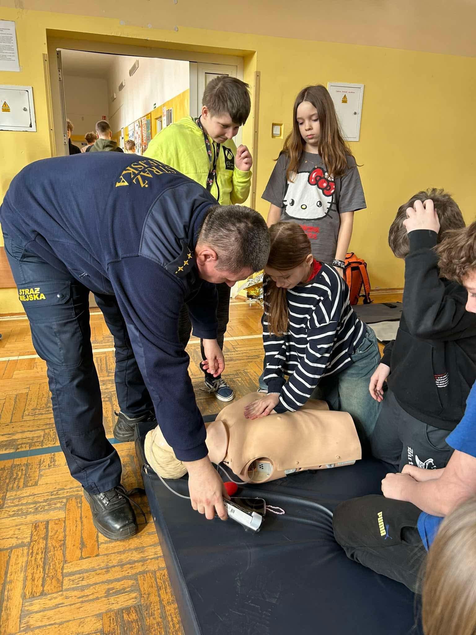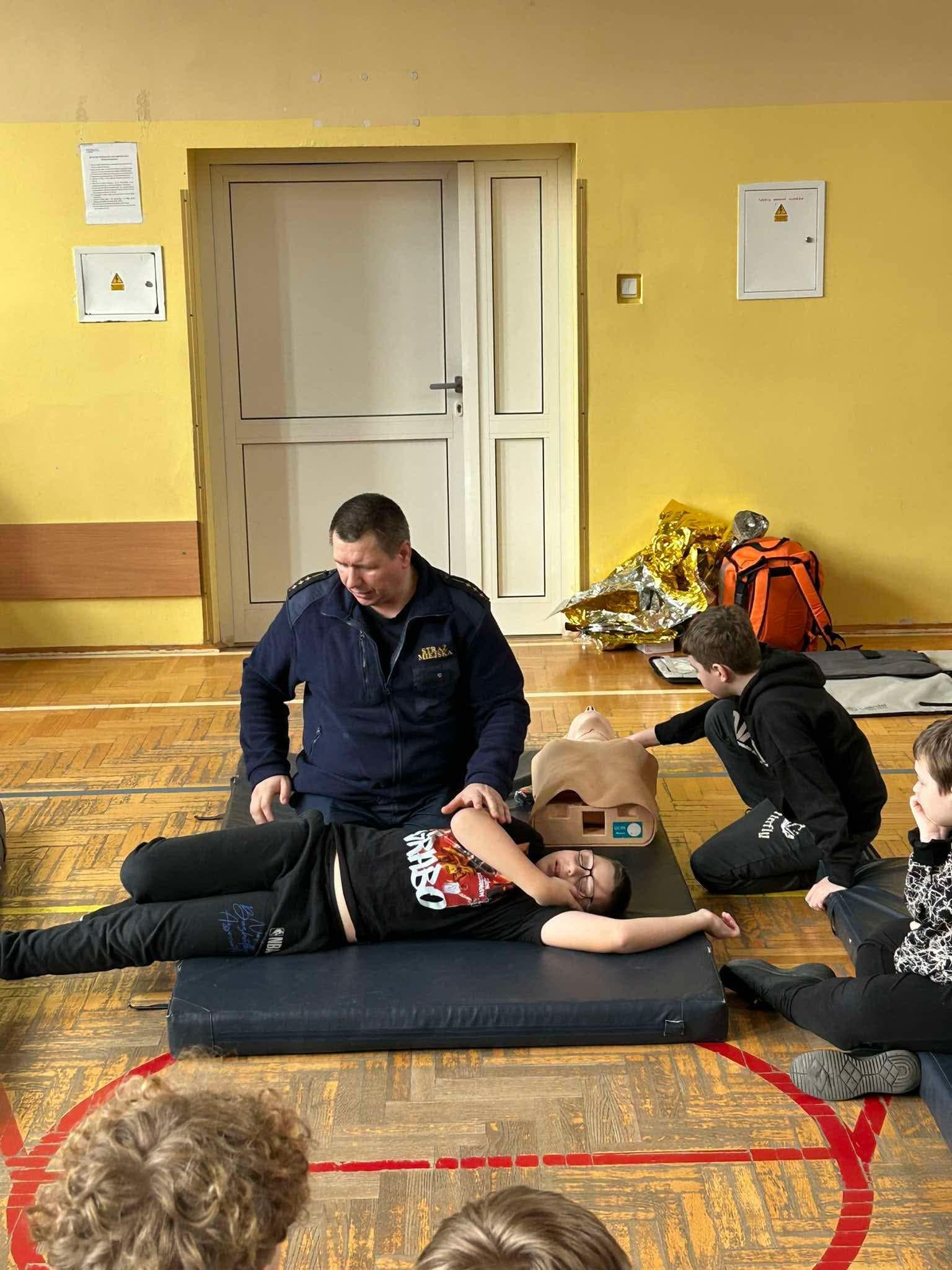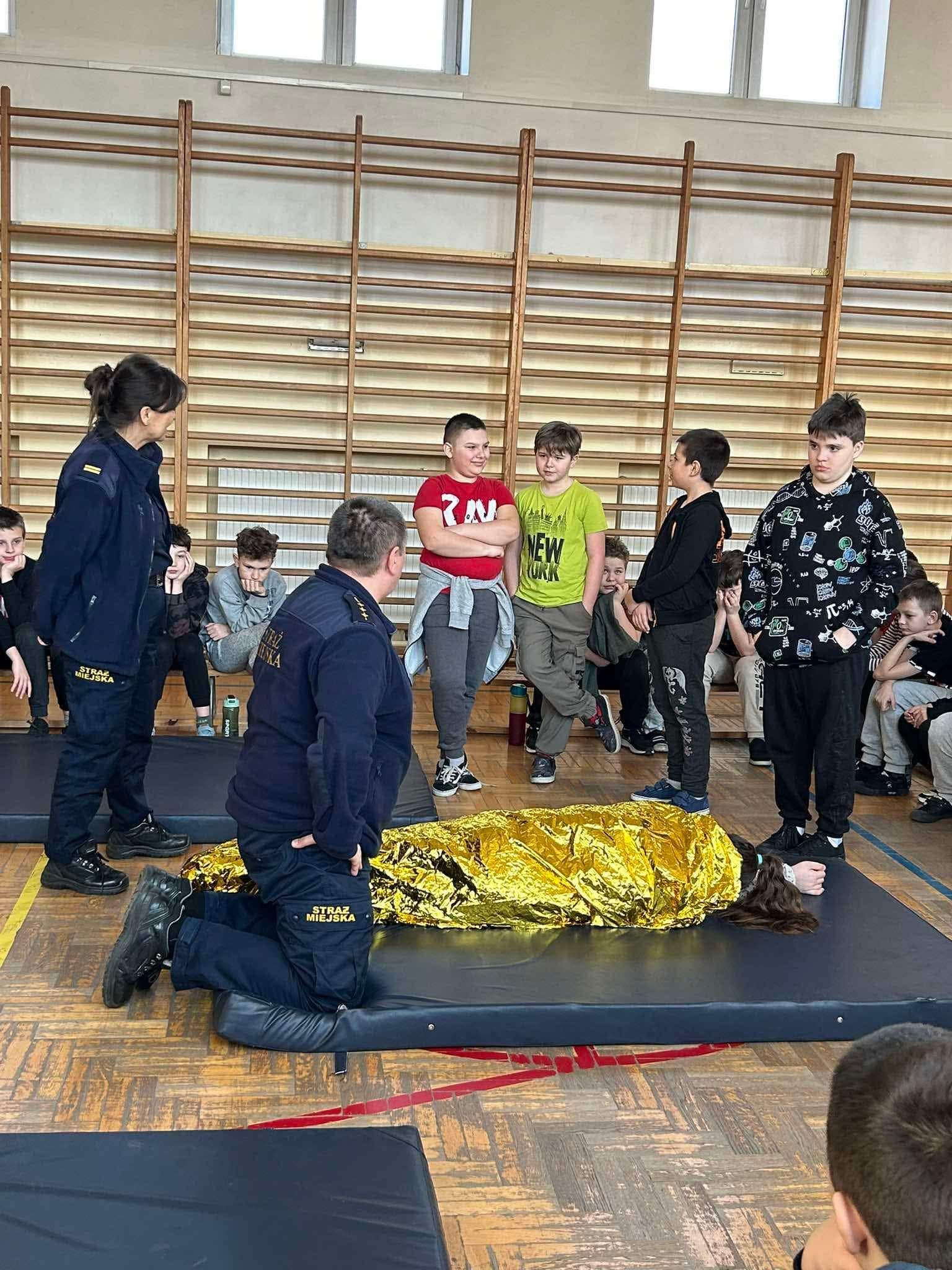 PIERWSZA. POMOC PRZEDMEDYCZNA-ciąg dalszy Kolejne klasy uczestniczyły w praktycznych zajęciach prowadzonych przez funkcjonariuszy Straży Miejskiej-p.Elzbiete Rybacką i p.Krzysztofa Urbańskiego,jednocześnie ratownika medycznego. Chętni uczniowie mieli możliwość osobiście przećwiczyć masaż serca,bezpieczną pozycję czy zadbanie o ogrzanie pokrzywdzonego. Miejmy nadzieję, że te umiejętności pozostaną z naszymi uczniami,choć wolelibyśmy,by nie musiały być wykorzystane.