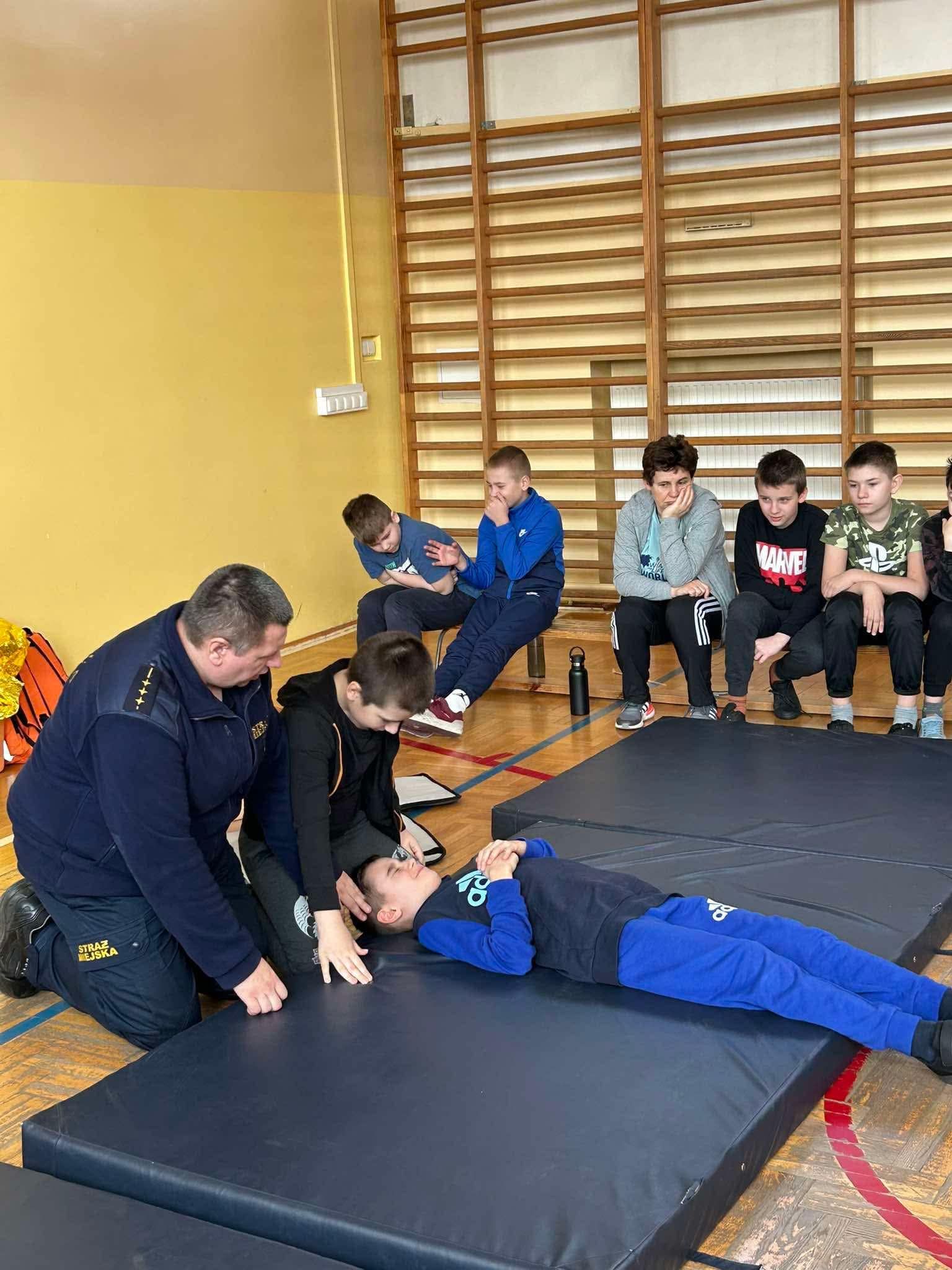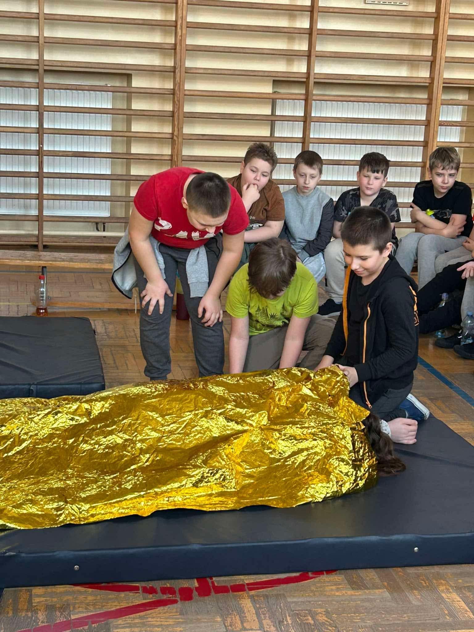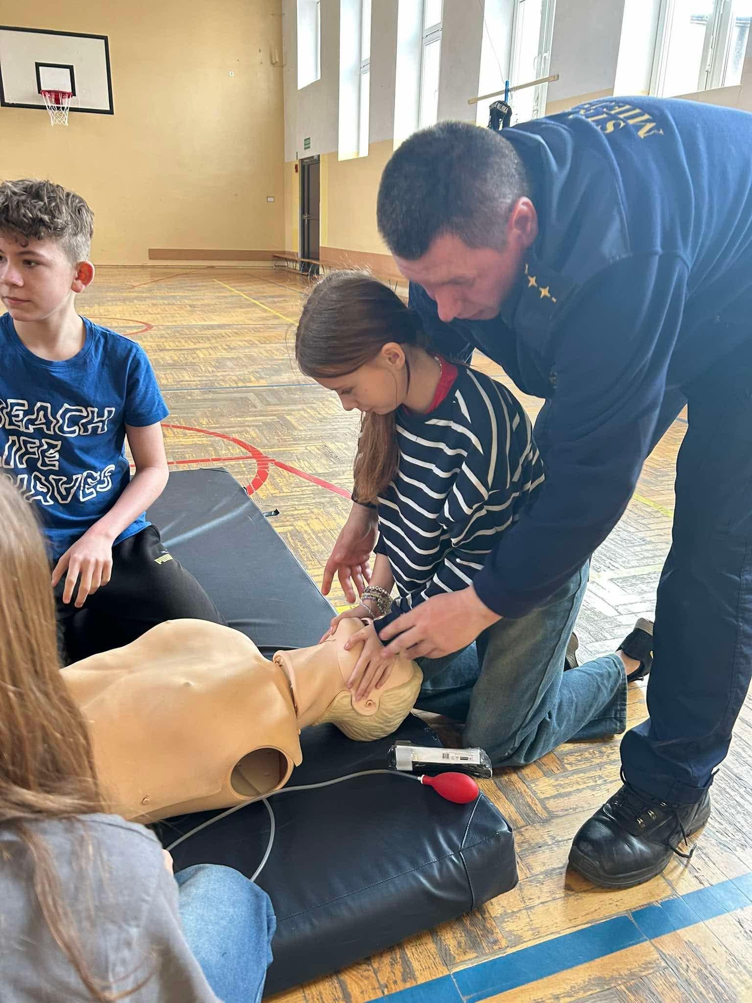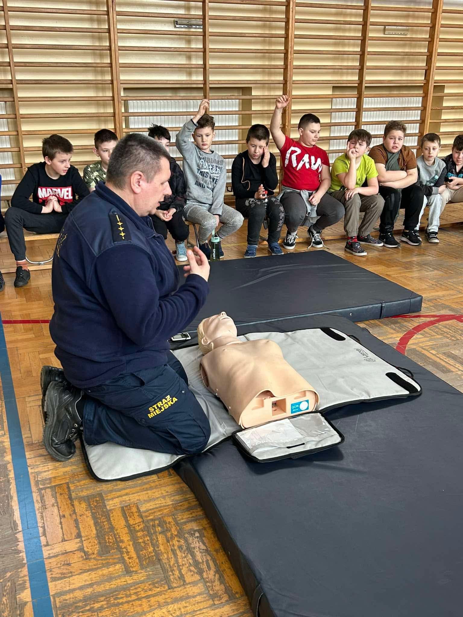 PIERWSZA. POMOC PRZEDMEDYCZNA-ciąg dalszy Kolejne klasy uczestniczyły w praktycznych zajęciach prowadzonych przez funkcjonariuszy Straży Miejskiej-p.Elzbiete Rybacką i p.Krzysztofa Urbańskiego,jednocześnie ratownika medycznego. Chętni uczniowie mieli możliwość osobiście przećwiczyć masaż serca,bezpieczną pozycję czy zadbanie o ogrzanie pokrzywdzonego. Miejmy nadzieję, że te umiejętności pozostaną z naszymi uczniami,choć wolelibyśmy,by nie musiały być wykorzystane.