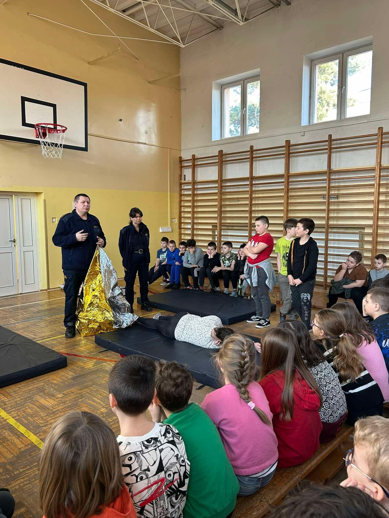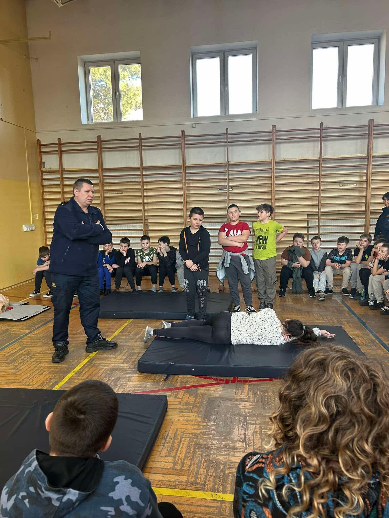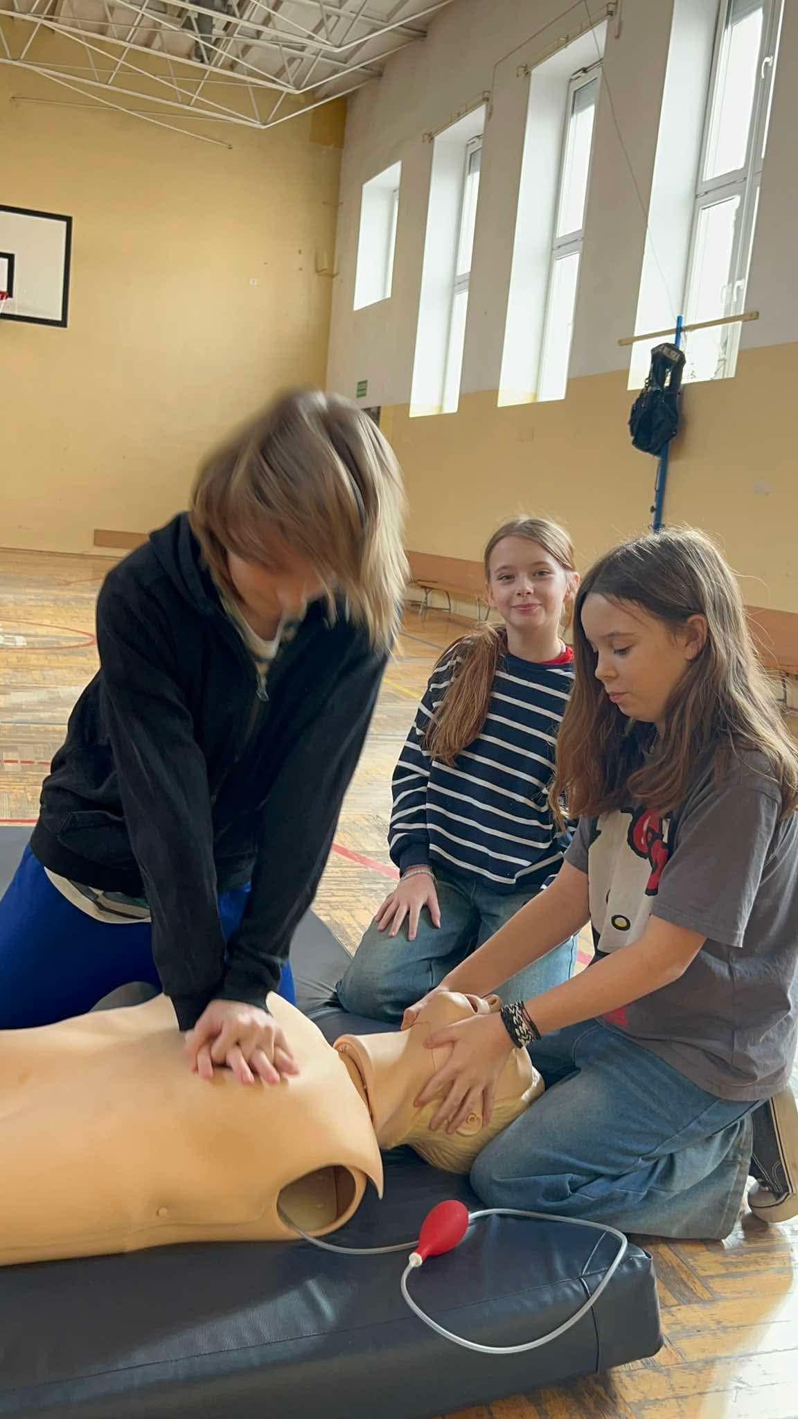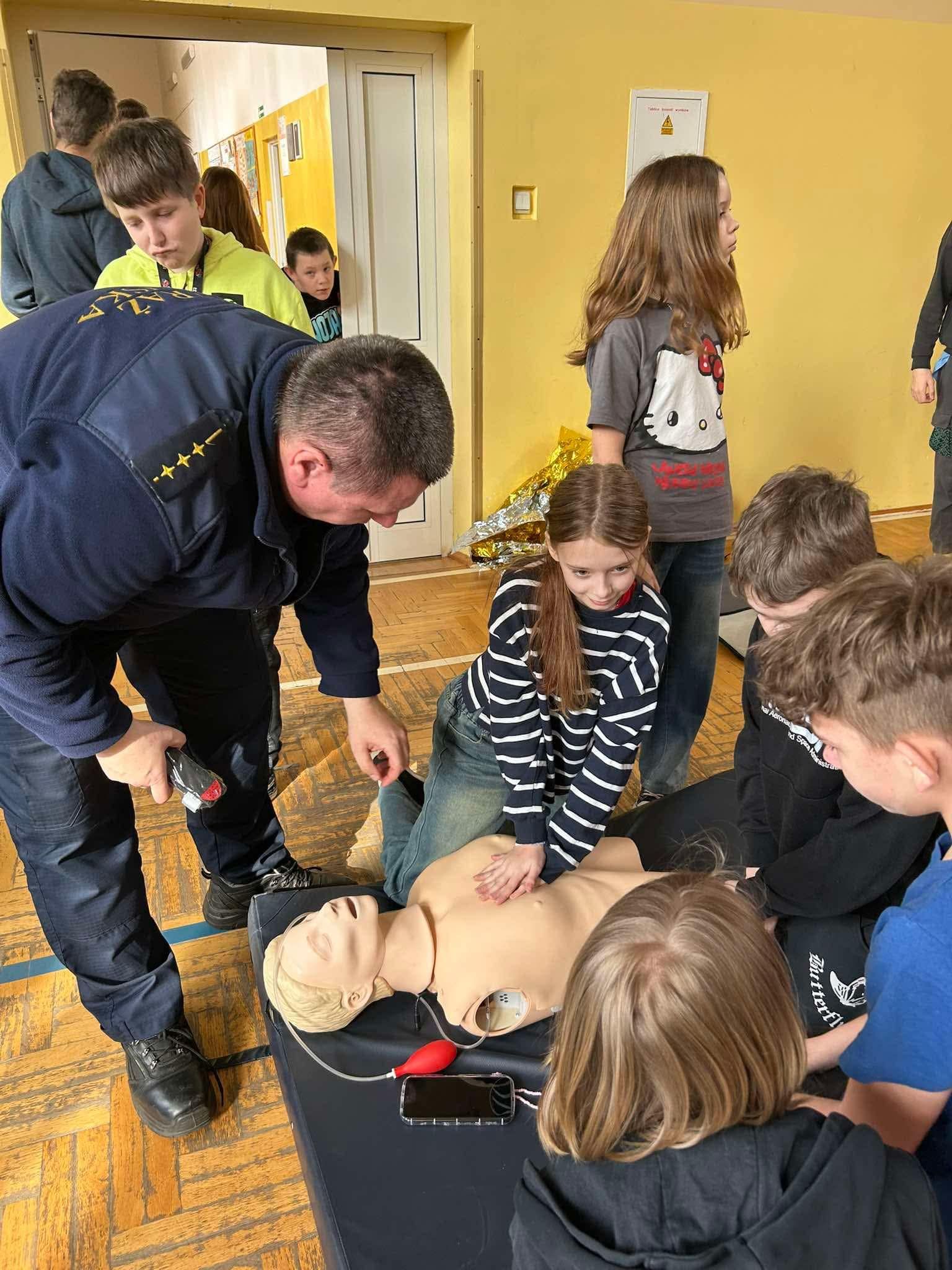 PIERWSZA. POMOC PRZEDMEDYCZNA-ciąg dalszy Kolejne klasy uczestniczyły w praktycznych zajęciach prowadzonych przez funkcjonariuszy Straży Miejskiej-p.Elzbiete Rybacką i p.Krzysztofa Urbańskiego,jednocześnie ratownika medycznego. Chętni uczniowie mieli możliwość osobiście przećwiczyć masaż serca,bezpieczną pozycję czy zadbanie o ogrzanie pokrzywdzonego. Miejmy nadzieję, że te umiejętności pozostaną z naszymi uczniami,choć wolelibyśmy,by nie musiały być wykorzystane.