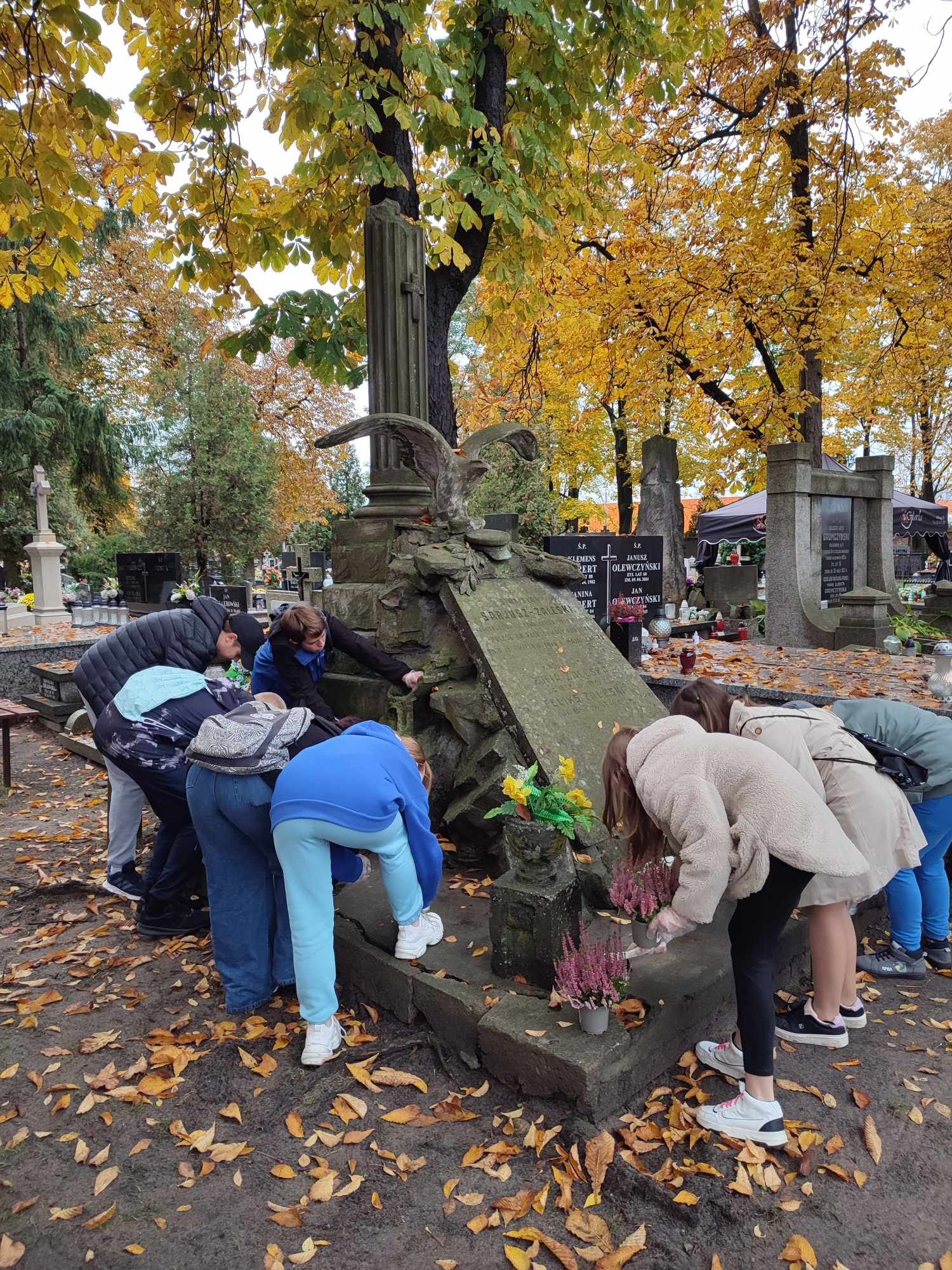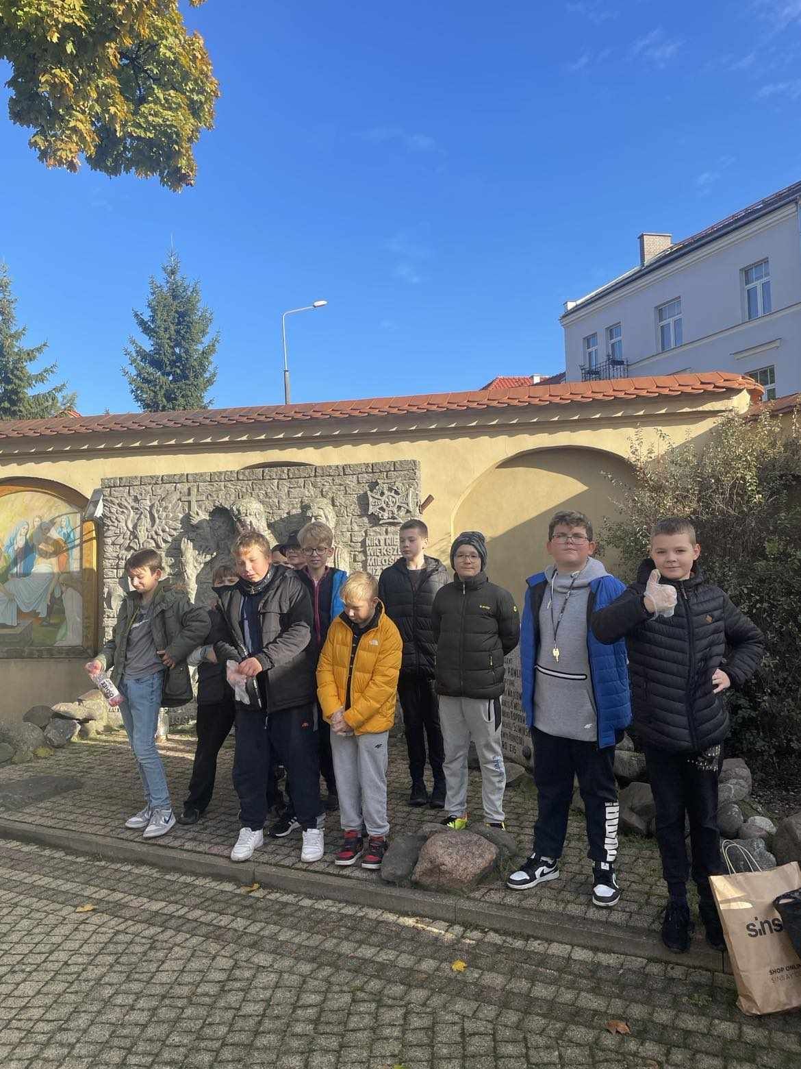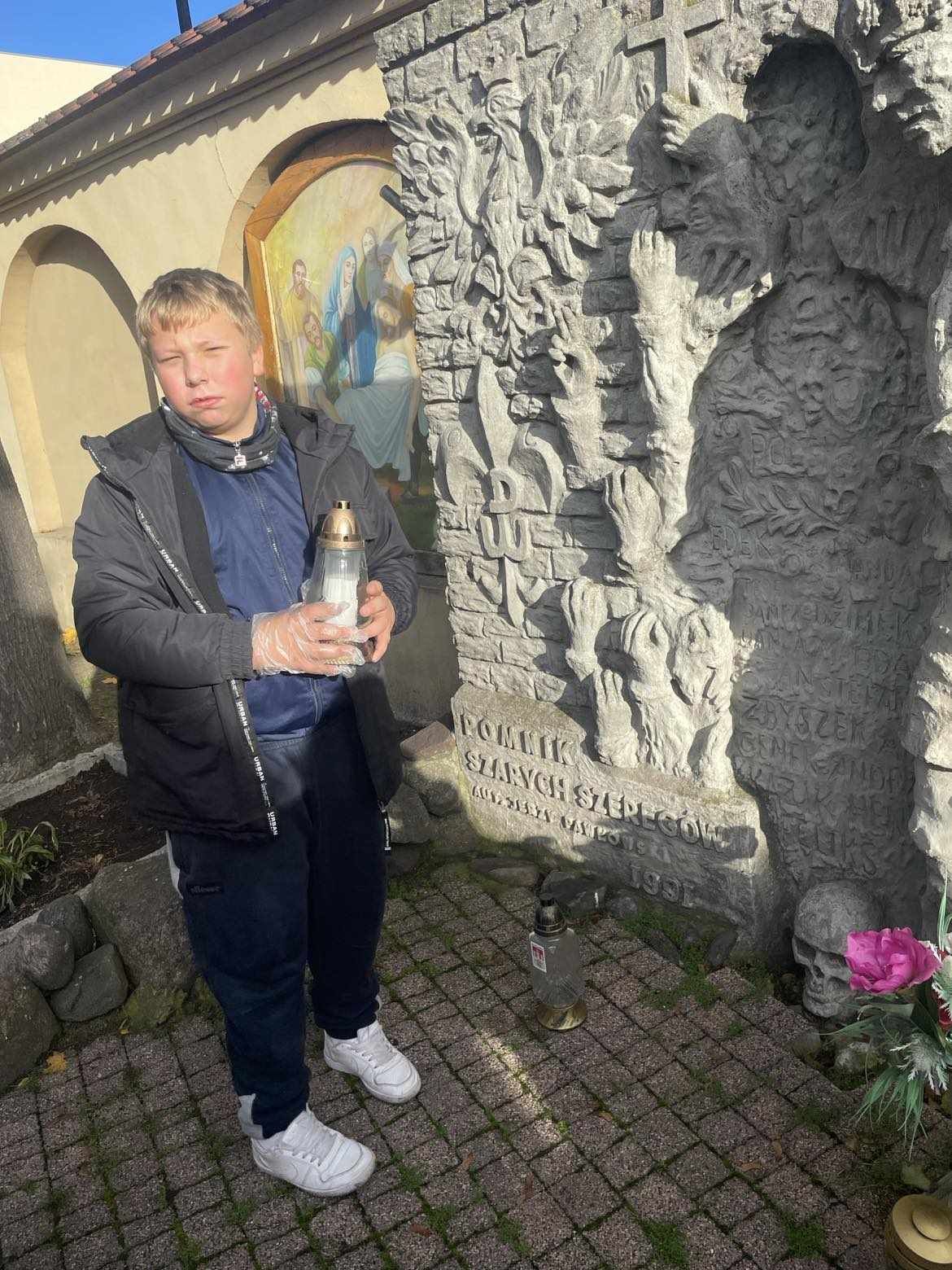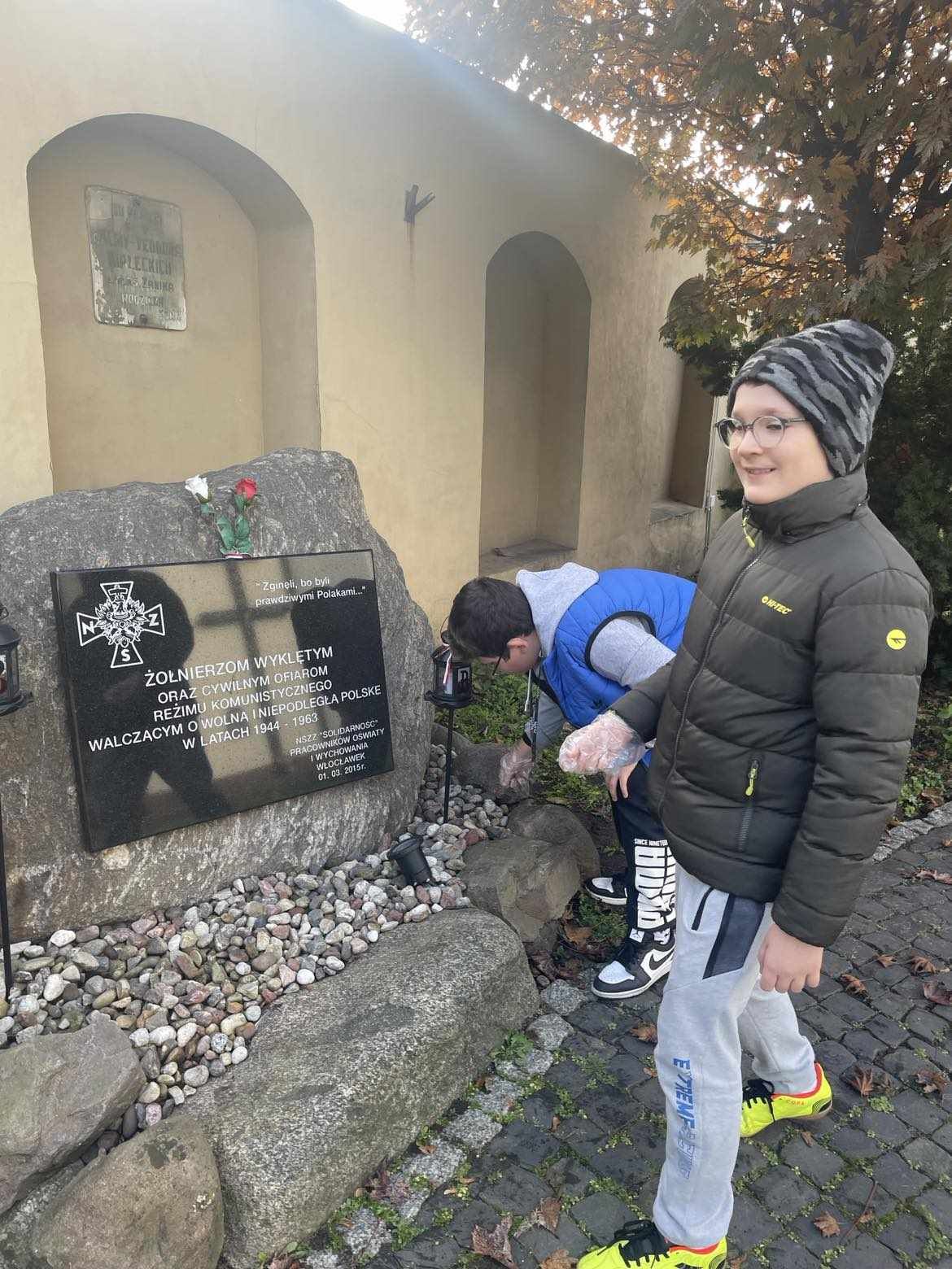 Uczniowie klasy 7b i 5b wybrali się na cmentarz komunalny, uporządkowali i zapalili znicze w miejscu spoczynku Stanisława – Sariusza – Zaleskiego.