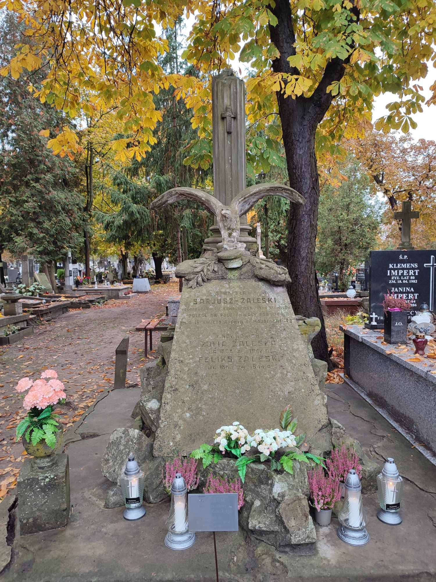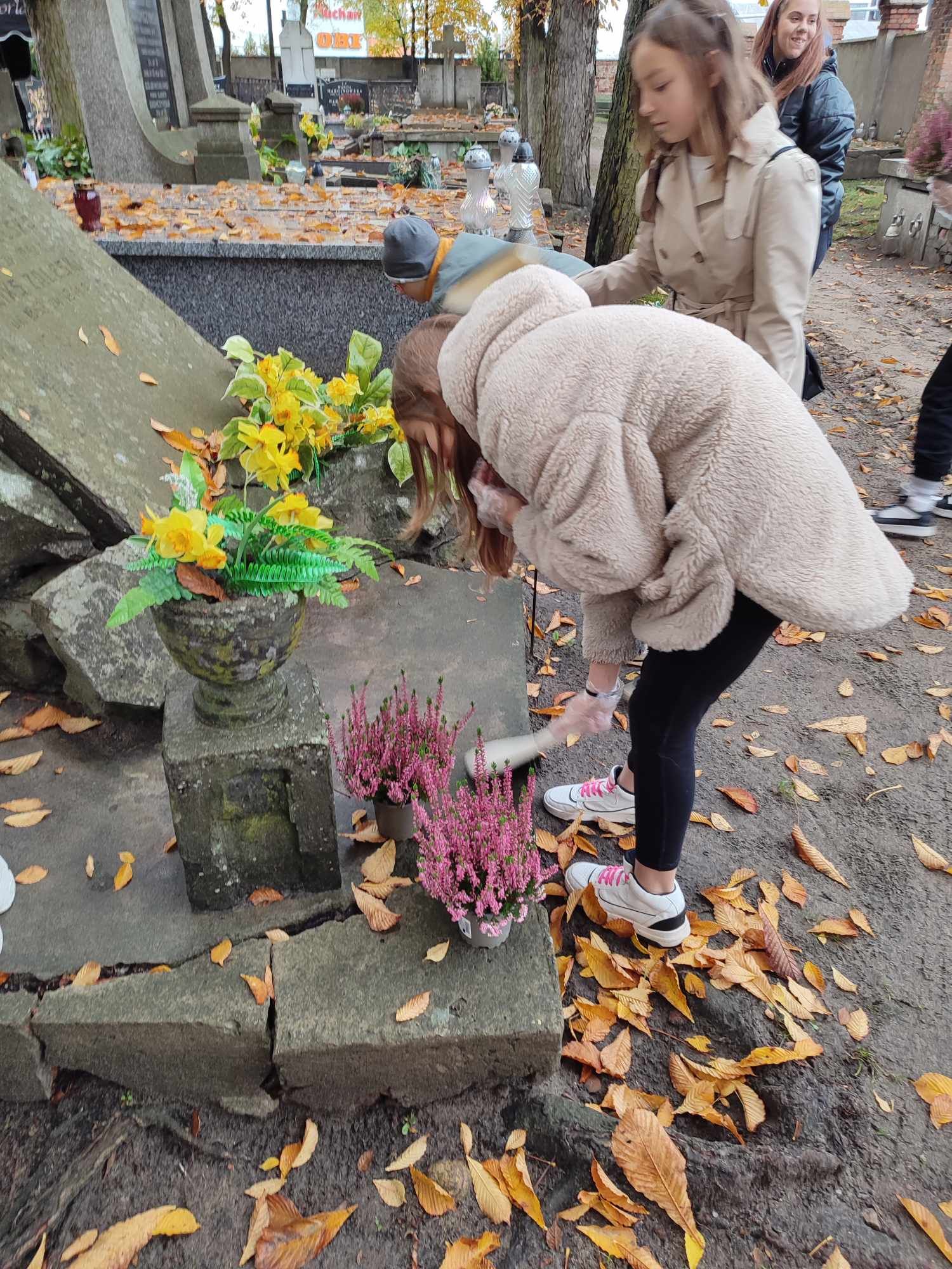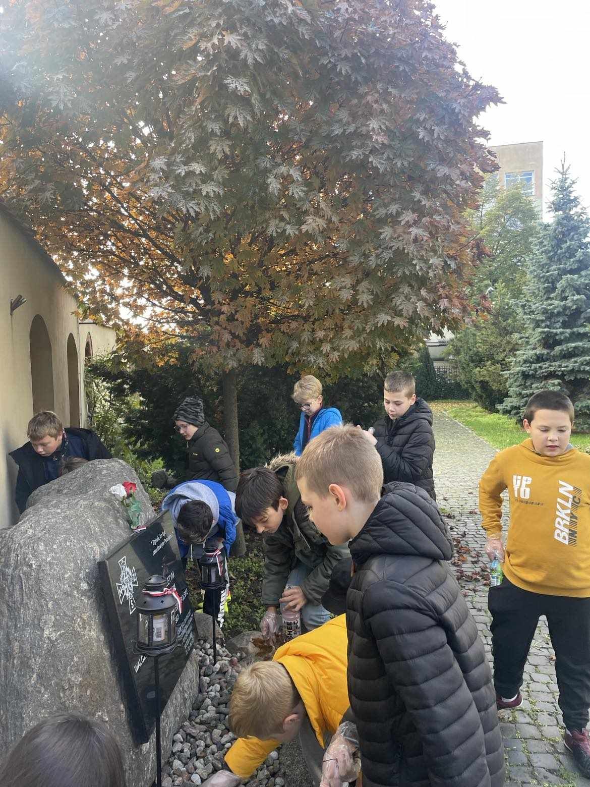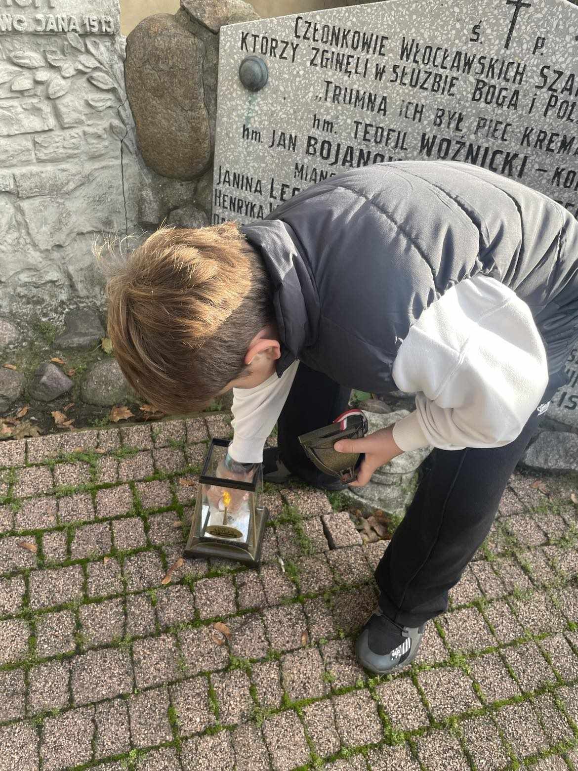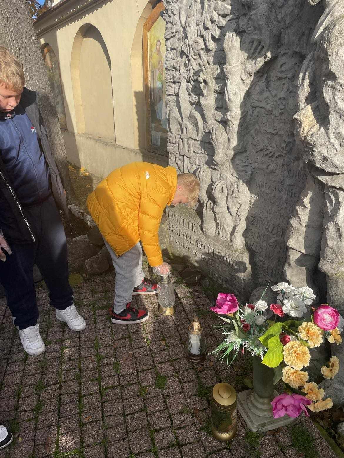 Uczniowie klasy 7b i 5b wybrali się na cmentarz komunalny, uporządkowali i zapalili znicze w miejscu spoczynku Stanisława – Sariusza – Zaleskiego.