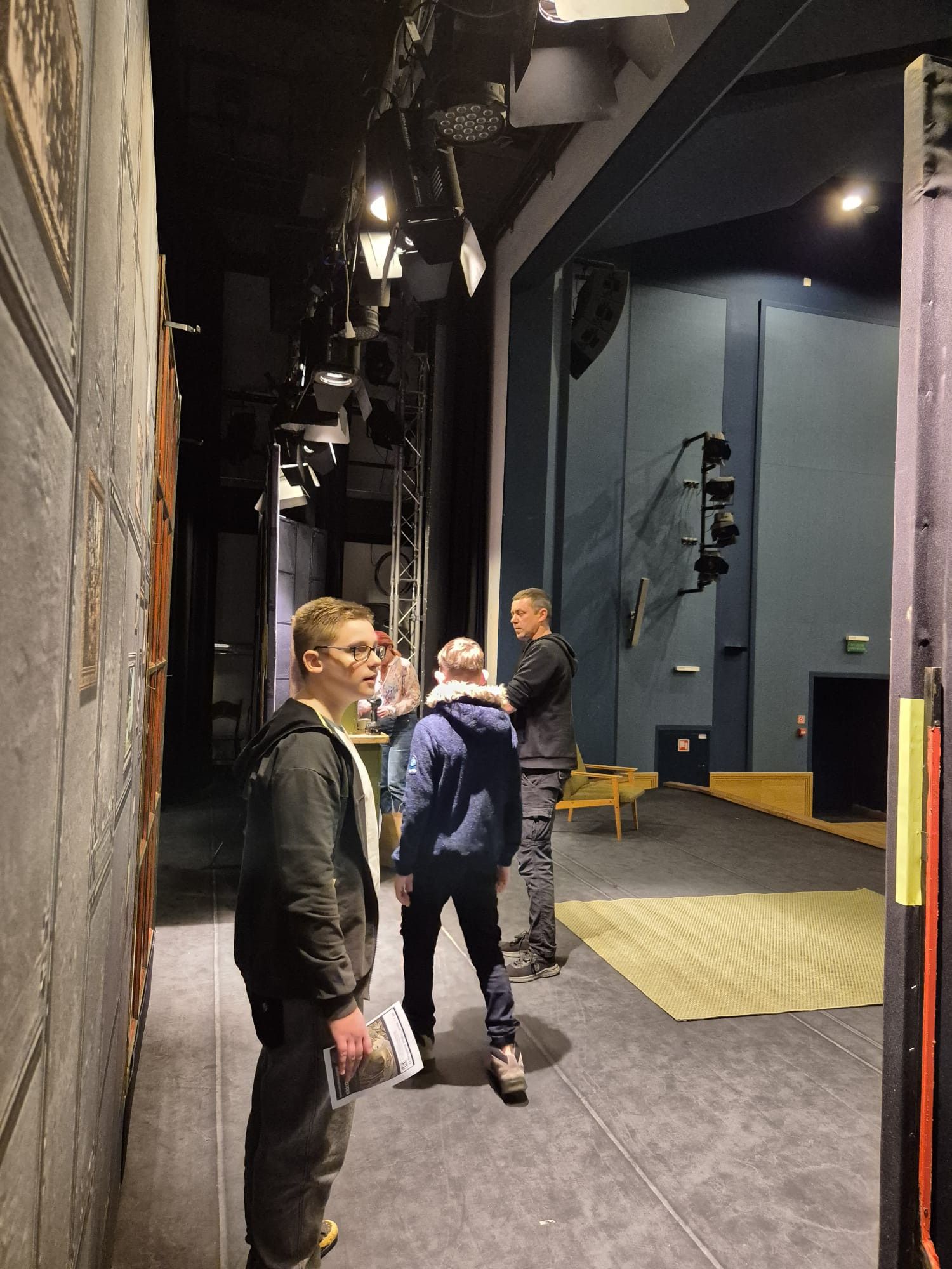 Jednym z najbardziej ekscytujących momentów było wejście na scenę od kulis. Uczniowie przekonali się, jak wygląda scena z perspektywy aktora, poznali system kulis i technicznych przejść, które umożliwiają płynność spektaklu.