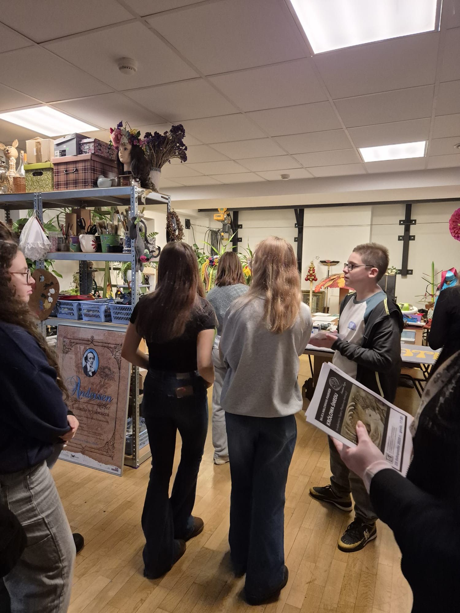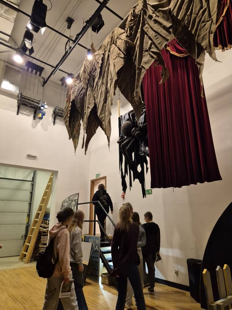 Dużą atrakcją okazała się rekwizytornia – miejsce pełne niezwykłych przedmiotów wykorzystywanych w spektaklach. Uczniowie mogli zobaczyć, jak przechowuje się rekwizyty oraz jak ważną rolę odgrywają w budowaniu iluzji scenicznej.
