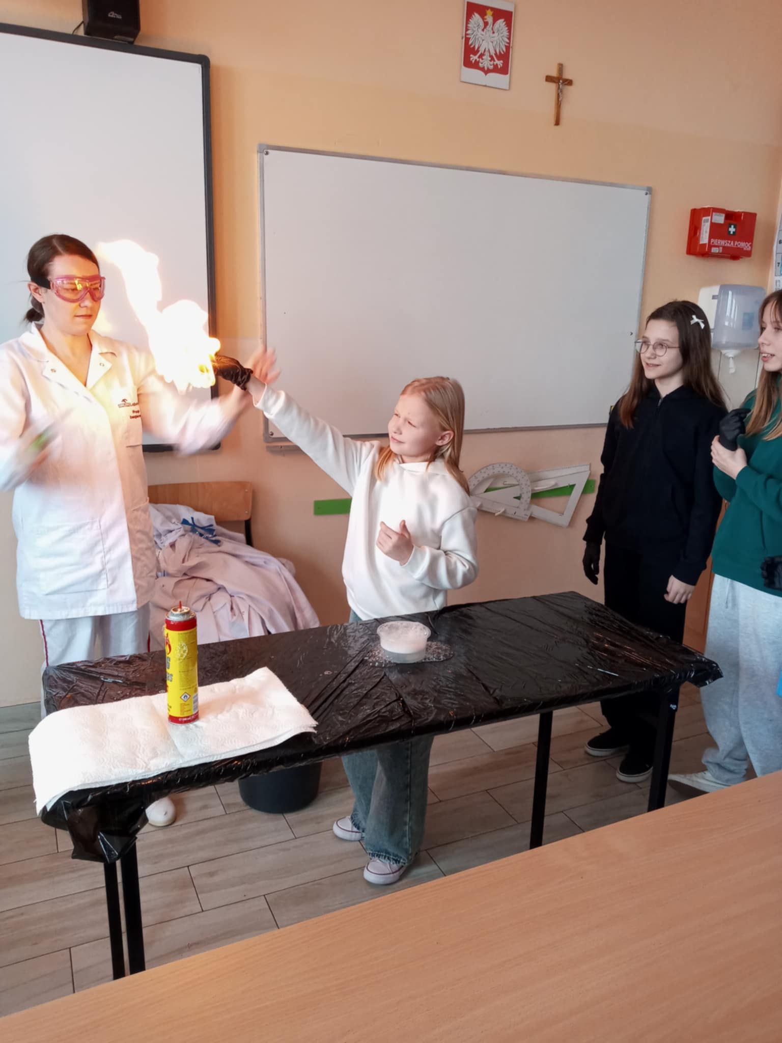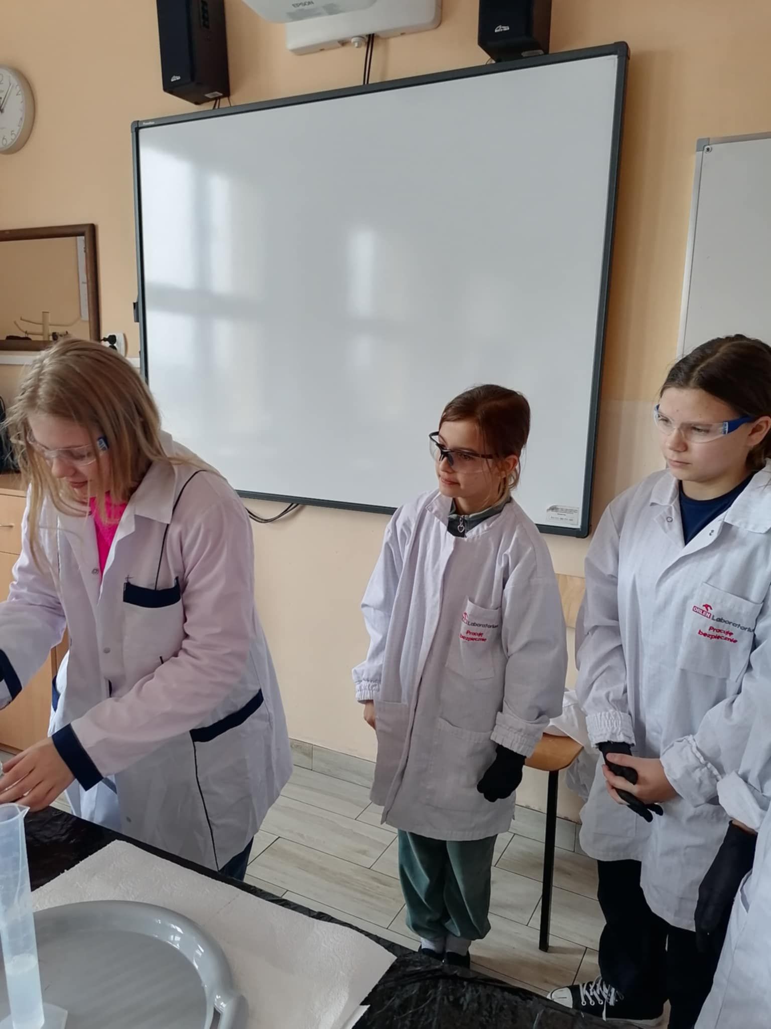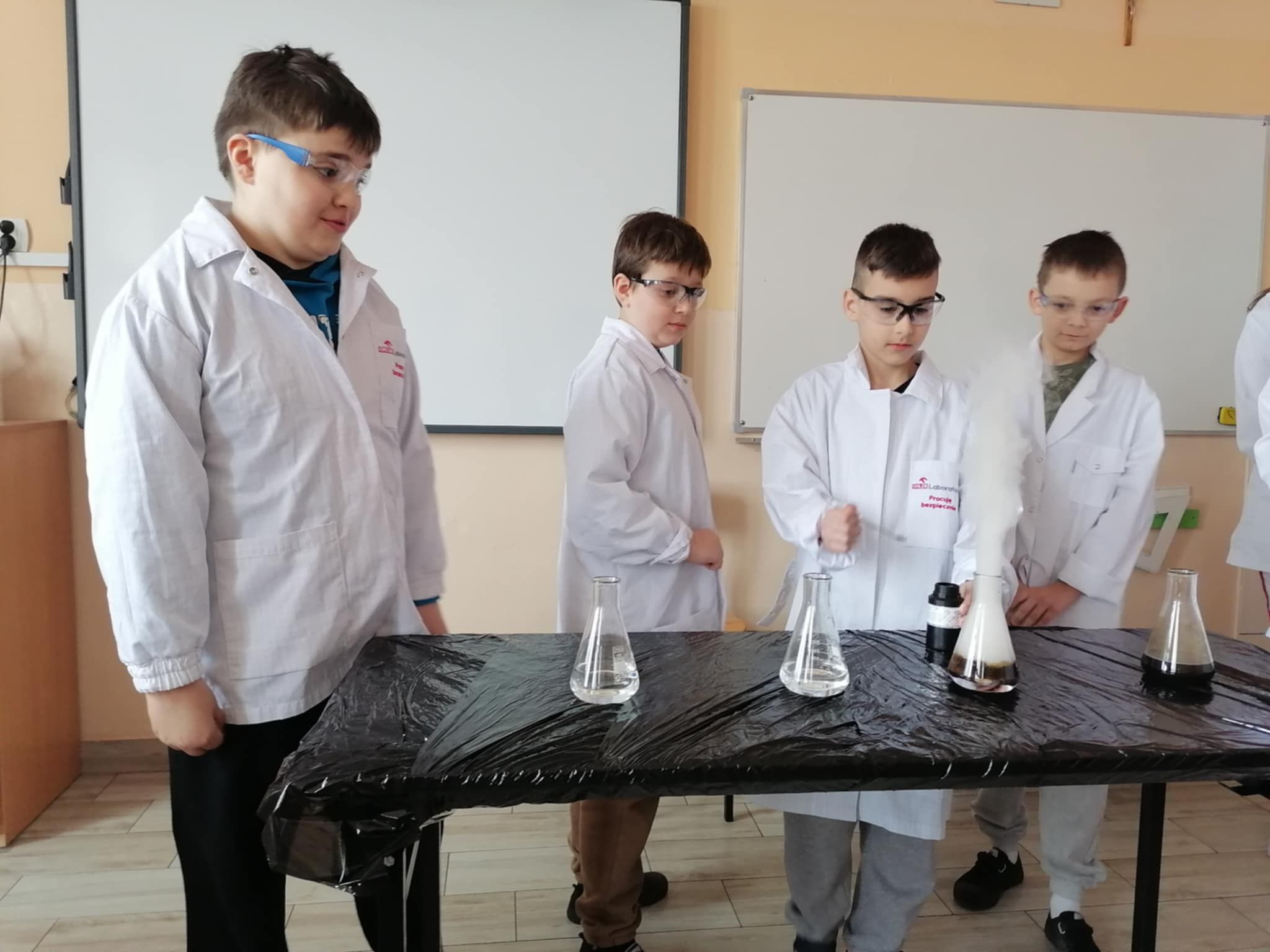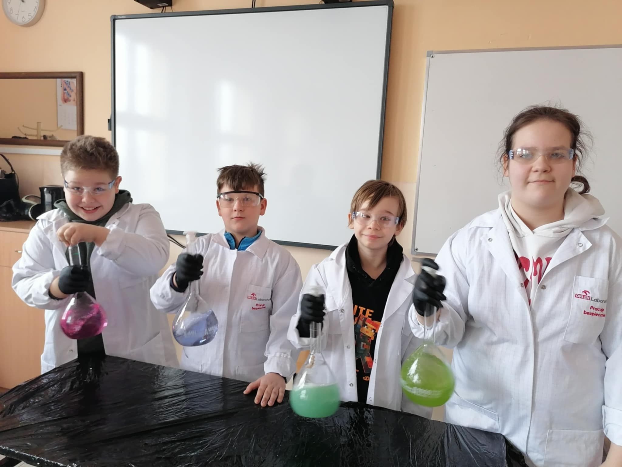 Dnia 25 lutego 2025 r. cztery klasy z naszej szkoły (II a i b oraz IV a i b) miały przyjemność uczestniczenia w warsztatach chemicznych. Pokazy przeprowadziły trzy Panie z Orlen Laboratorium we Włocławku w ramach programu „Orlen Pasja”. Były doświadczenia, dymy, kolorowe płyny, a przede wszystkim „płonące dłonie”. Wszyscy uczniowie doskonale się bawili. Żegnając się zaprosili Panie na kolejne spotkanie. Mamy nadzieję, że zaproszenie zostanie przyjęte. Czekamy z niecierpliwością.