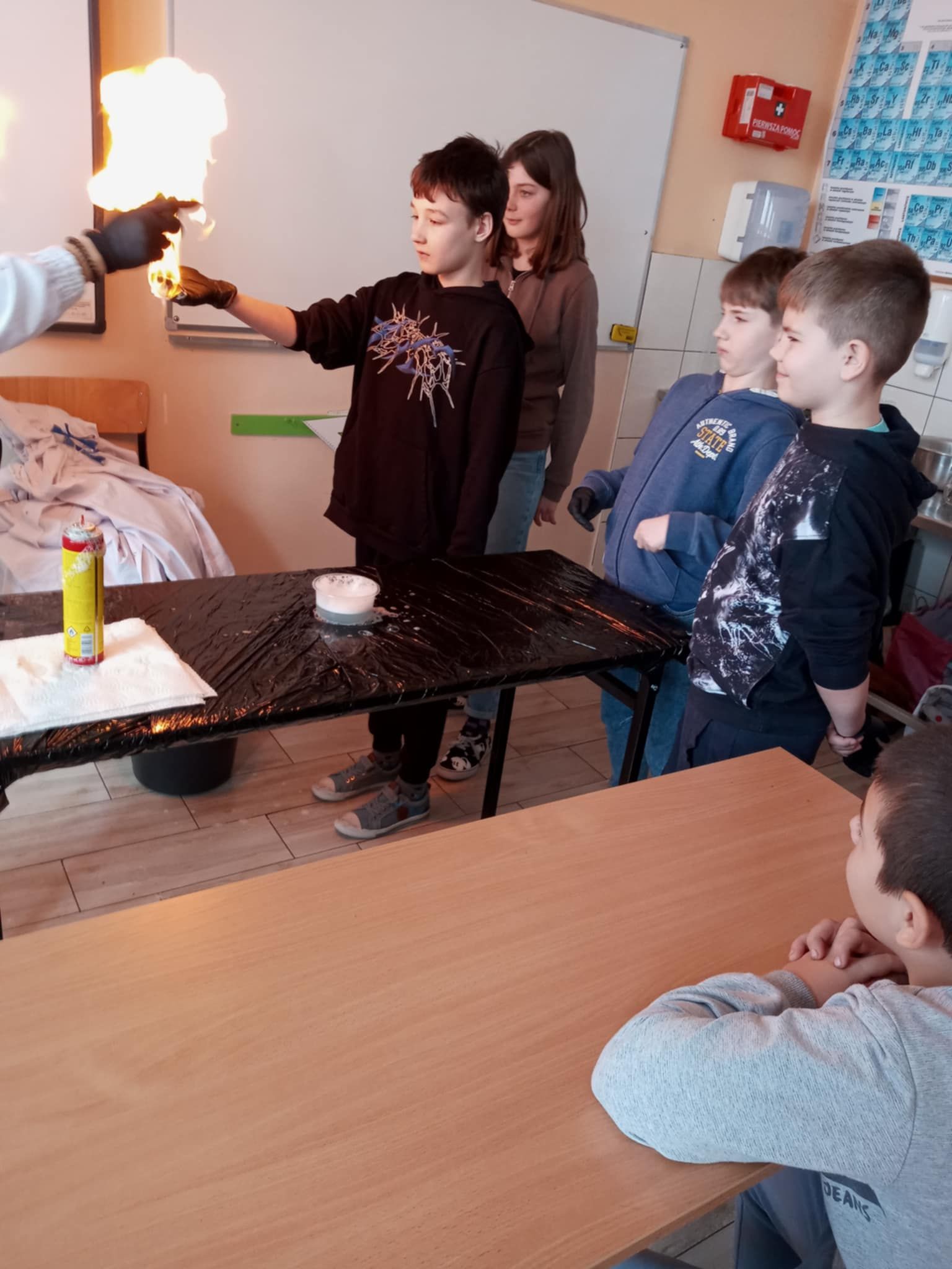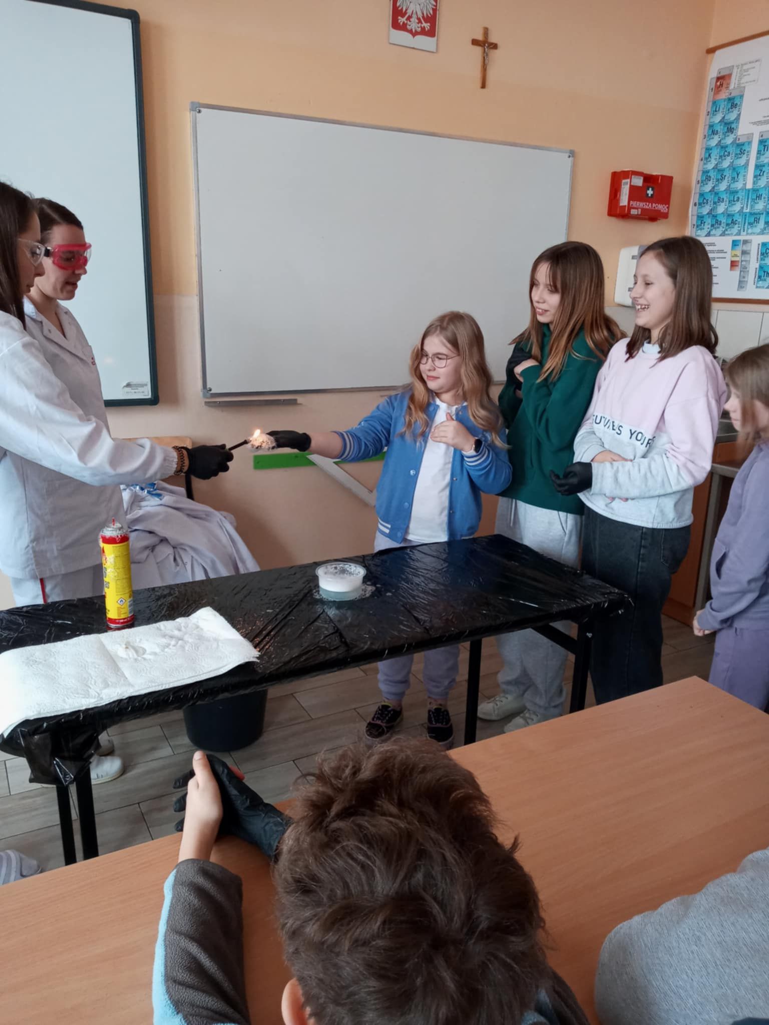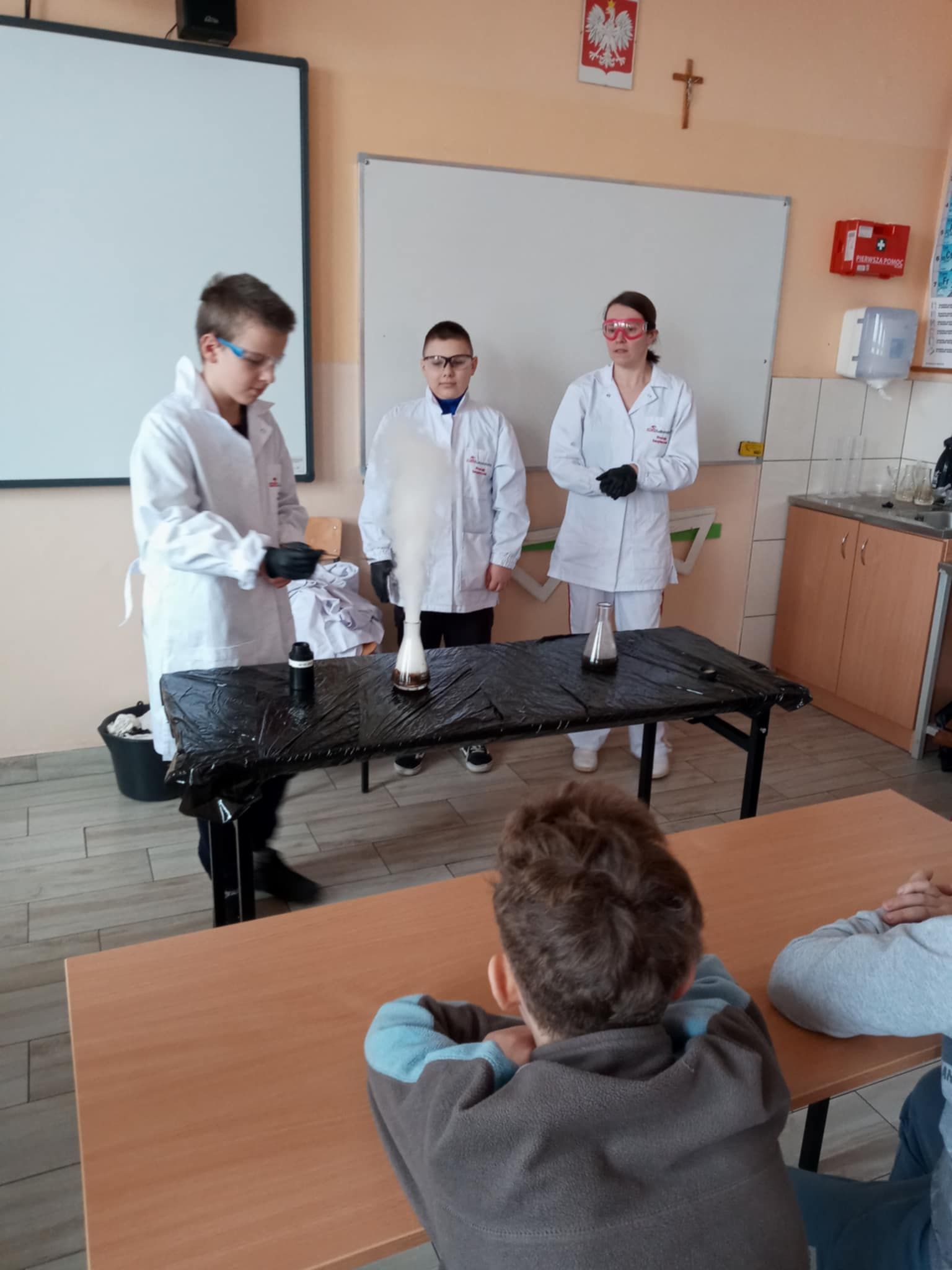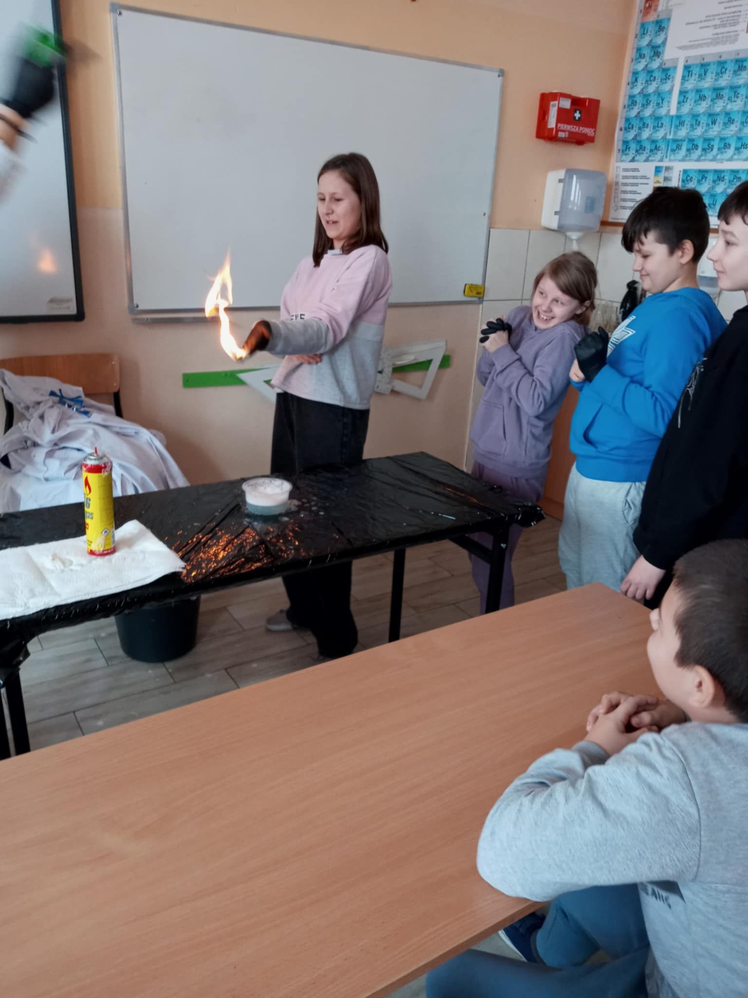 Dnia 25 lutego 2025 r. cztery klasy z naszej szkoły (II a i b oraz IV a i b) miały przyjemność uczestniczenia w warsztatach chemicznych. Pokazy przeprowadziły trzy Panie z Orlen Laboratorium we Włocławku w ramach programu „Orlen Pasja”. Były doświadczenia, dymy, kolorowe płyny, a przede wszystkim „płonące dłonie”. Wszyscy uczniowie doskonale się bawili. Żegnając się zaprosili Panie na kolejne spotkanie. Mamy nadzieję, że zaproszenie zostanie przyjęte. Czekamy z niecierpliwością.