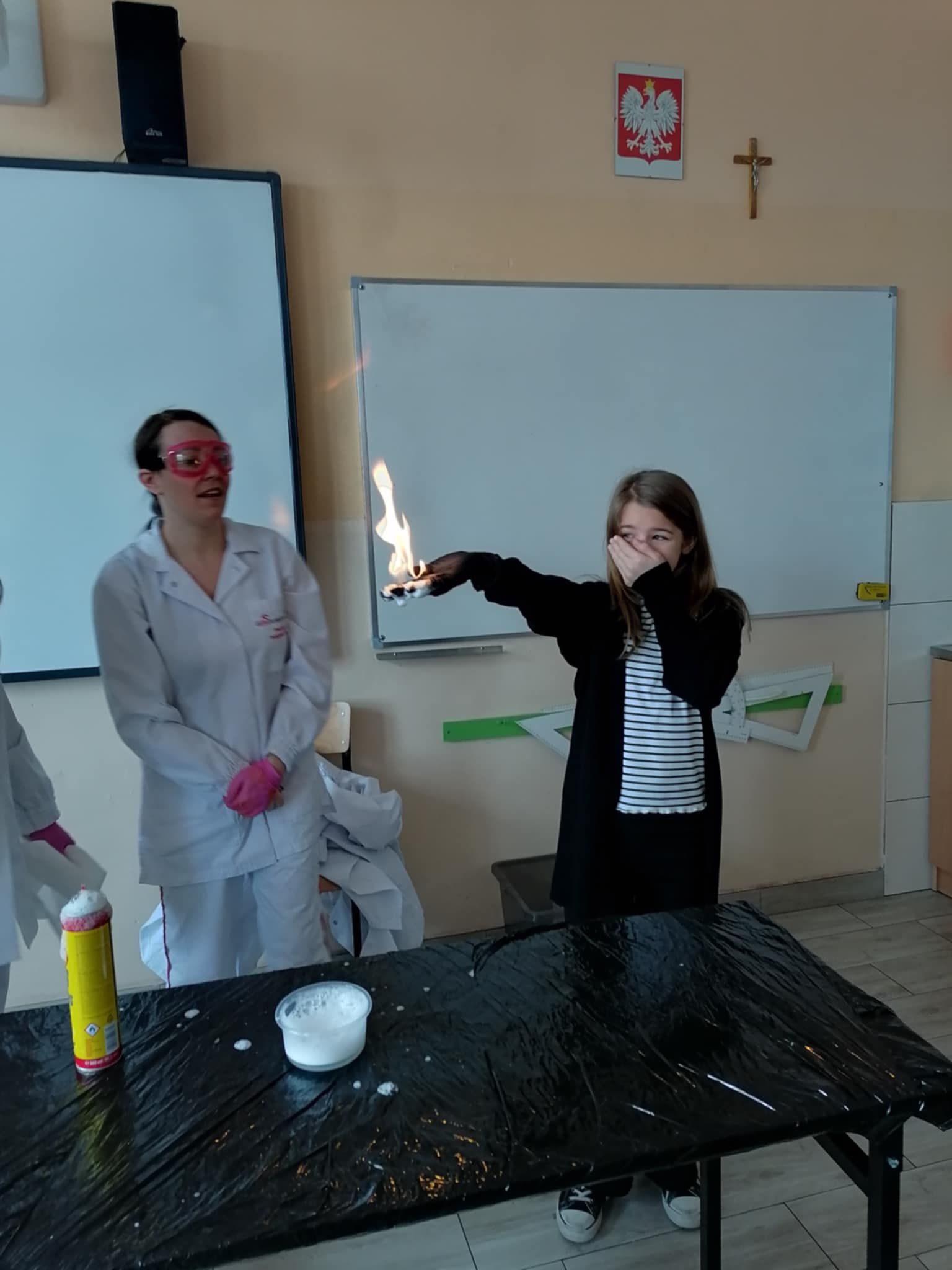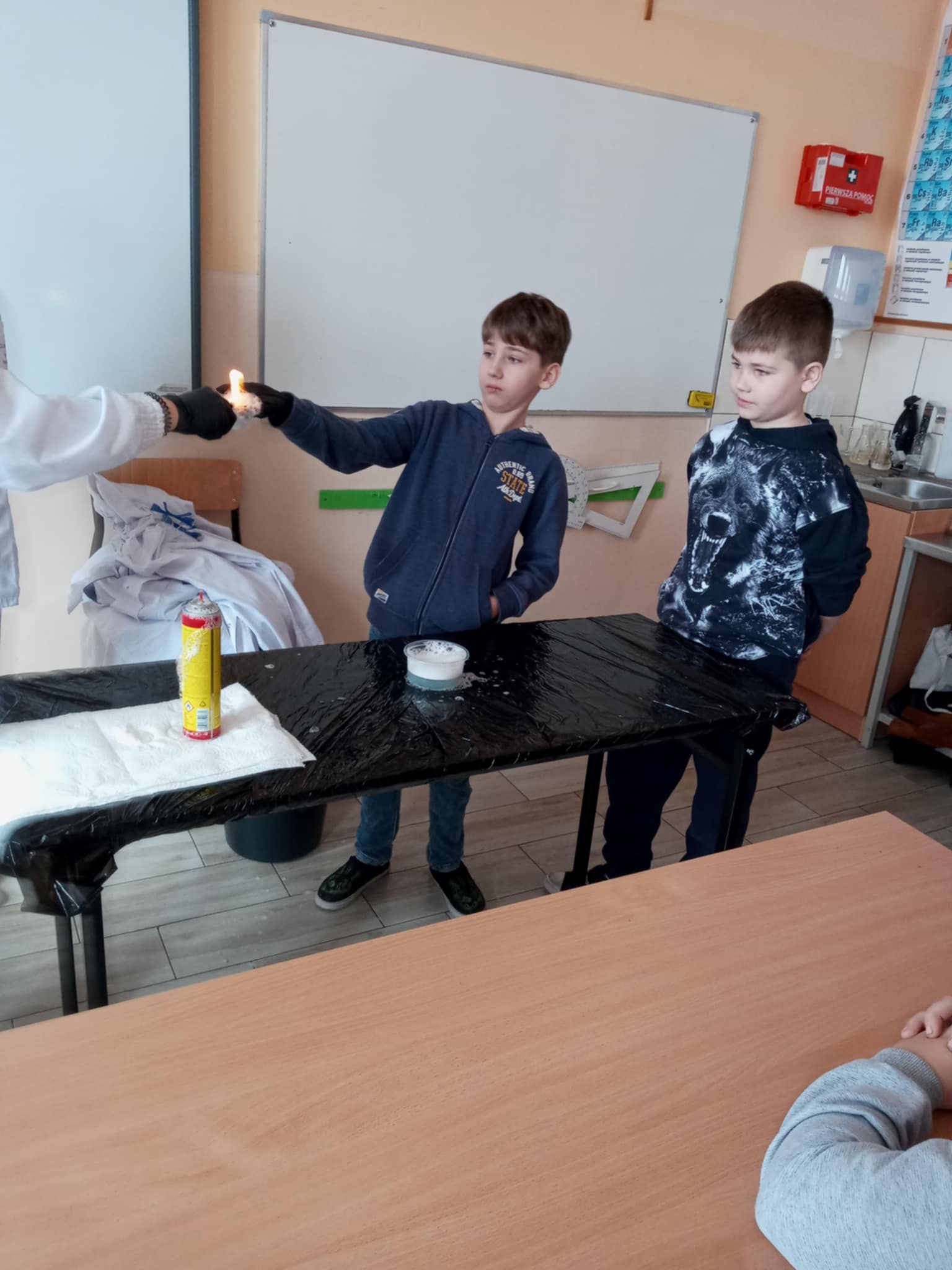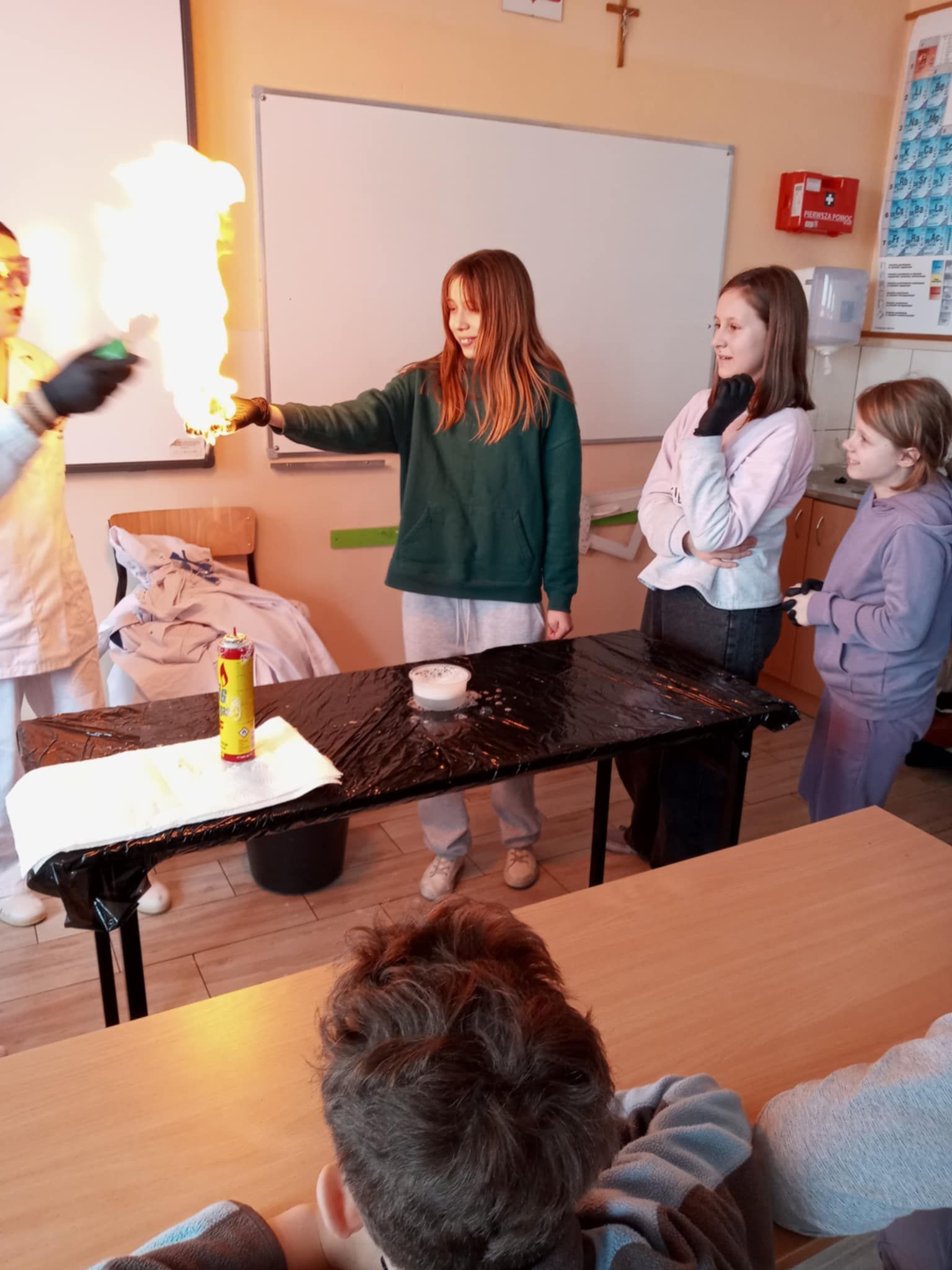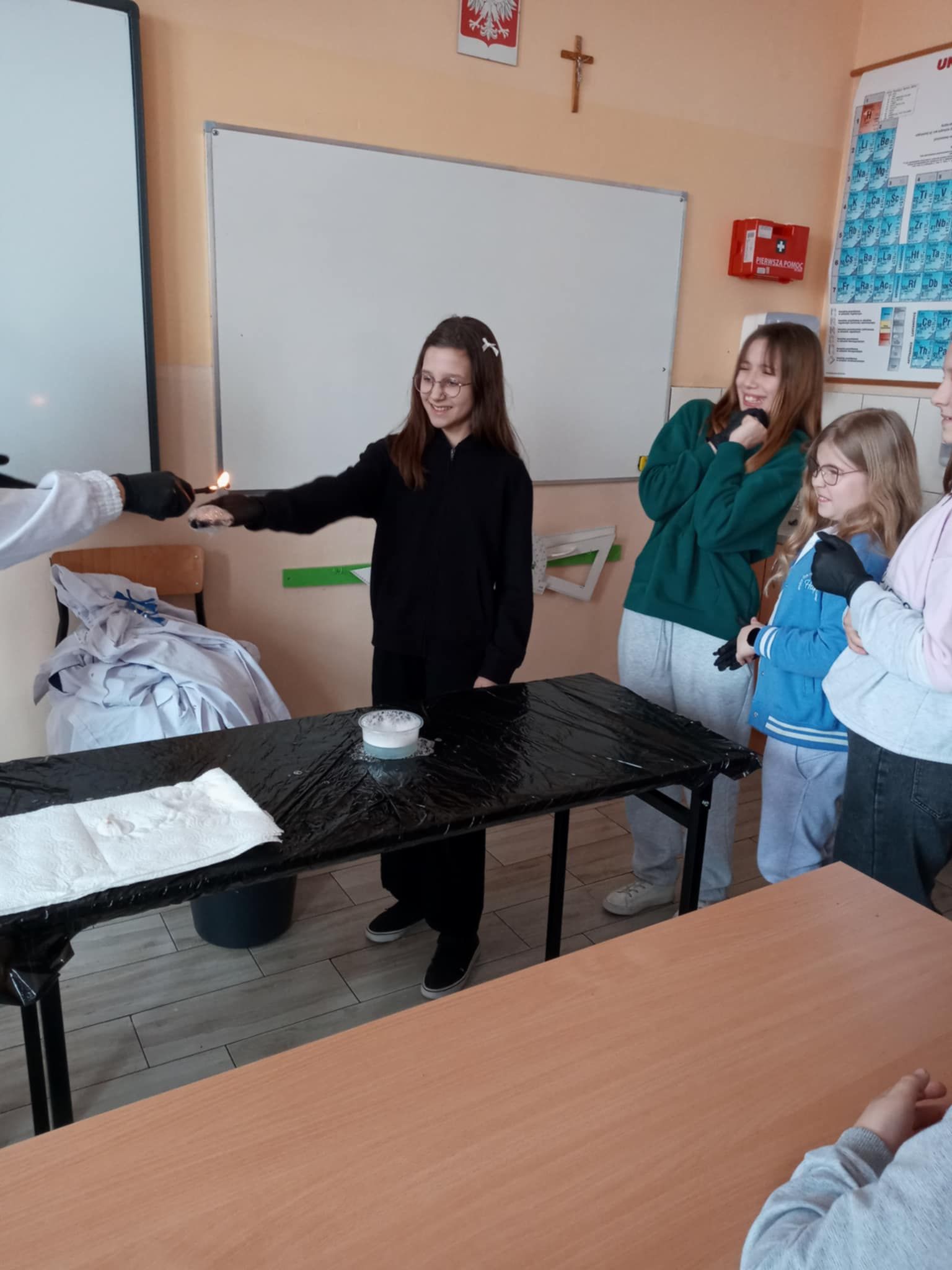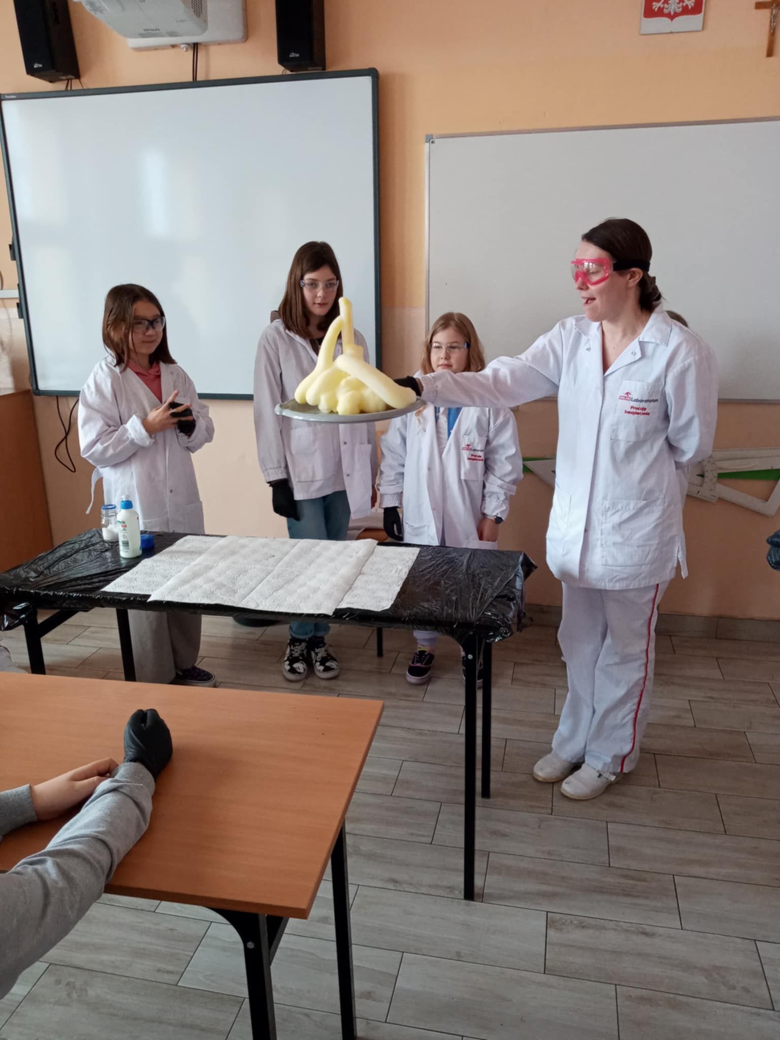 Dnia 25 lutego 2025 r. cztery klasy z naszej szkoły (II a i b oraz IV a i b) miały przyjemność uczestniczenia w warsztatach chemicznych. Pokazy przeprowadziły trzy Panie z Orlen Laboratorium we Włocławku w ramach programu „Orlen Pasja”. Były doświadczenia, dymy, kolorowe płyny, a przede wszystkim „płonące dłonie”. Wszyscy uczniowie doskonale się bawili. Żegnając się zaprosili Panie na kolejne spotkanie. Mamy nadzieję, że zaproszenie zostanie przyjęte. Czekamy z niecierpliwością.
