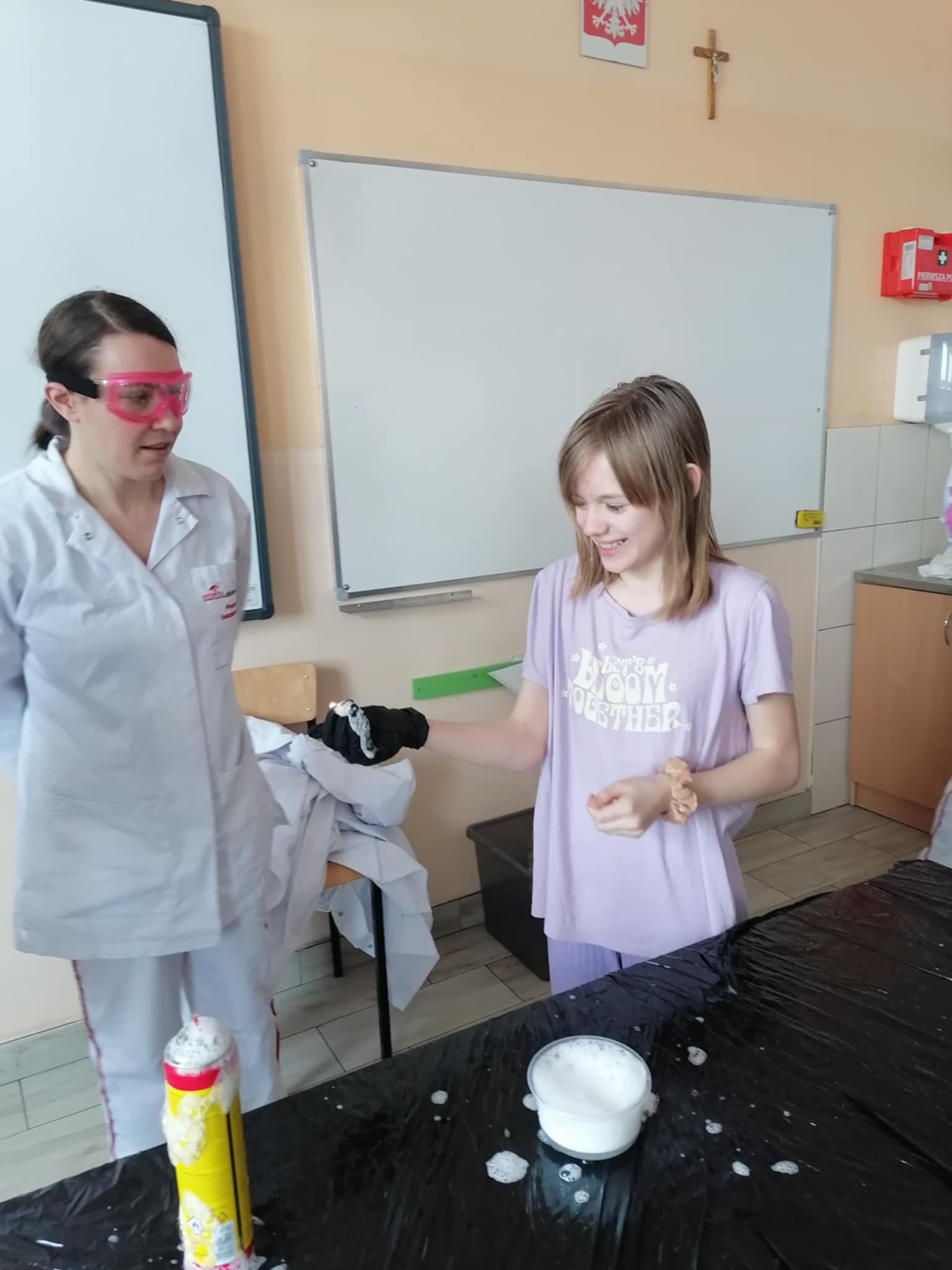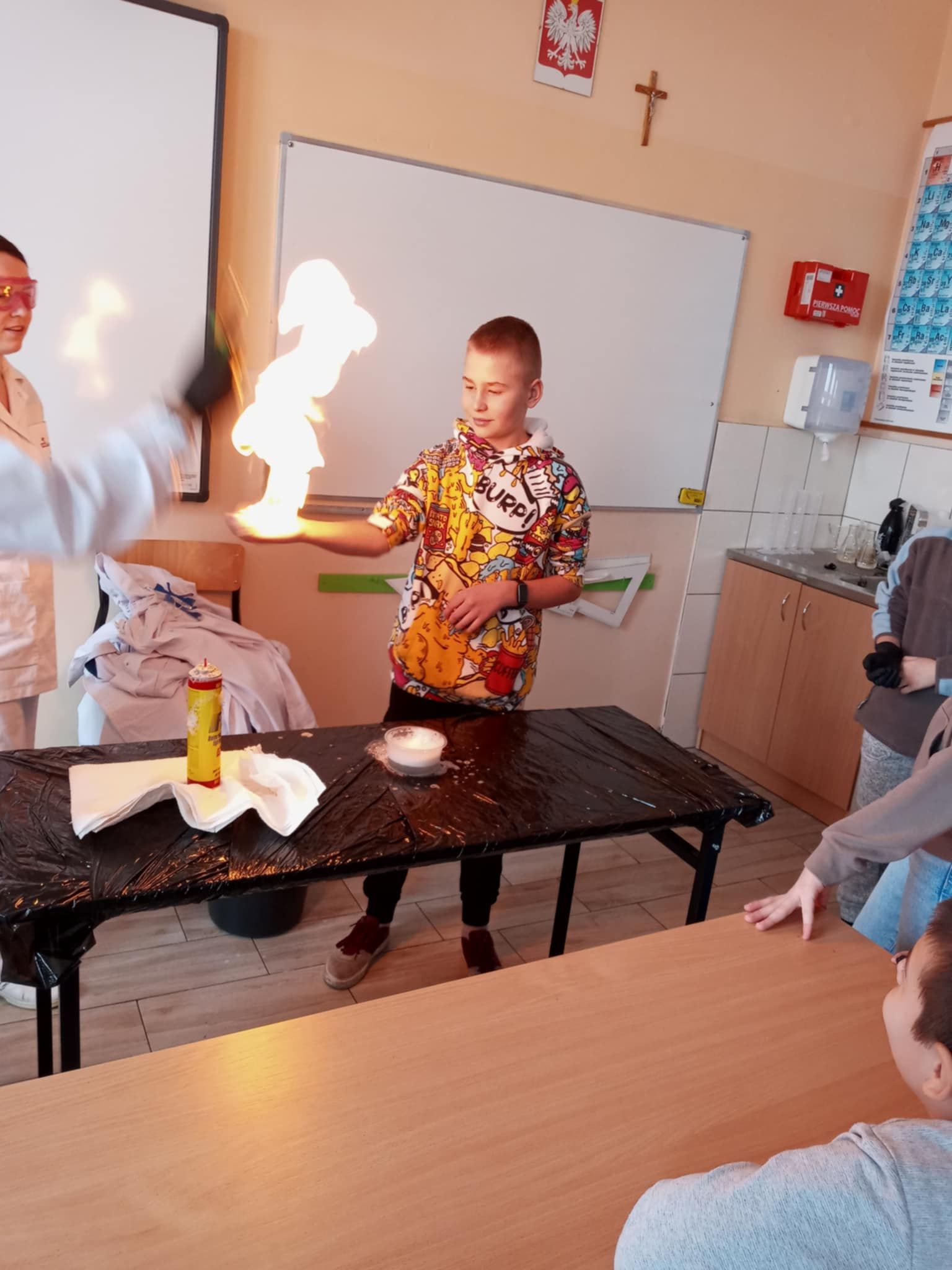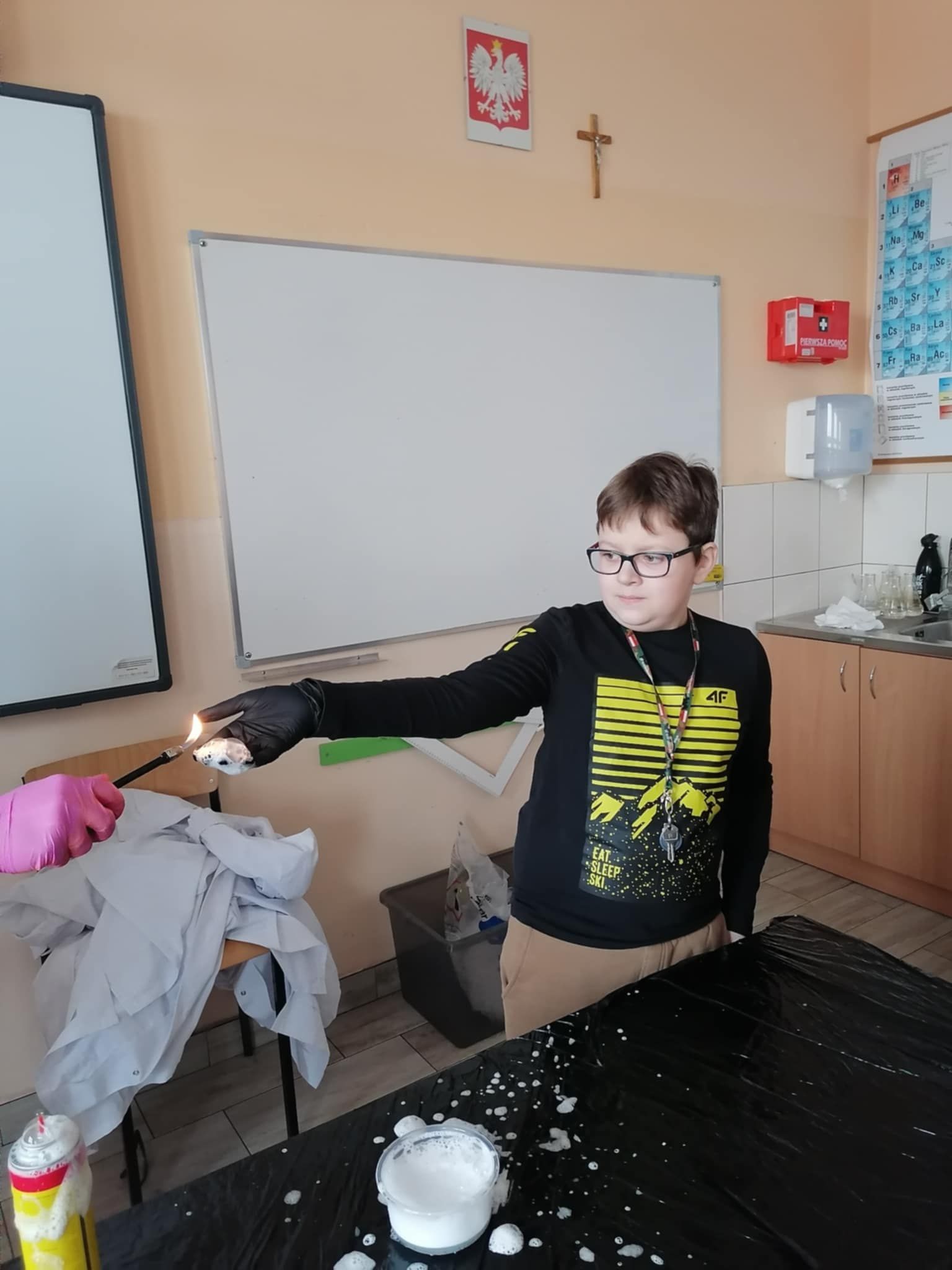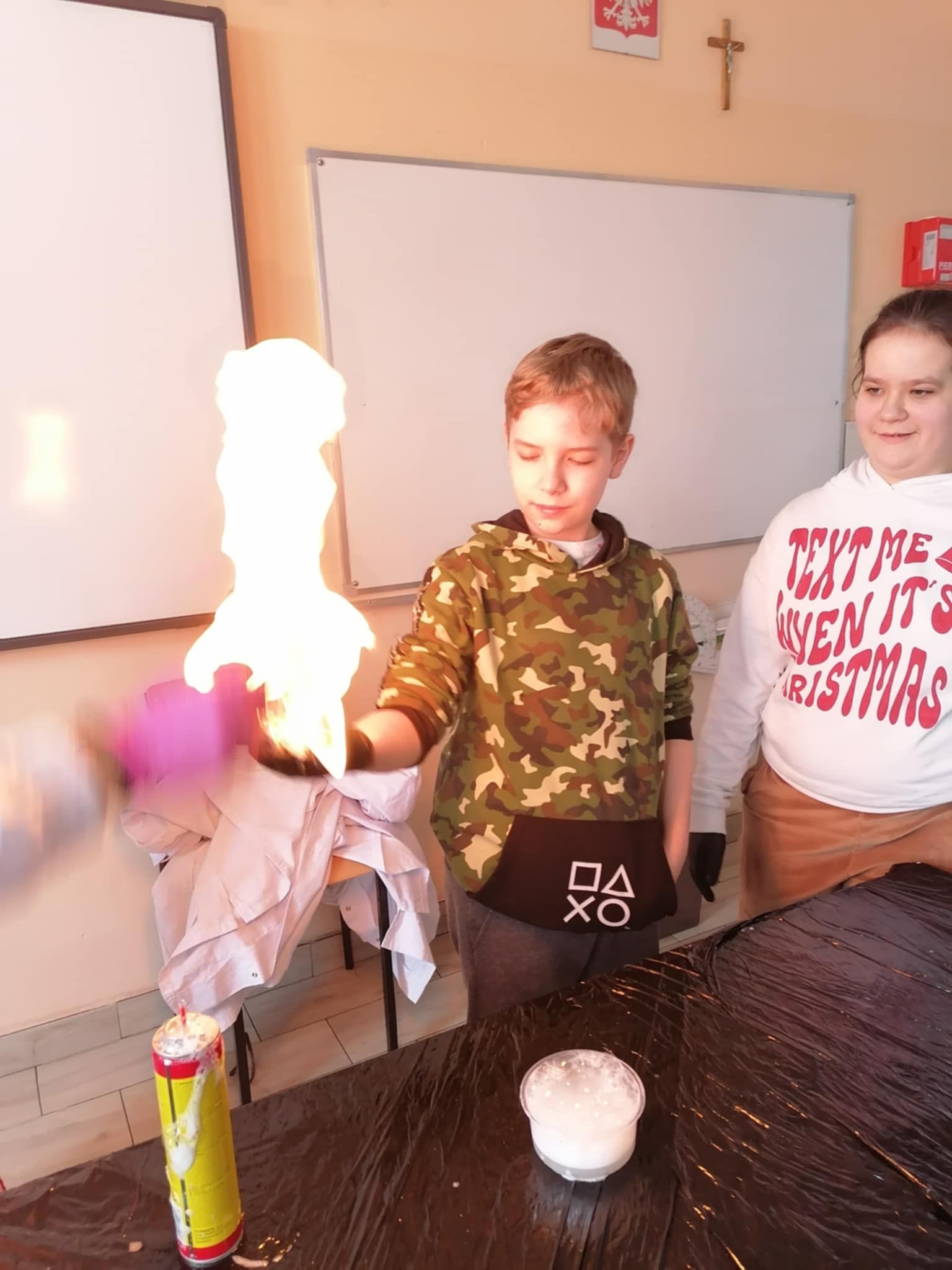 Dnia 25 lutego 2025 r. cztery klasy z naszej szkoły (II a i b oraz IV a i b) miały przyjemność uczestniczenia w warsztatach chemicznych. Pokazy przeprowadziły trzy Panie z Orlen Laboratorium we Włocławku w ramach programu „Orlen Pasja”. Były doświadczenia, dymy, kolorowe płyny, a przede wszystkim „płonące dłonie”. Wszyscy uczniowie doskonale się bawili. Żegnając się zaprosili Panie na kolejne spotkanie. Mamy nadzieję, że zaproszenie zostanie przyjęte. Czekamy z niecierpliwością.