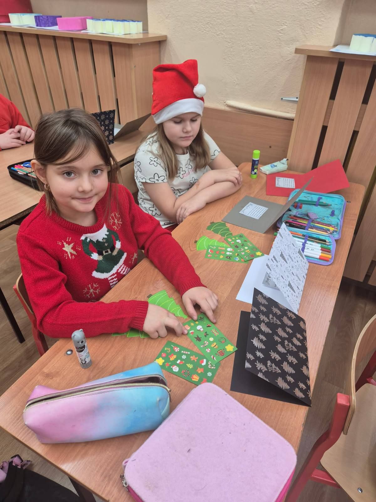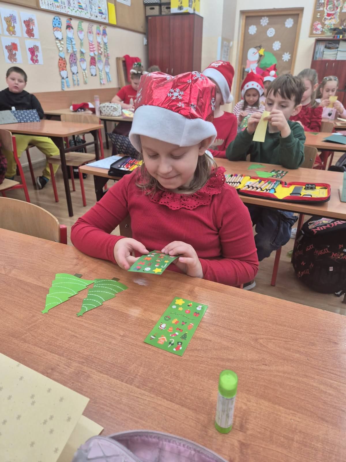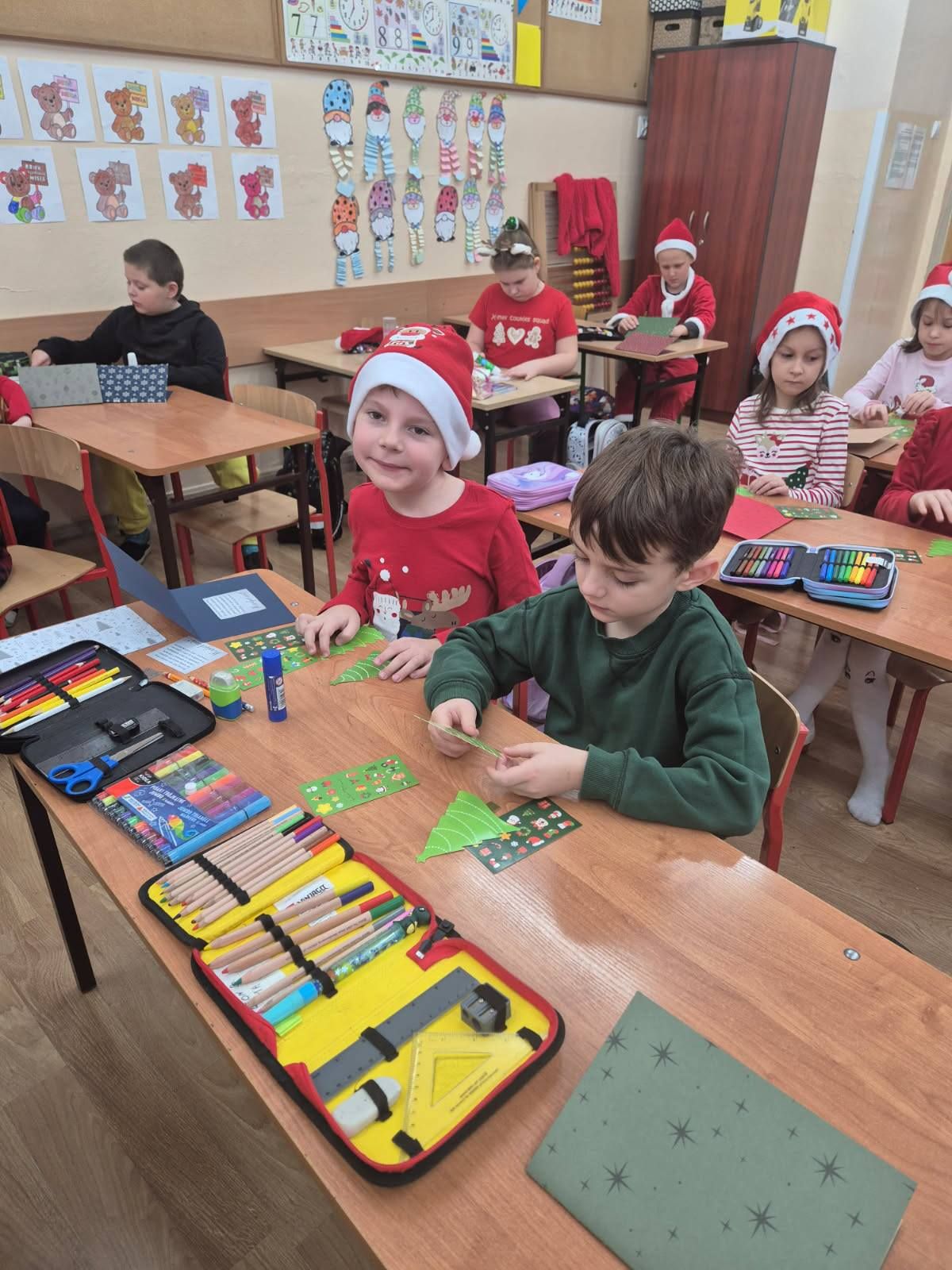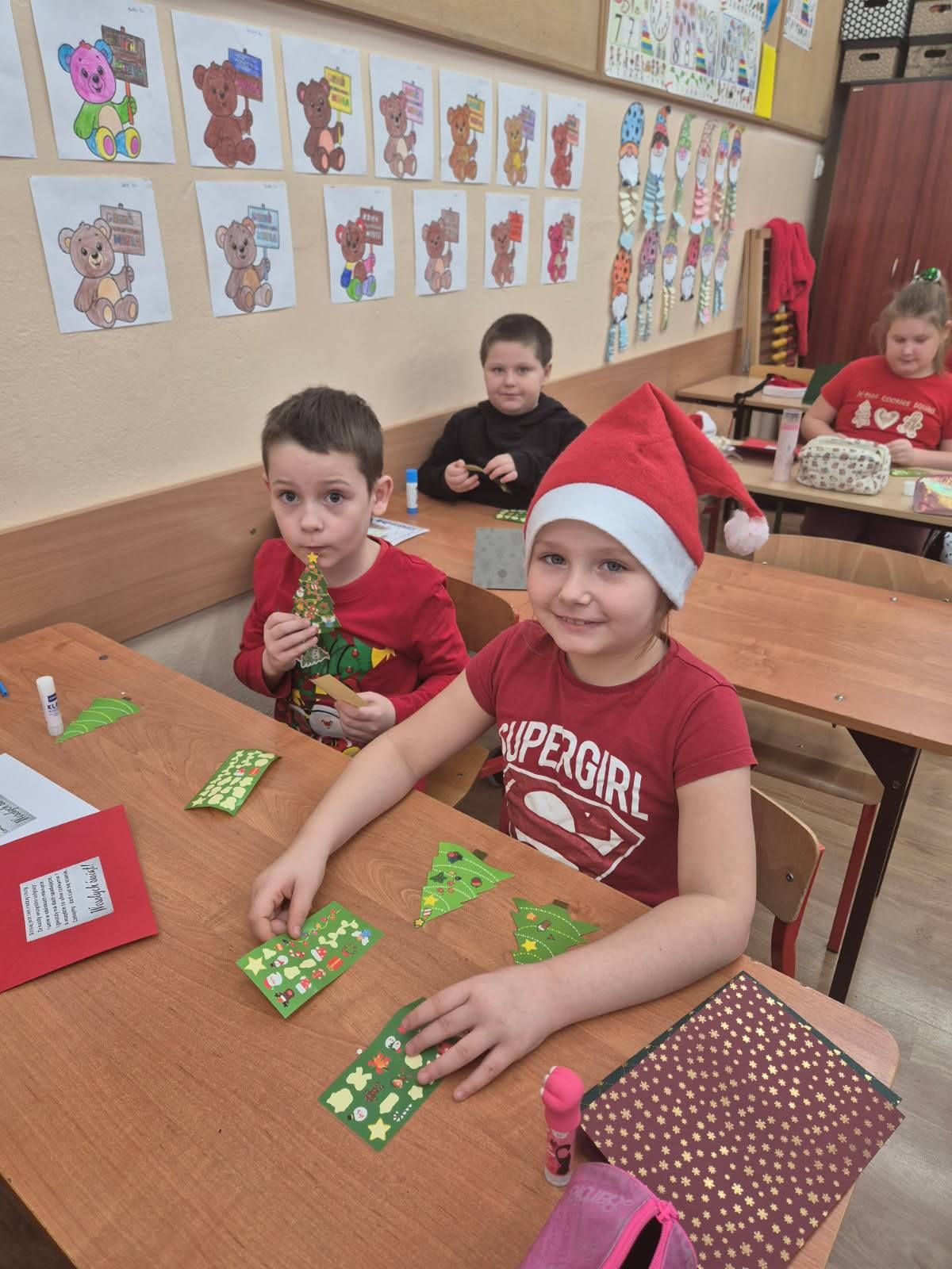 Warsztaty plastyczne w klasie Ia. Wykonywanie kartek świątecznych dla swoich najbliższych.
