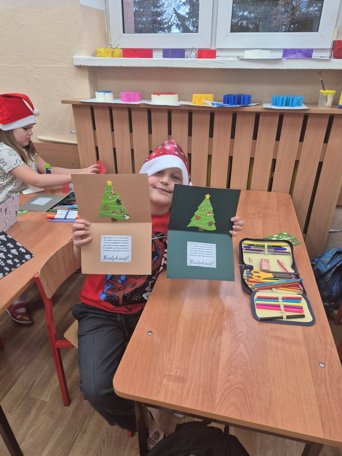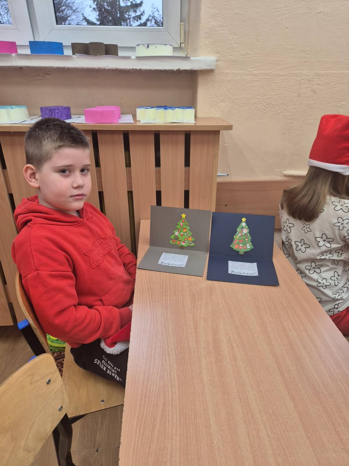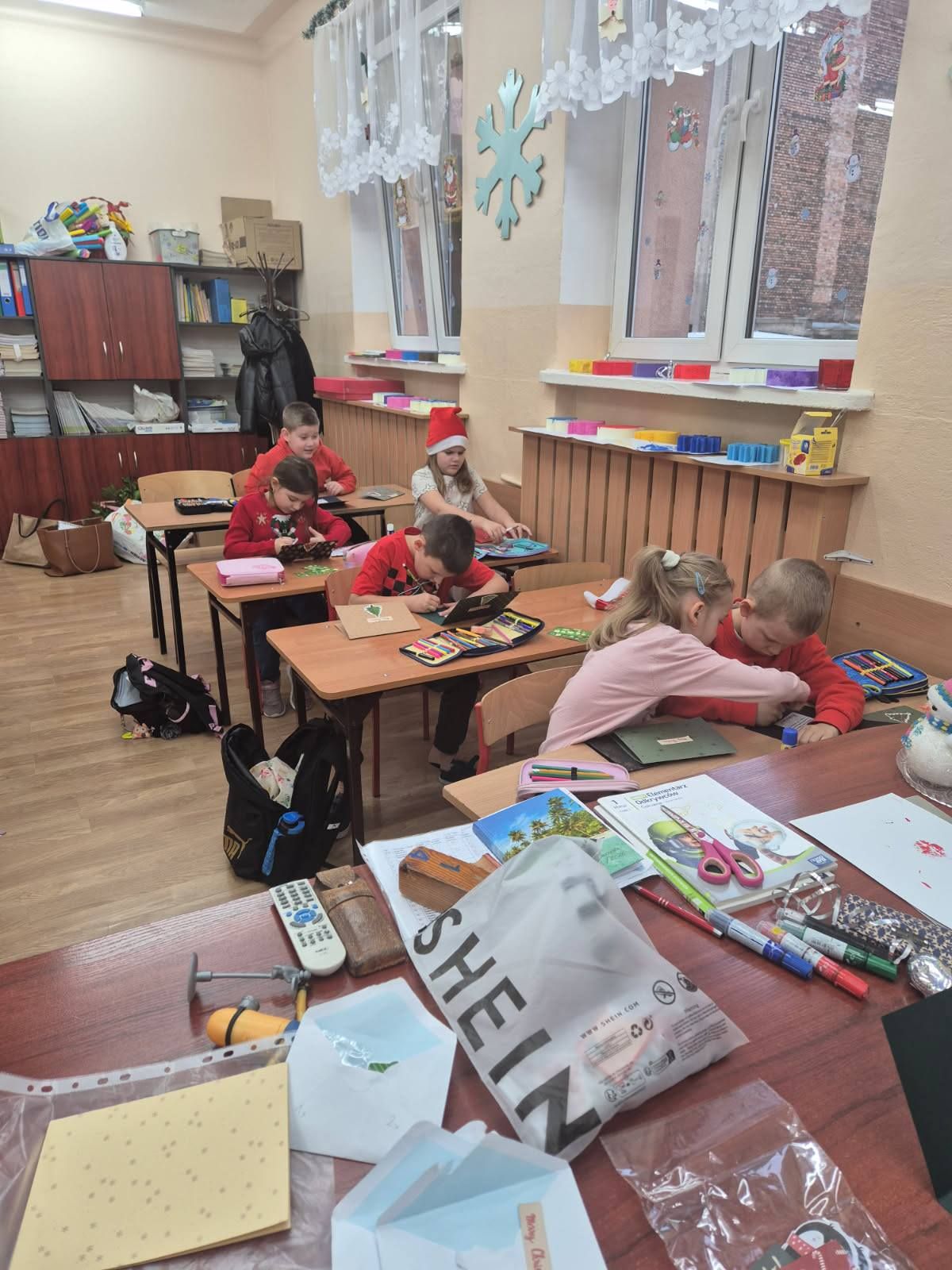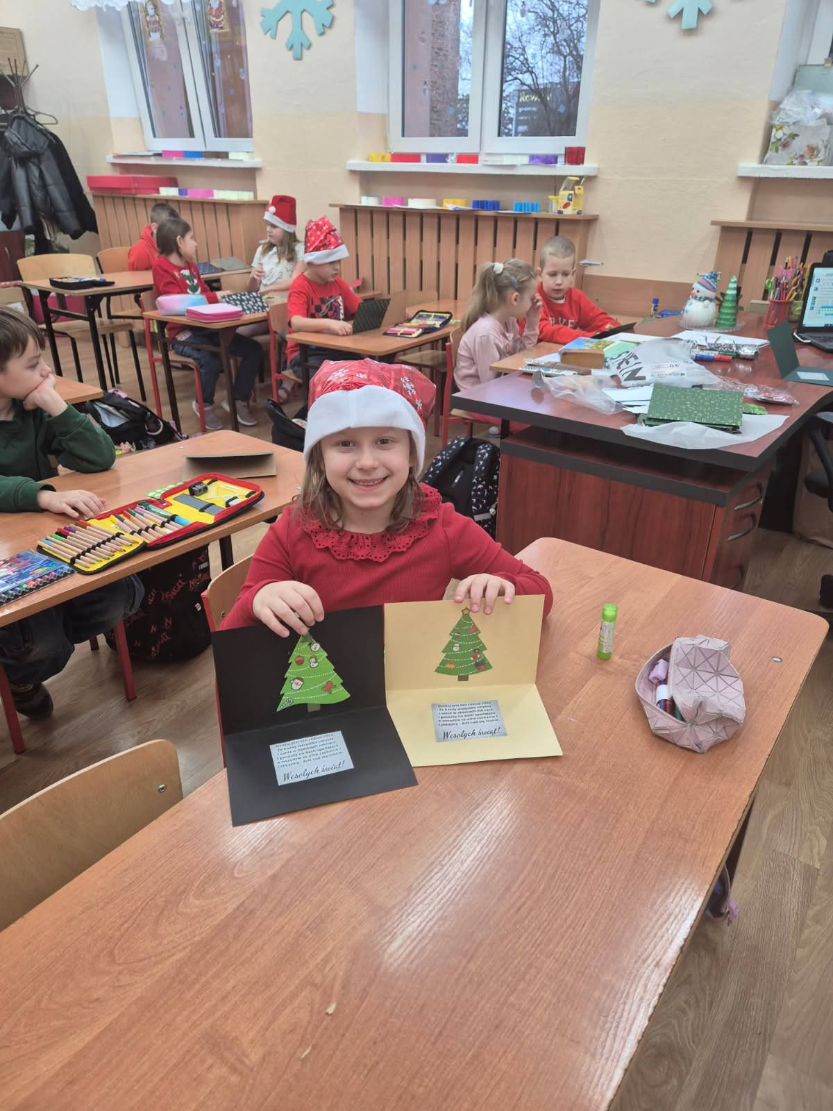 Warsztaty plastyczne w klasie Ia. Wykonywanie kartek świątecznych dla swoich najbliższych.
