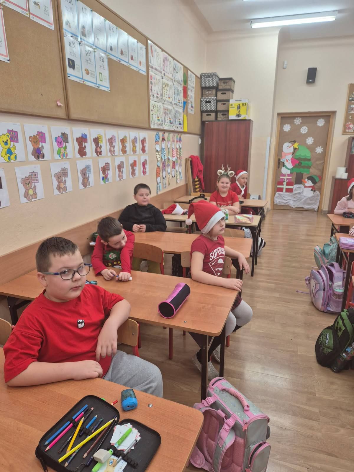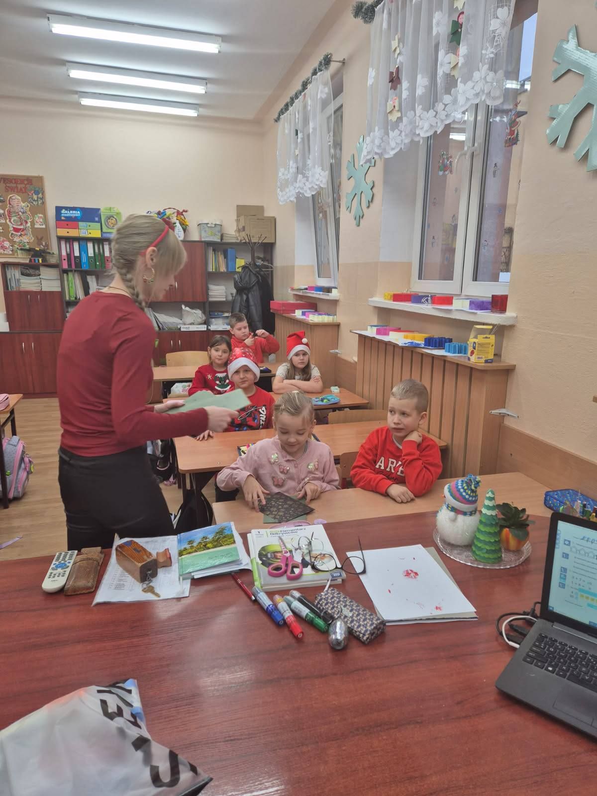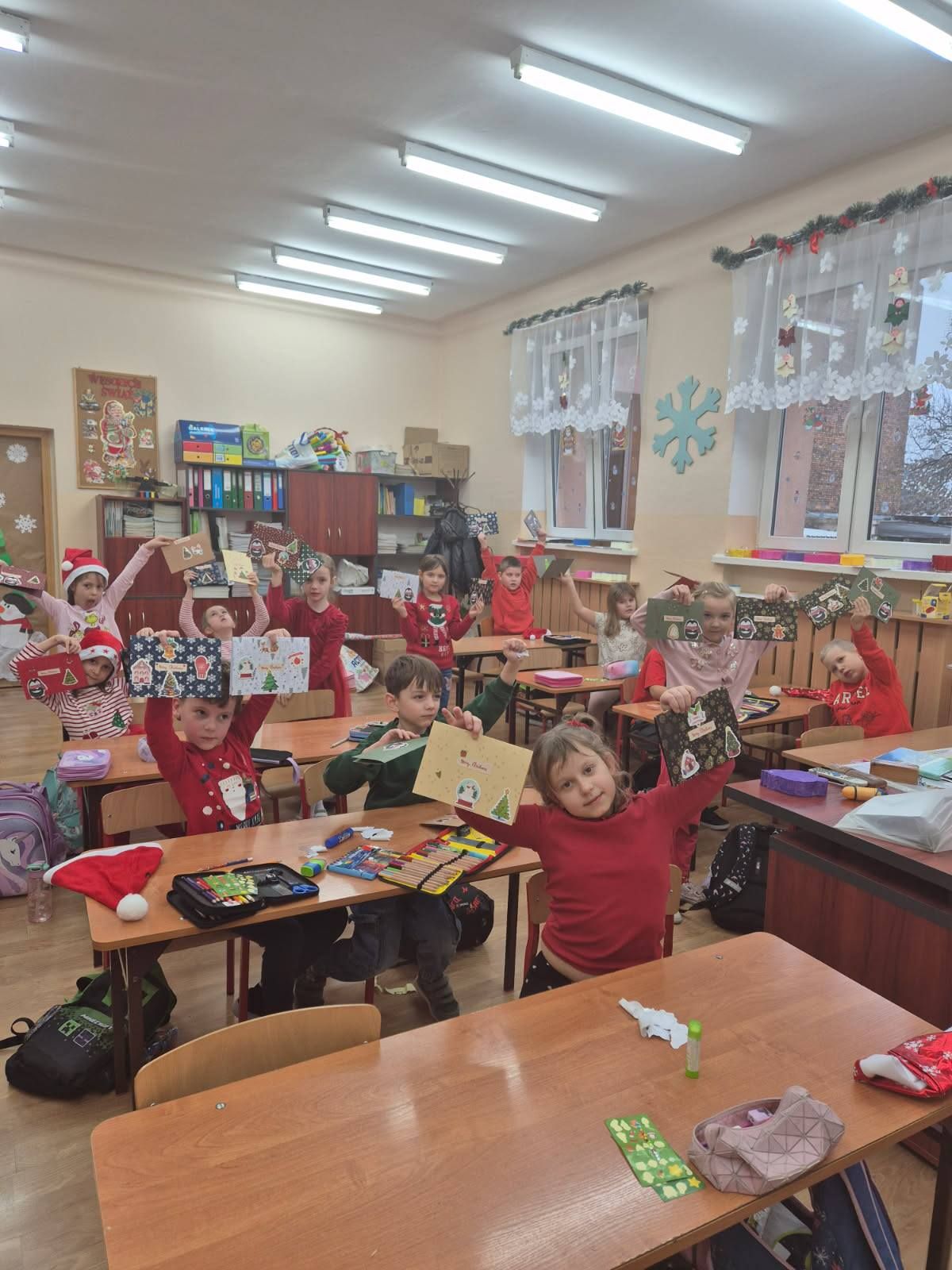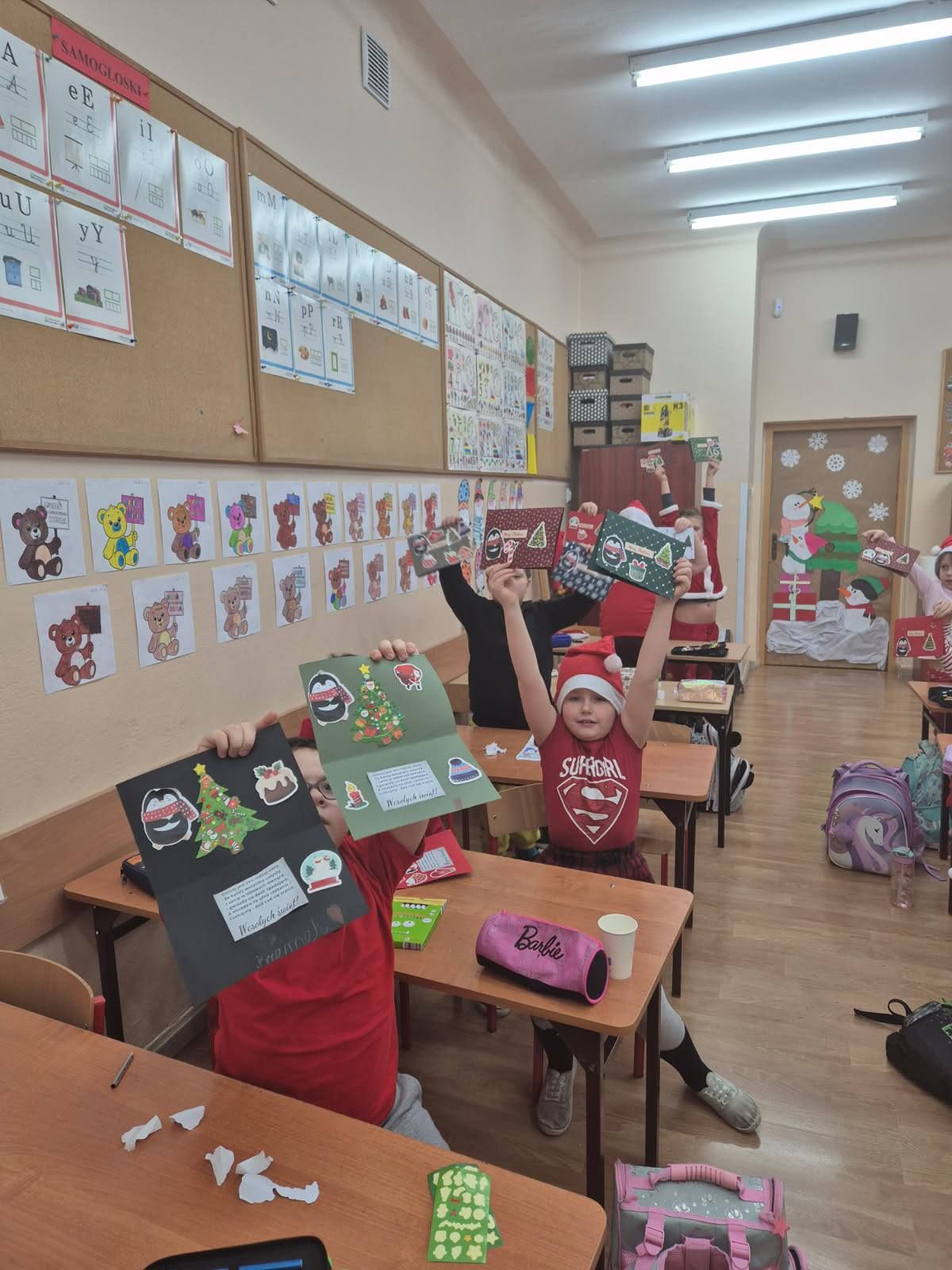 Warsztaty plastyczne w klasie Ia. Wykonywanie kartek świątecznych dla swoich najbliższych.