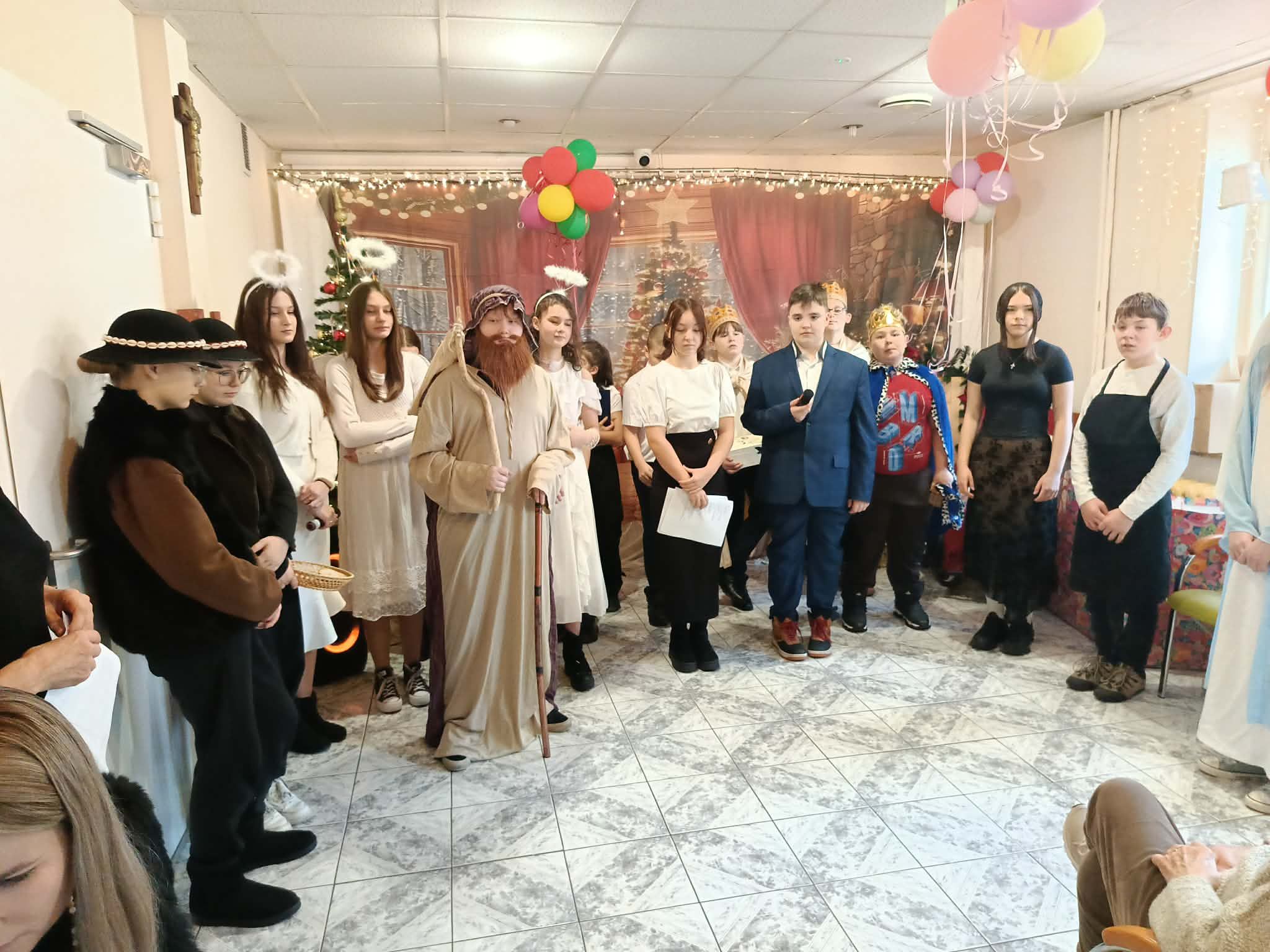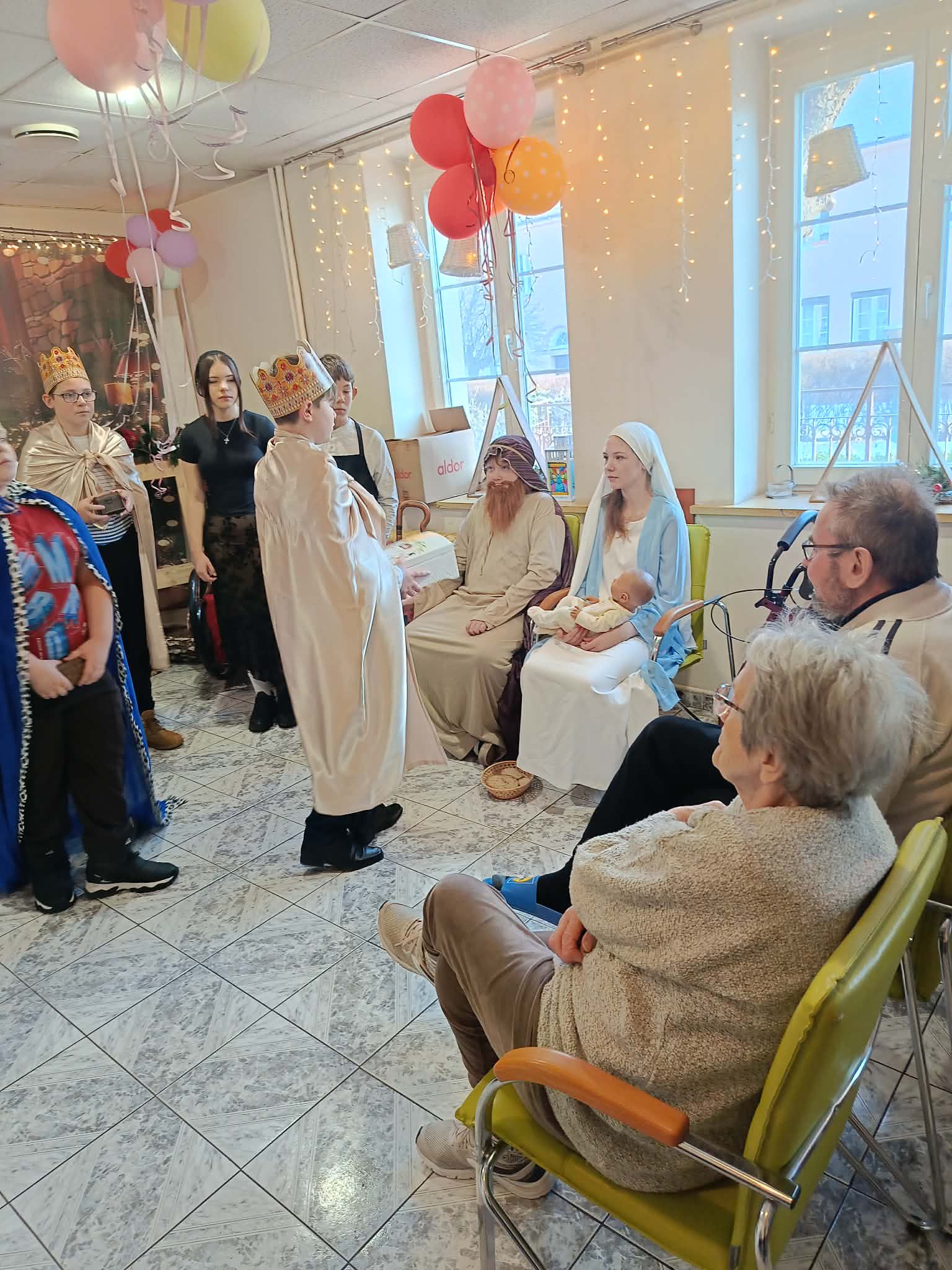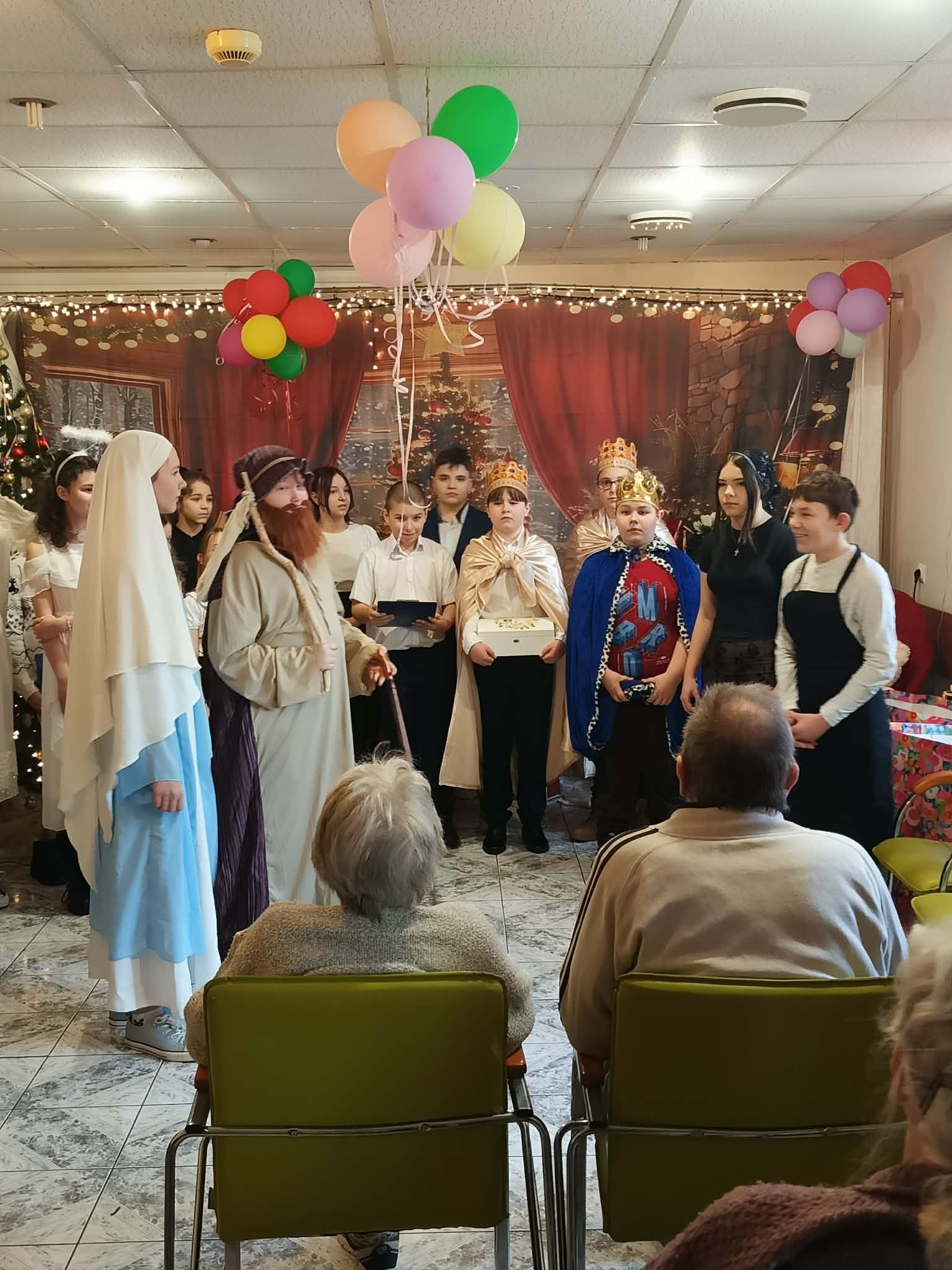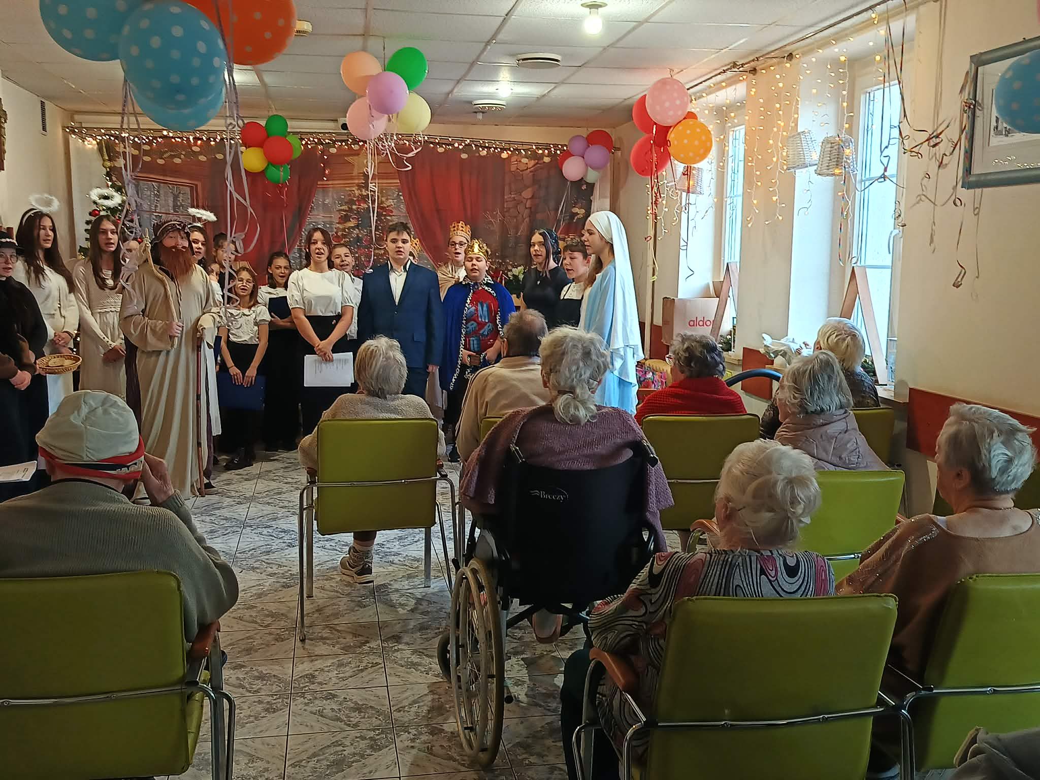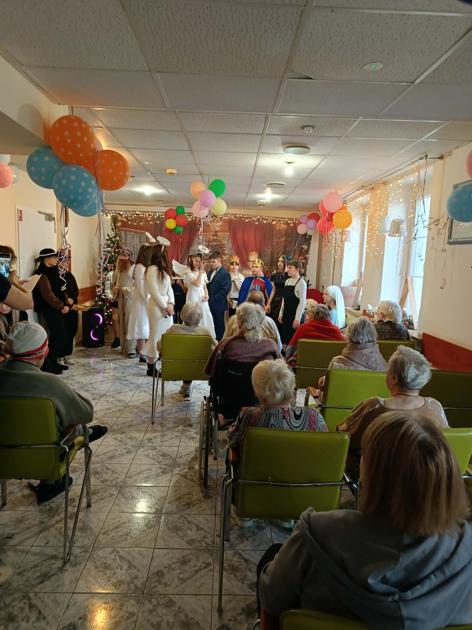 Uczniowie przygotowali dla seniorów wyjątkowy program artystyczny – zaprezentowali jasełka oraz wspólnie z mieszkańcami DPS śpiewali kolędy, tworząc ciepłą i wzruszającą atmosferę.