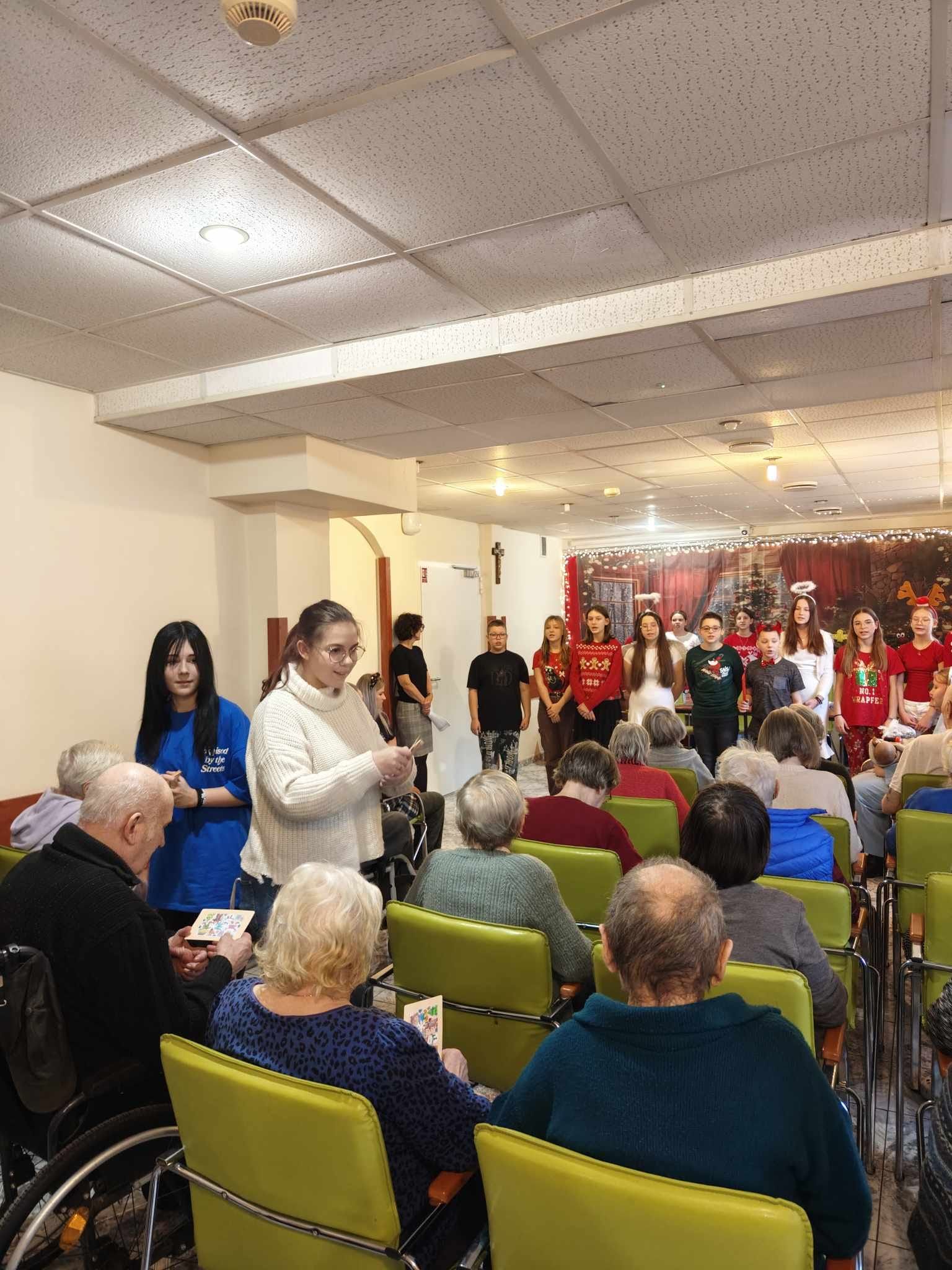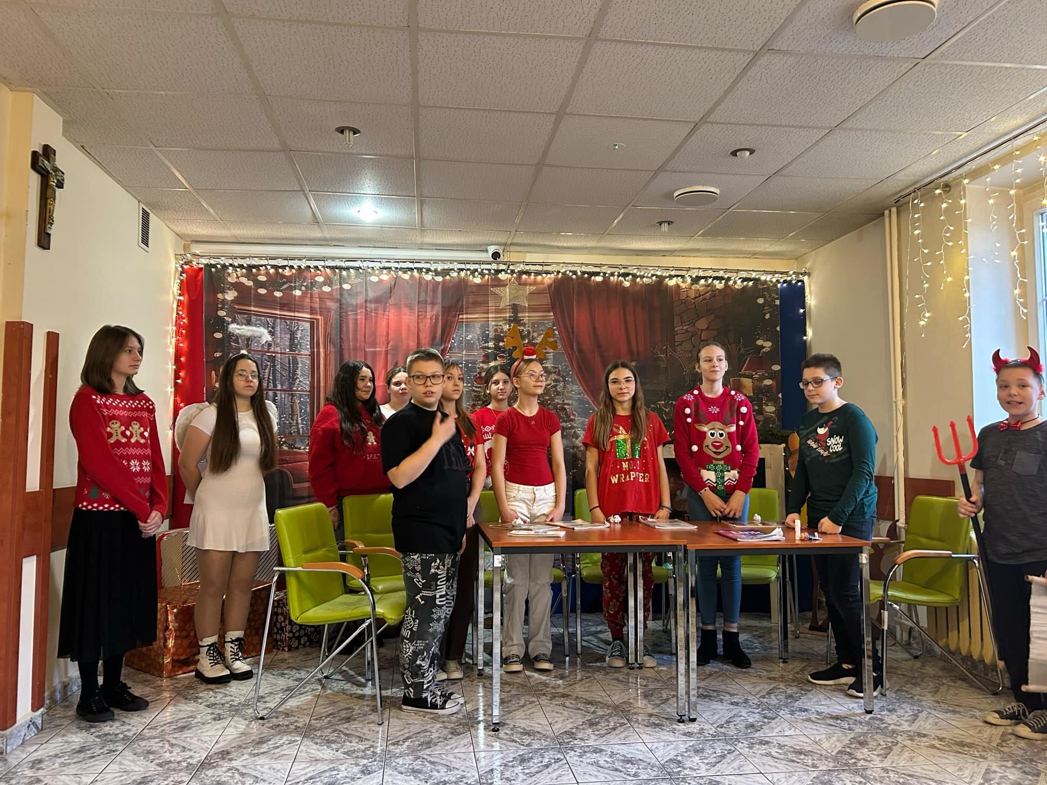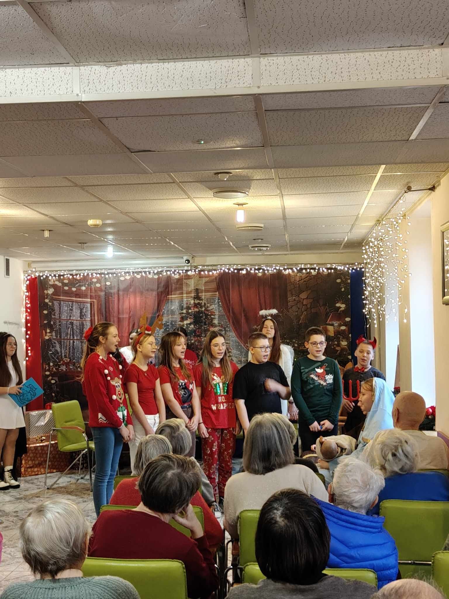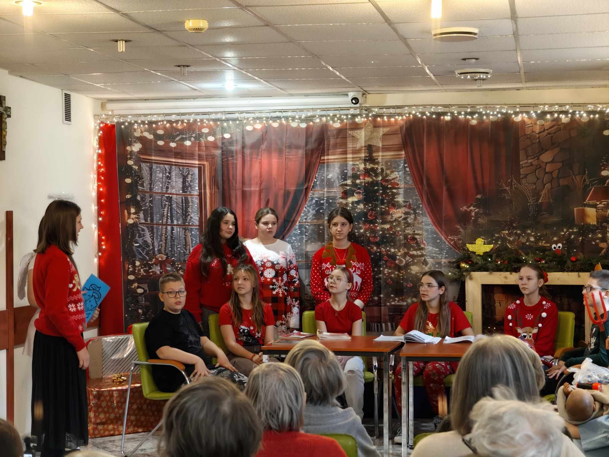 19.12.2024 r. uczniowie ze Szkol. Koła Teatralnego, Koła Wolontariatu wraz z opiekunami: p. Bożeną Kiersznicką, p. Joanną Karwat, p. Emilią Konopą, p. Aleksandrą Kalinowską oraz pedagogami: p. Joanną Dziedzic i p. Eweliną Skucha-Pastucha odwiedzili Pensjonariuszy DPS przy ul. Nowomiejskiej.