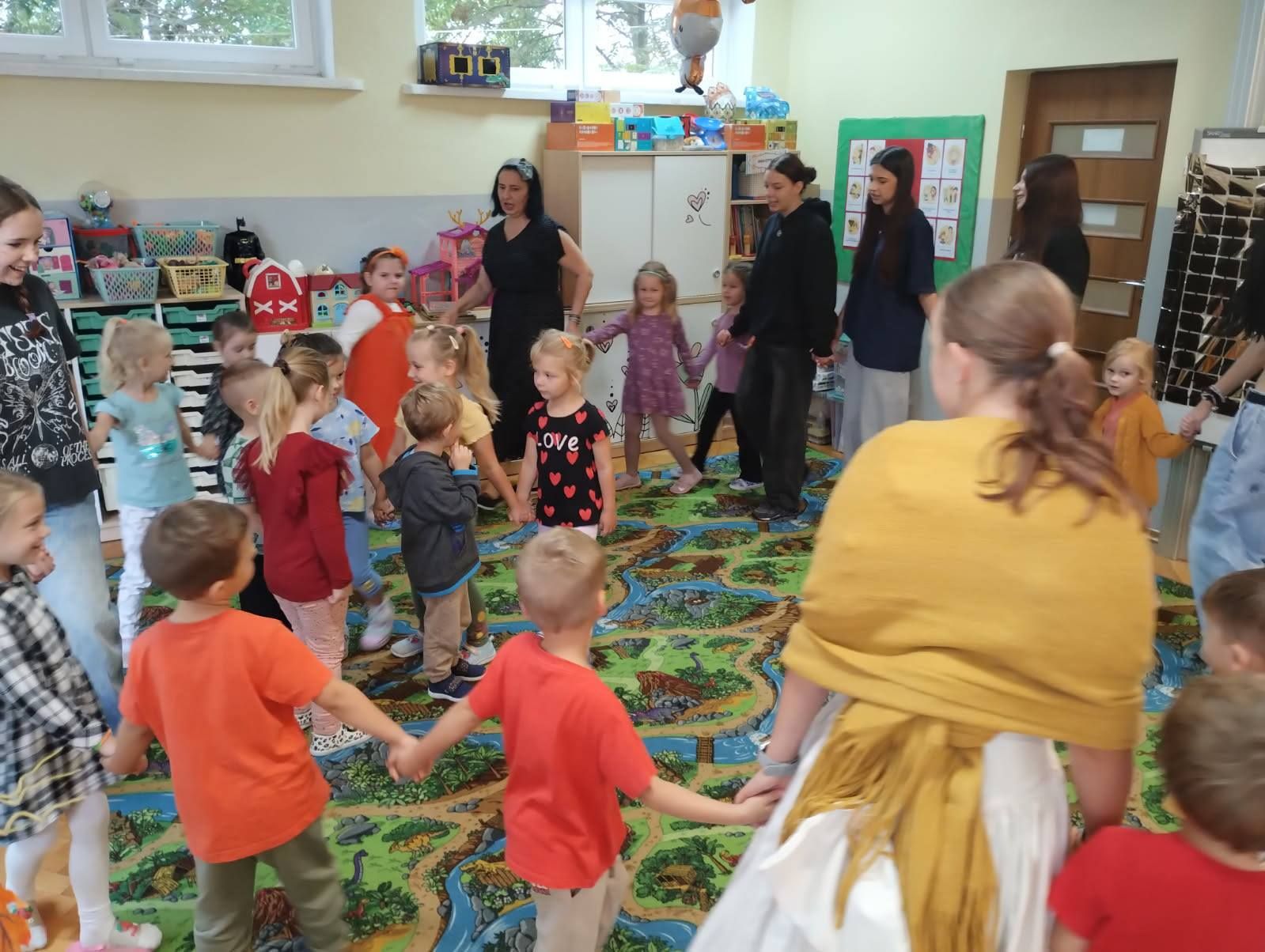 Uczniowie z zaangażowaniem- nie tylko angażują się w różne akcje na terenie naszej szkoły, ale także swoją empatią chcą podzielić się z innymi. W związku z powyższym dnia 22.09.2025r uczennice z klasy 8a odwiedziły Przedszkole nr 17 we Włocławku. Dla wszystkich grup wiekowych przygotowały akcję ,,Jesienne czytanie”. Były czytane przepiękne wiersze Jana Brzechwy, baśń ,,Calineczka J.H Andersena oraz zabawy z tańcem. Przedszkolaki świetnie bawiły się i śmiały a Pani Jesień i jej pomocnice były atrakcją spotkania. Z niecierpliwieniem następne włocławskie przedszkola czekają na spotkanie.