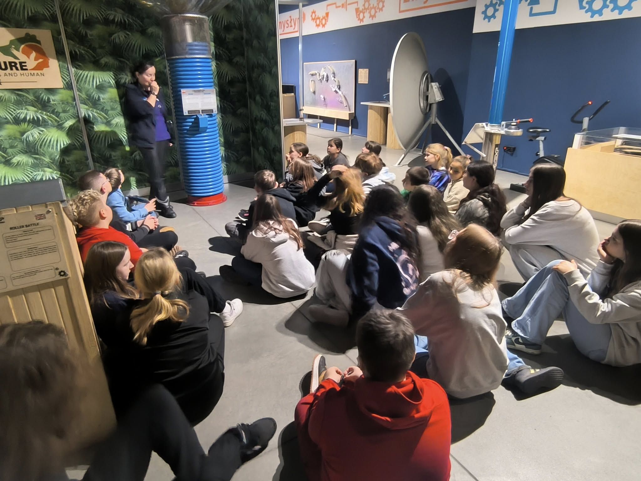 Ostatnim punktem programu było Eksperymentarium, gdzie czekała na nas masa interaktywnych doświadczeń. To centrum nauki umożliwia testowanie praw fizyki, matematyki i biologii poprzez zabawę. Każdy mógł samodzielnie sprawdzić działanie sił, fal, reakcji chemicznych czy iluzji sensorycznych. Największą atrakcją okazały się stanowiska związane z energią i grawitacją oraz pokazy naukowe, podczas których prowadzący prezentowali efektowne eksperymenty.