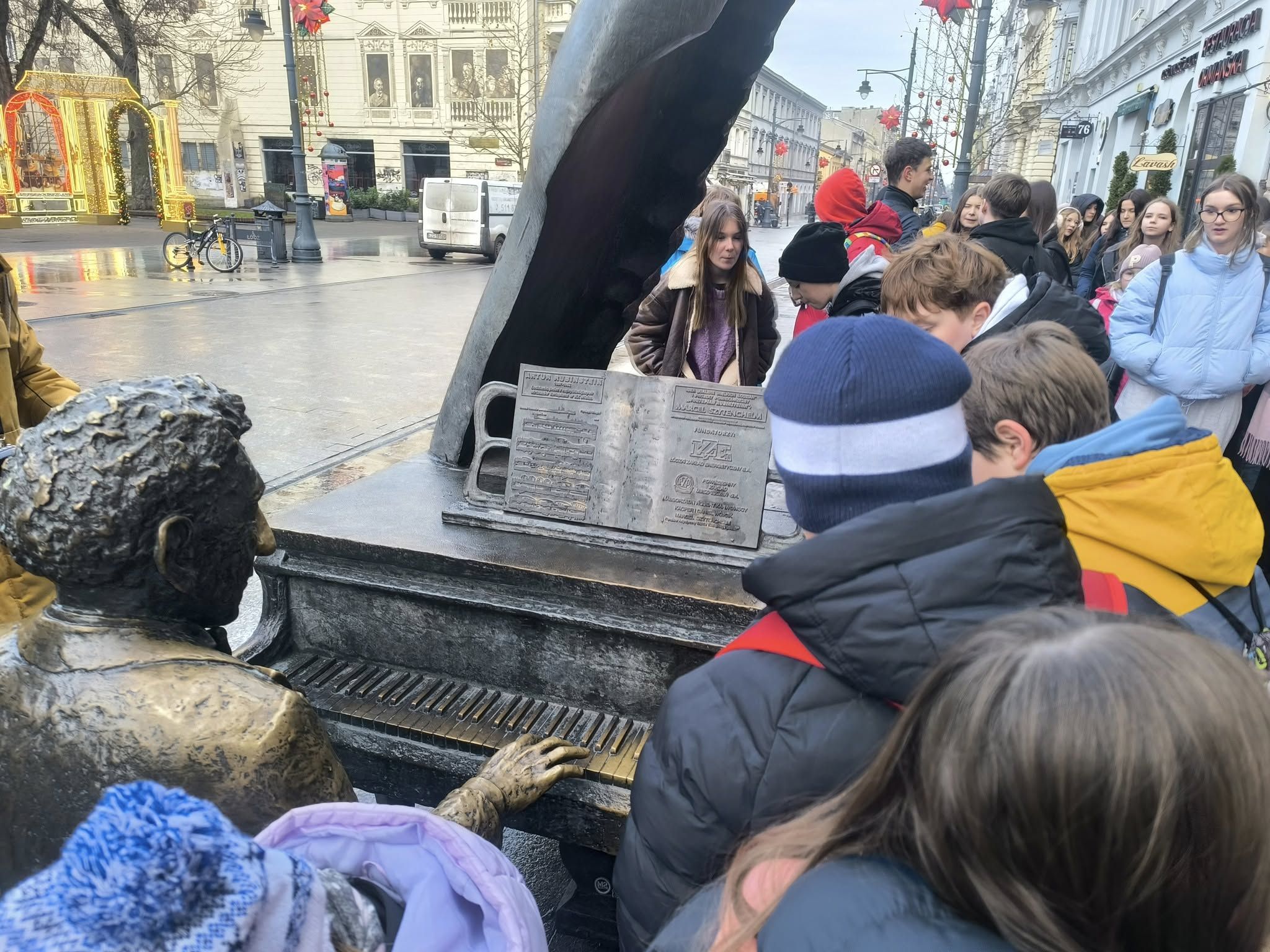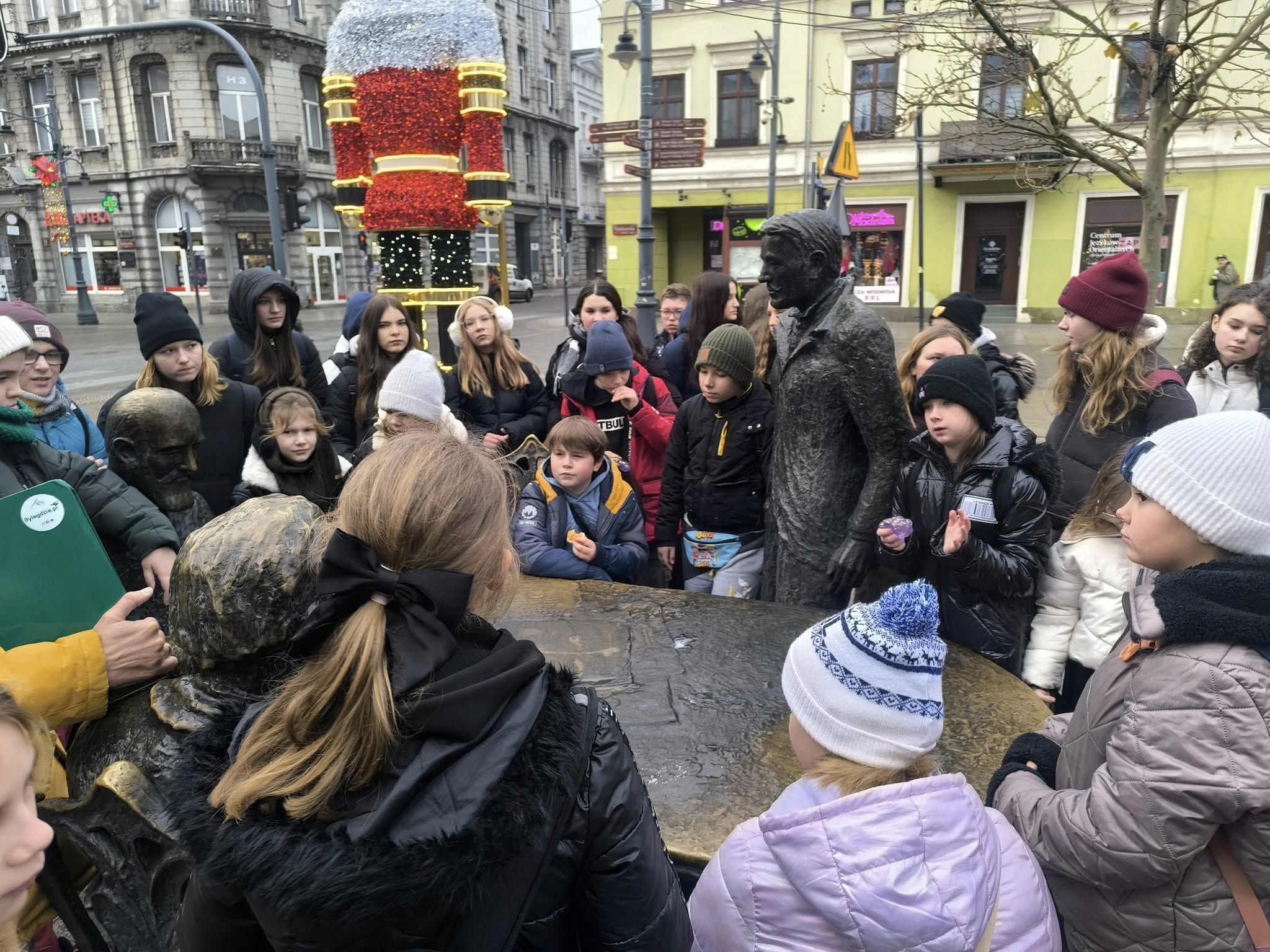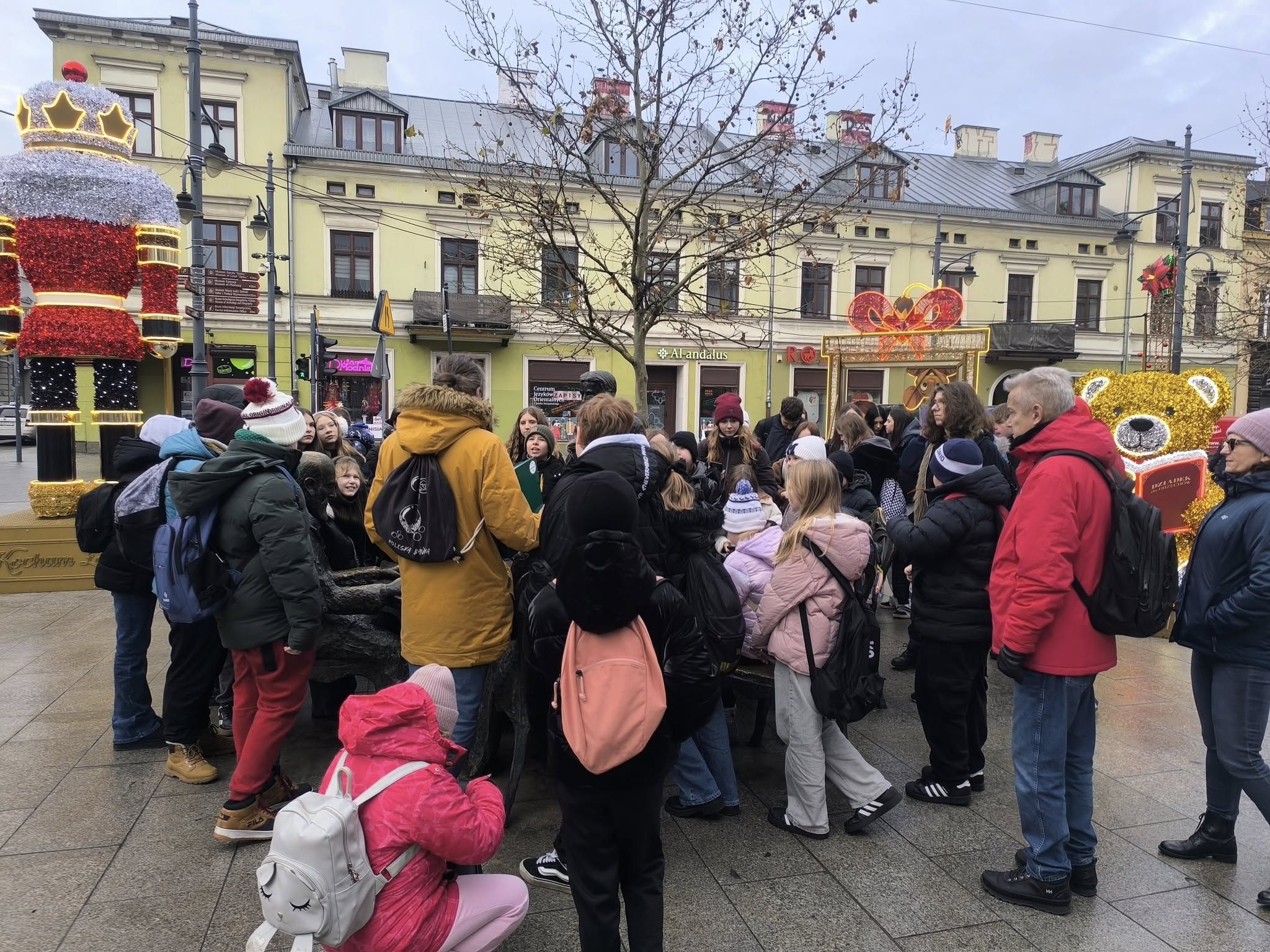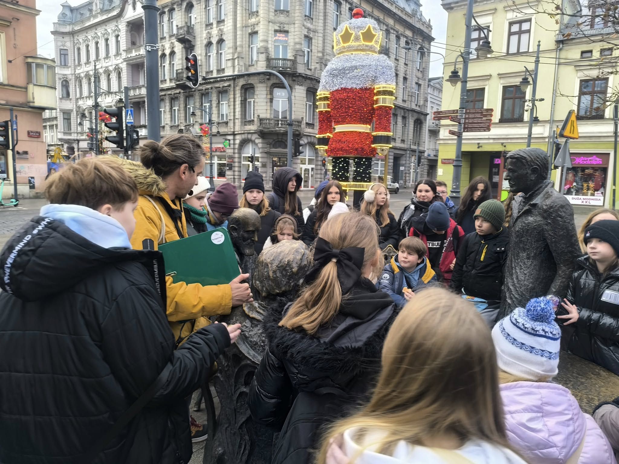 Kolejnym etapem wycieczki był spacer ulicami Łodzi z przewodnikiem. Rozpoczął się na słynnej ul. Piotrkowskiej, gdzie przewodnik opowiadał o historii miasta, przemysłowych korzeniach i niezwykłych historiach dawnych fabrykantów. Po drodze oglądaliśmy secesyjne kamienice, oraz zaglądaliśmy w podwórka, w których kryją się artystyczne instalacje i małe galerie. Spacer pozwolił zobaczyć Łódź jako miasto pełne kontrastów – łączące zabytki z nowoczesnością.