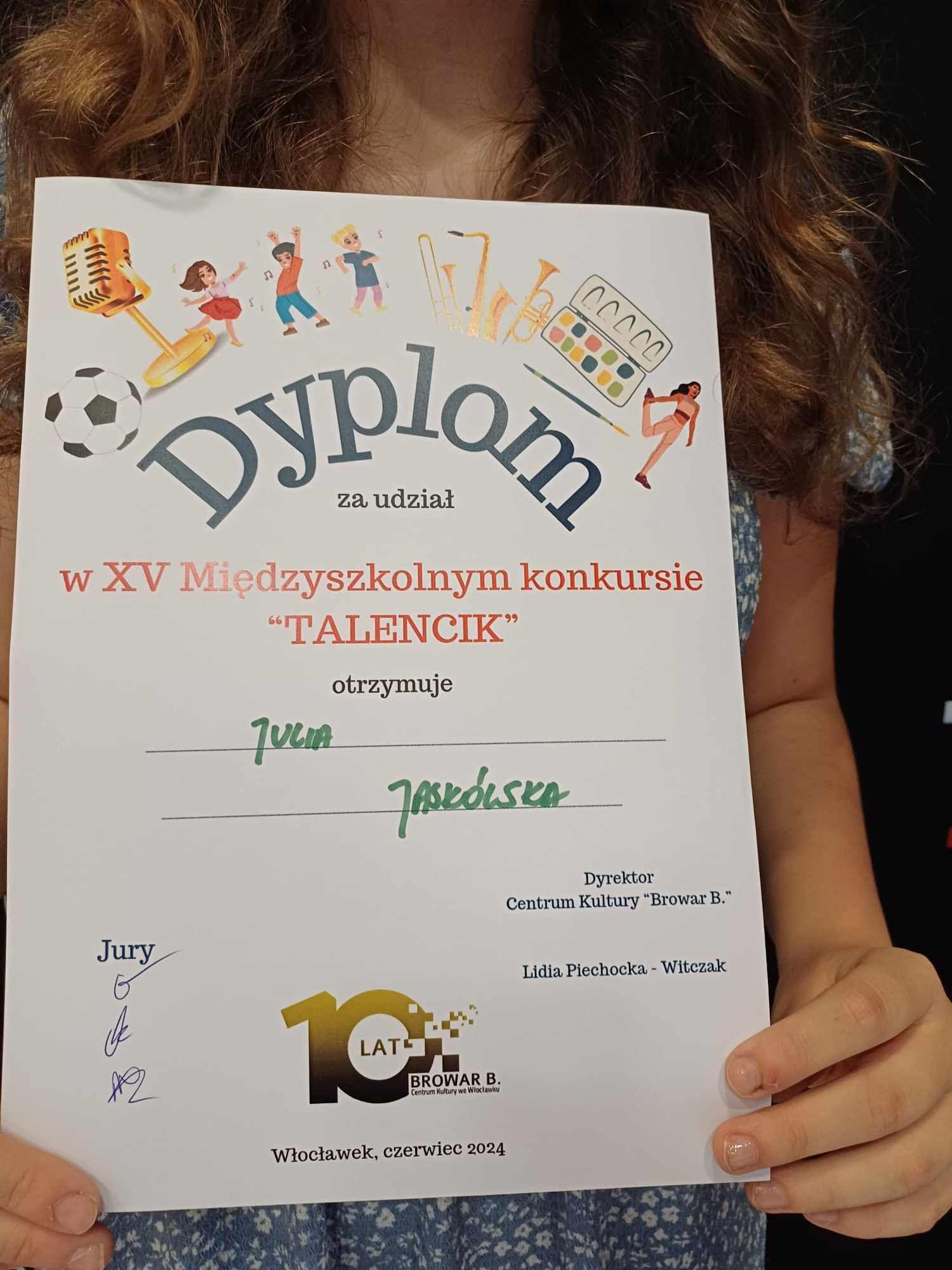 w XV Międzyszkolnym Konkursie ,,Talencik" organizowanym przez Centrum Kultury Browar B.