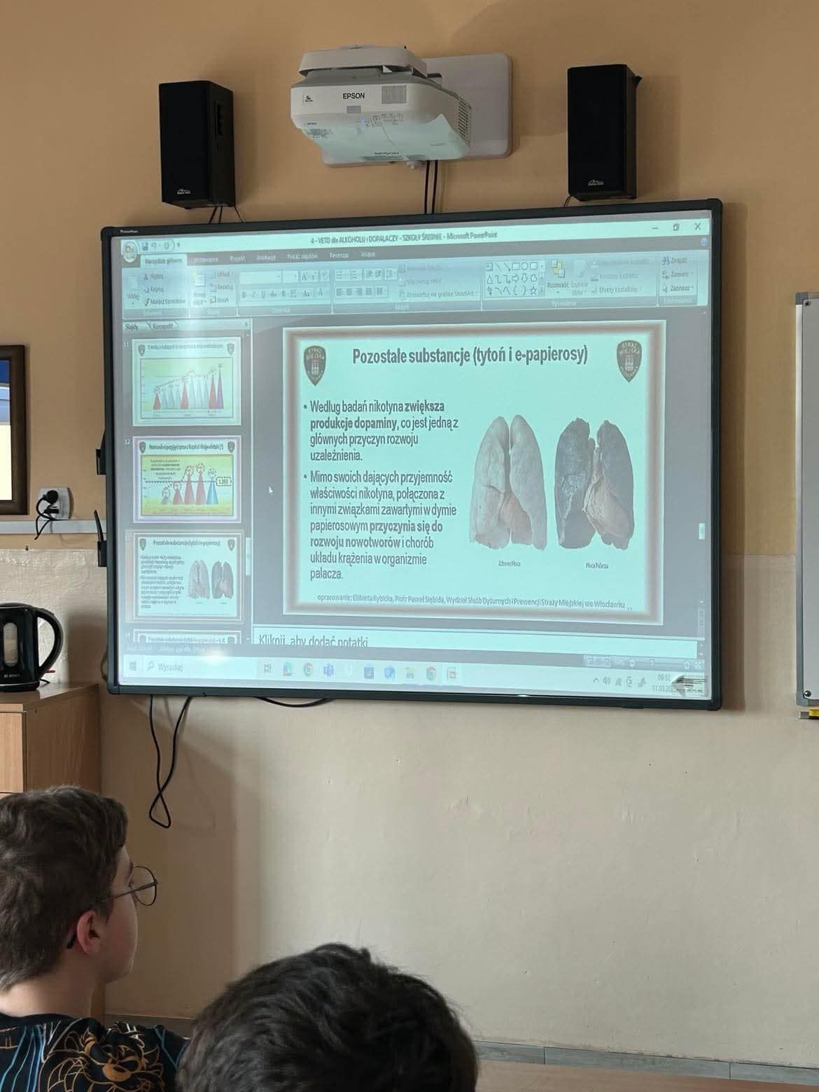 ZAJECIA PROFILAKTYCZNE nt e-papierosów i innych substancji chemicznych W klasach 8 a i 8 b p.Elzbieta Rybicka ze Straży Miejskiej przeprowadziła ciekawe lekcje dotyczące różnych niebezpiecznych substancji,m.in. e-papierosów,które stały się, niestety szkodliwą alternatywą dla tradycyjnych papierosów. Są tak samo toksyczne i chorobotwórcze.
