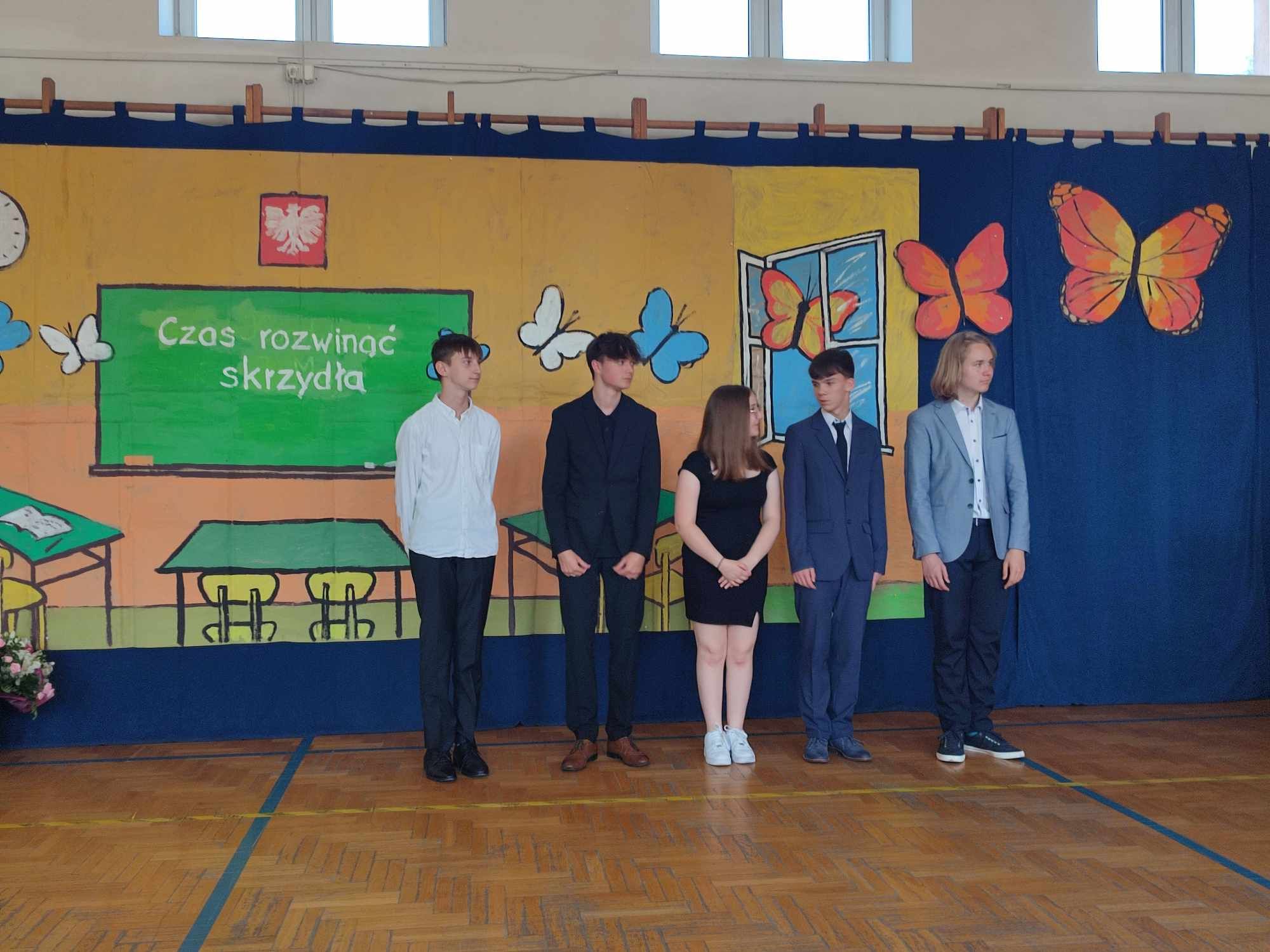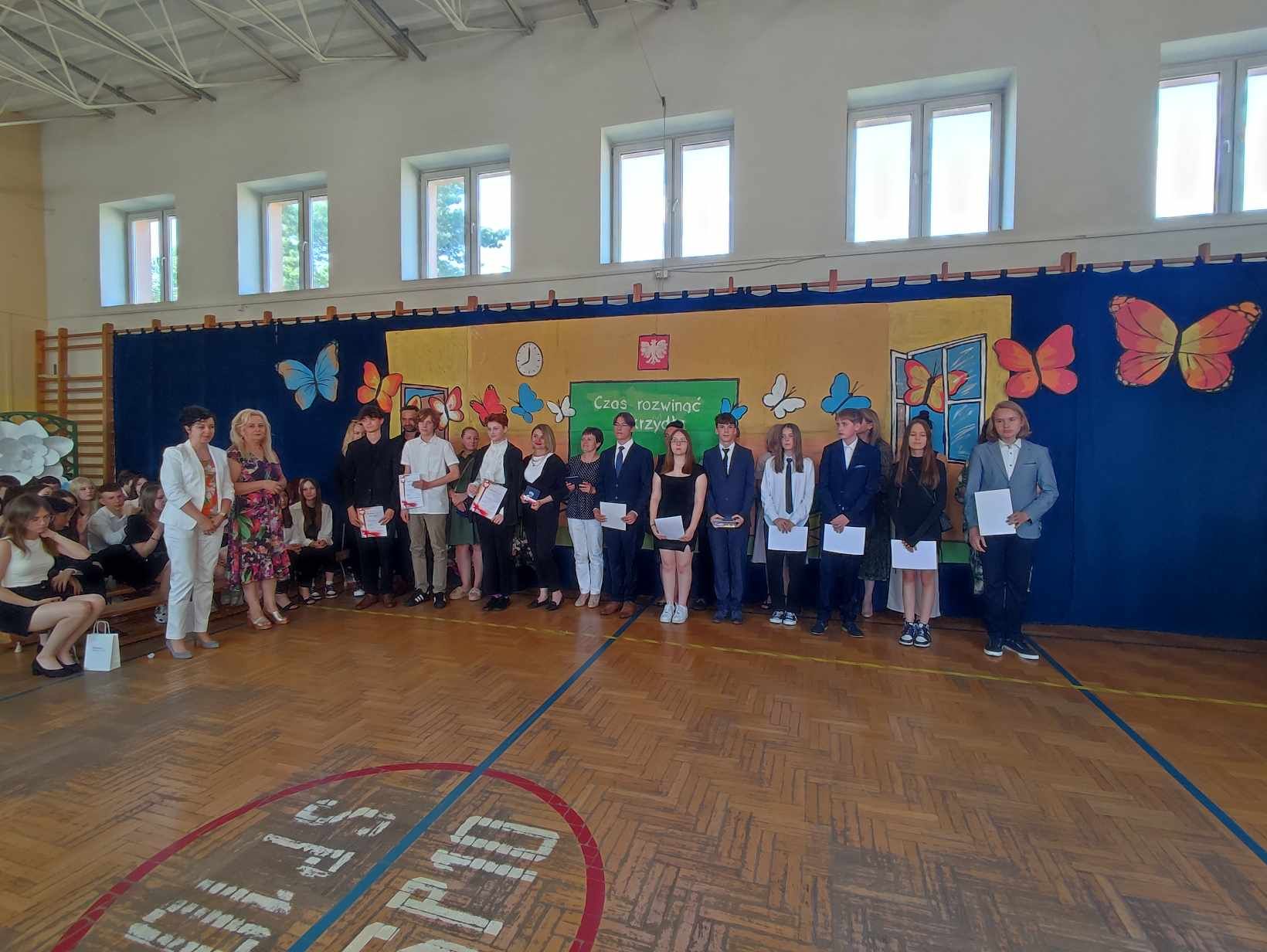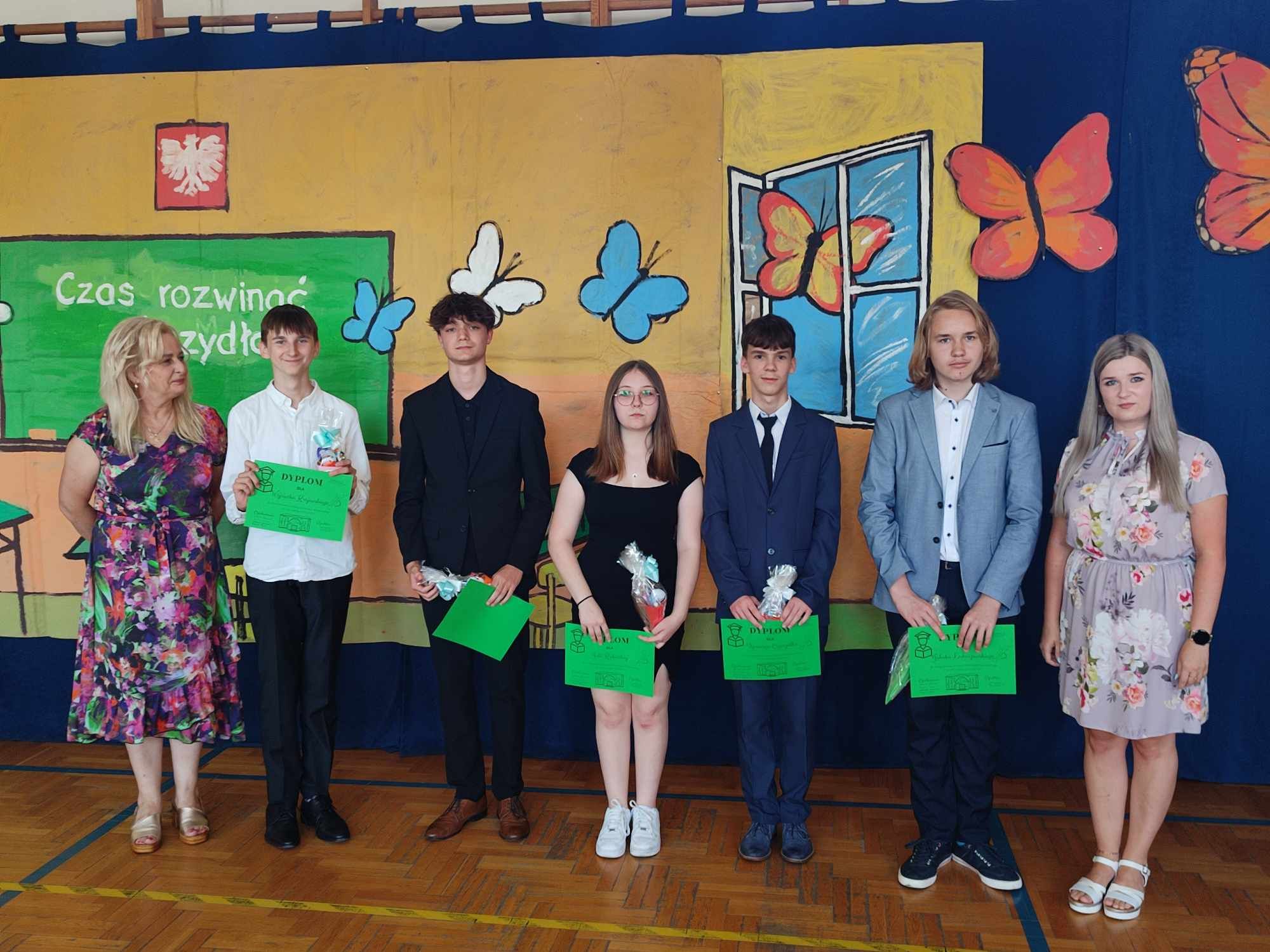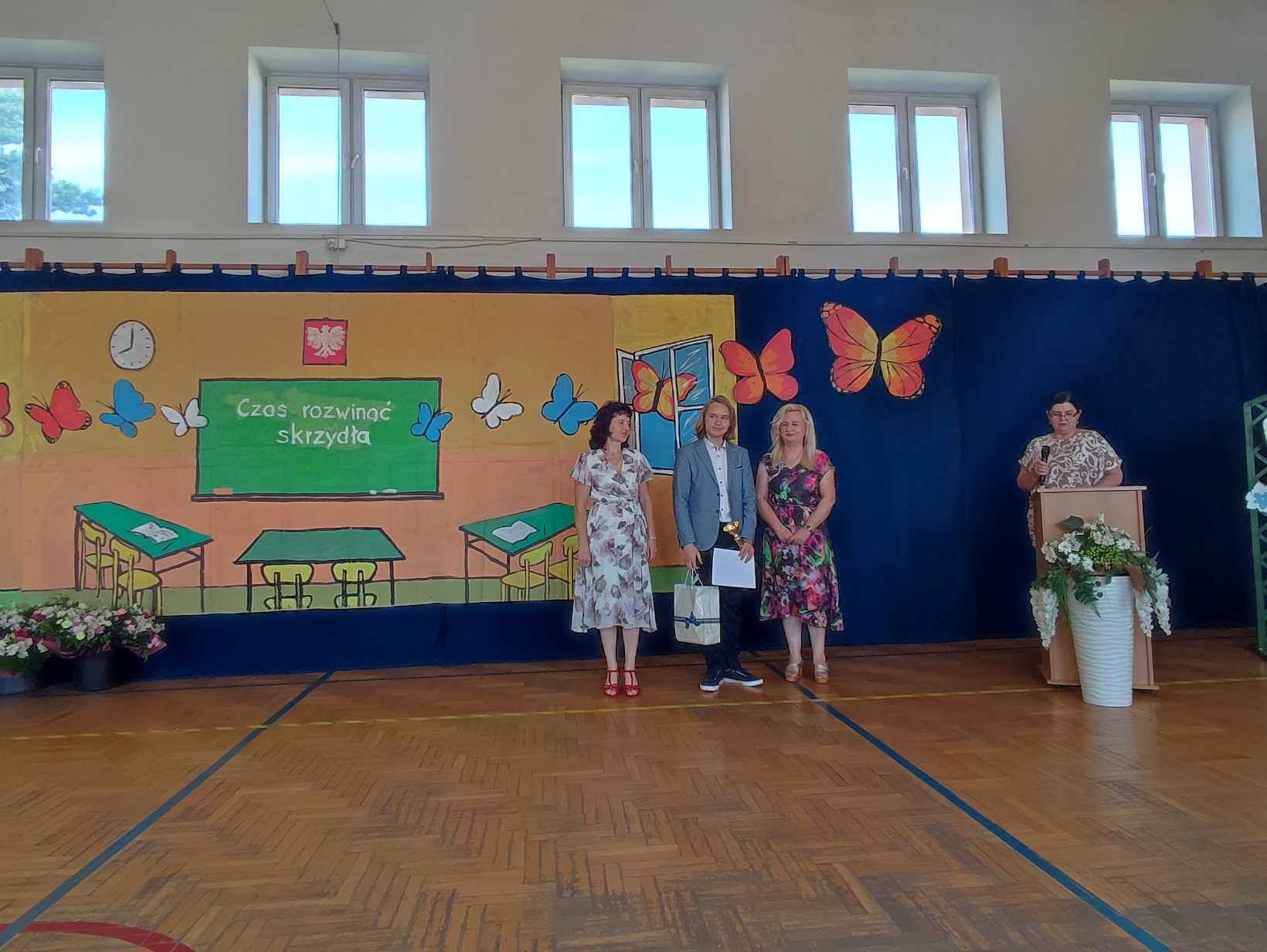 Dziś w naszej szkole odbyło się uroczyste zakończenie roku szkolnego klas VIII. Wydarzenie rozpoczęło się uroczystym ślubowaniem absolwentów, następnie uczniowie klas VIII zaprezentowali część artystyczną. Po krótkim występie nastąpiło wręczanie dyplomów oraz nagród. Najważniejszą nagrodą przyznawaną w naszej szkole są medale: